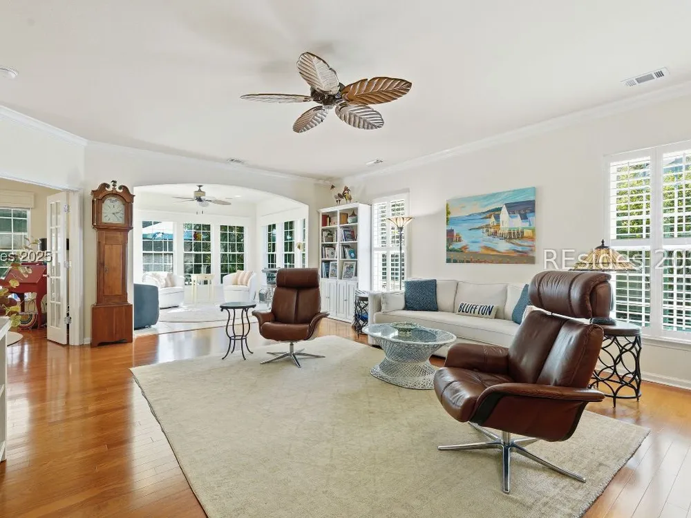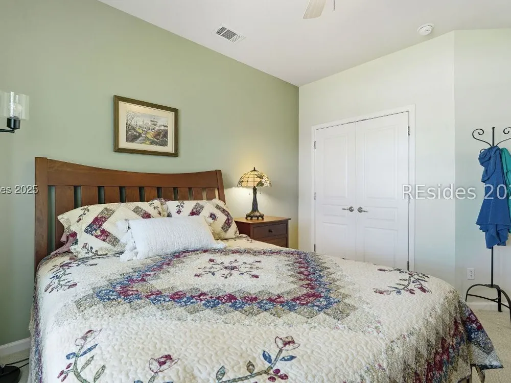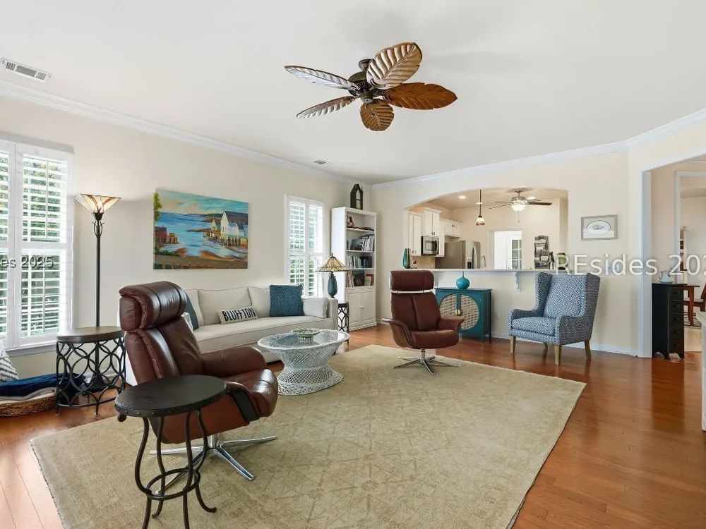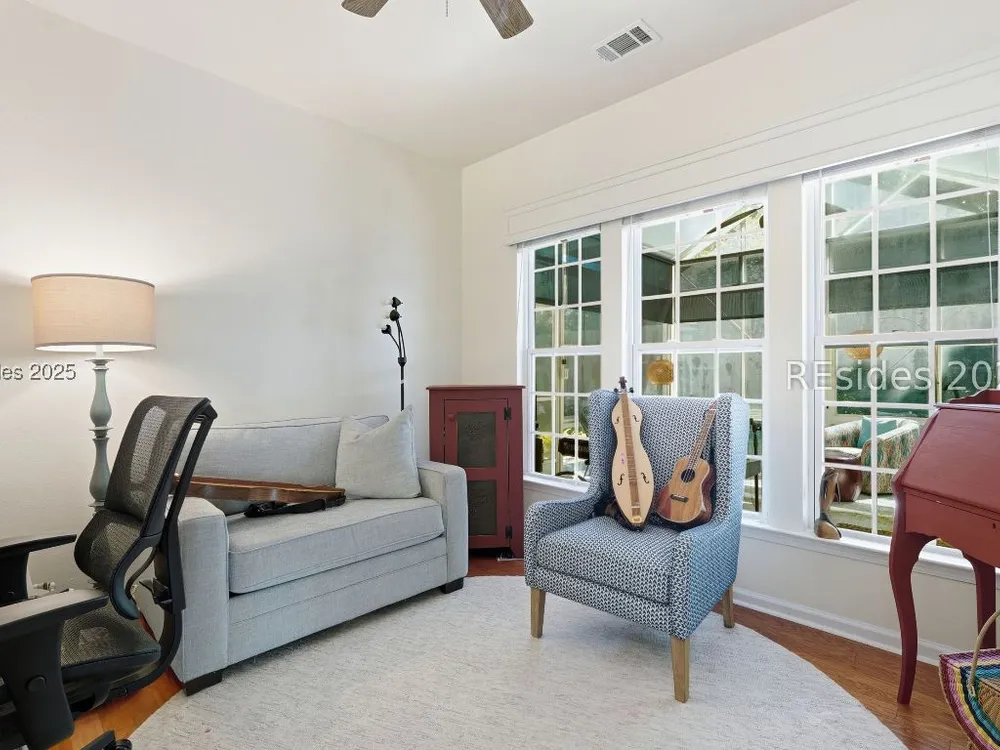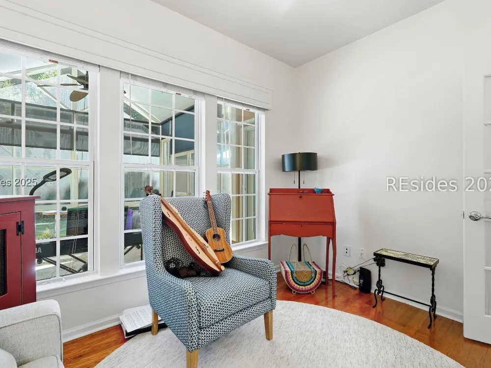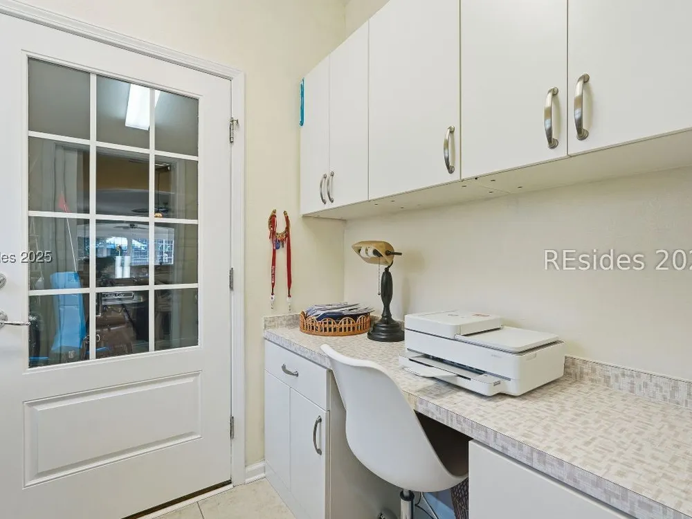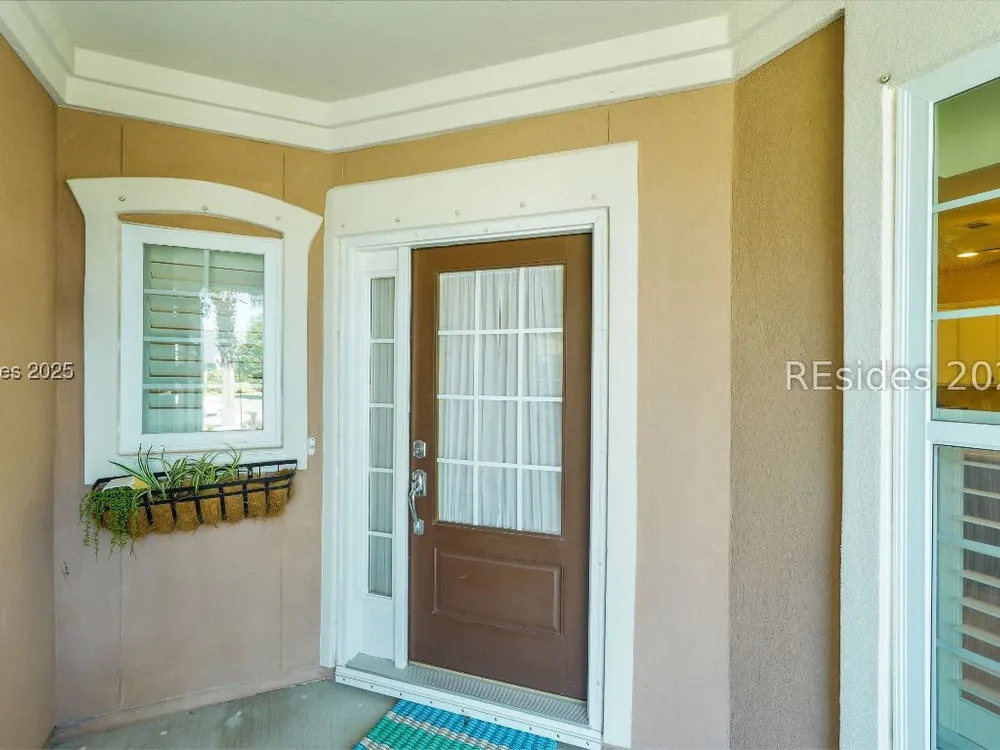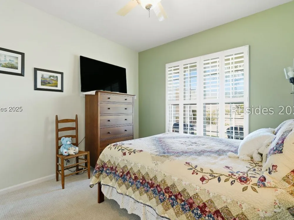 Live your best life in the premier Active Adult 55+ Lowcountry community at 36 Reedy Place in Sun City Hilton Head South! This beautifully maintained Surrey Crest model that sits on a quiet street near the Rear Bull Hill Gate, offering a private wooded view and convenient access to Hwy 170. The home features 2 bedrooms + den and 2 full baths, designed for comfortable Lowcountry living. The spacious kitchen boasts a large island, abundant cabinetry with pull-outs, and an eat-in breakfast nook area. A bright great room flows into the Carolina Room and out to a lovely covered and enclosed 3 Season Lanai with an extended paver patio perfect for relaxing or entertaining.The primary suite offers a generous walk-in closet with custom shelving and a renovated bath with dual sinks, a large tiled zero entry shower, and water closet. Additional highlights include plantation shutters, custom wood valances, laundry area with office station, and an extended garage with built-in storage. Recent updates include a new roof (2020) and new & newer stainless-steel appliances-refigerator, stove, microwave, washer, and dryer. A wonderful combination of comfort, quality, and privacy in one of Sun City's most desirable locations.
