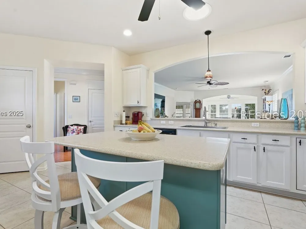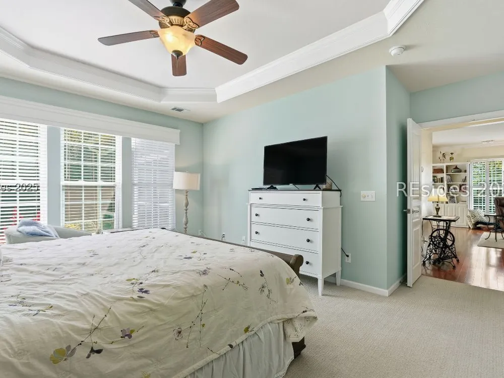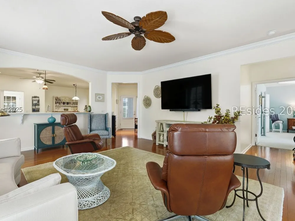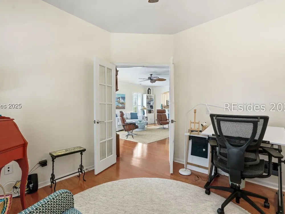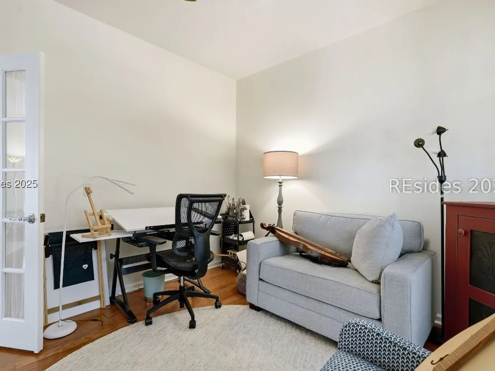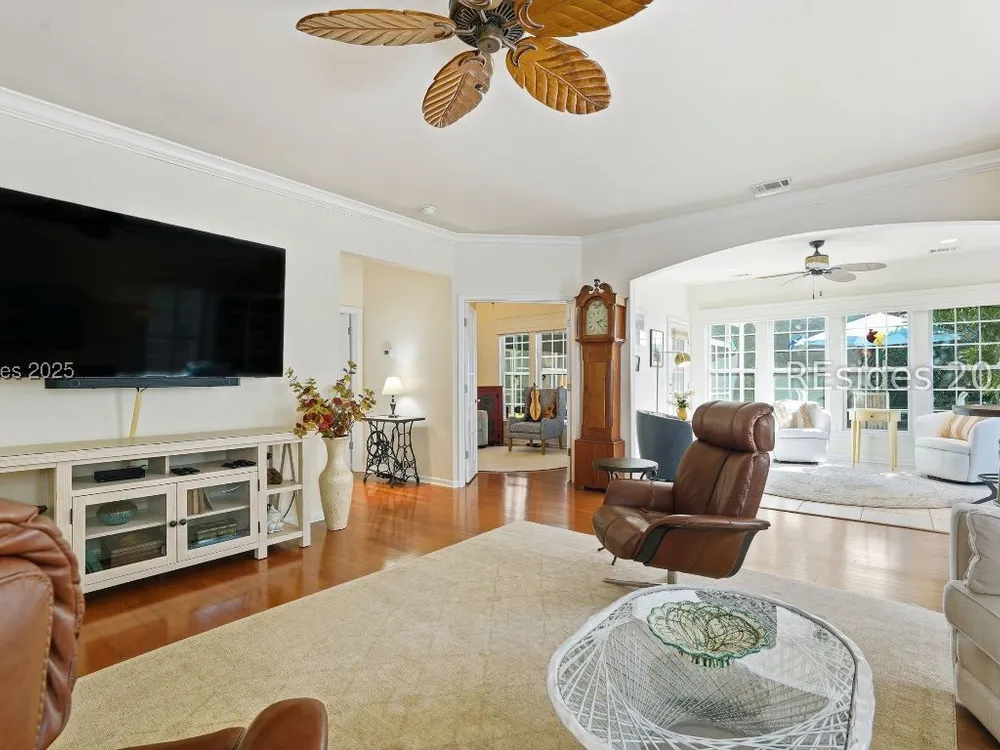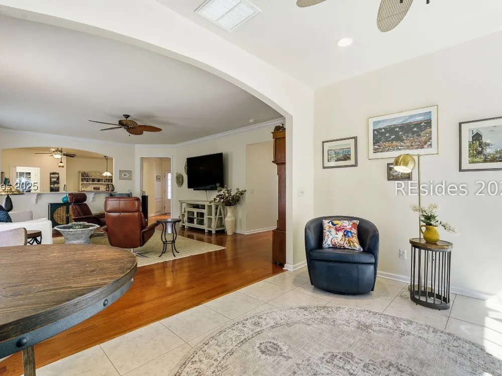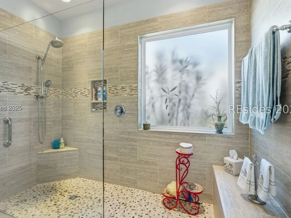 Live your best life in the premier Active Adult 55+ Lowcountry community at 36 Reedy Place in Sun City Hilton Head South! This beautifully maintained Surrey Crest model that sits on a quiet street near the Rear Bull Hill Gate, offering a private wooded view and convenient access to Hwy 170. The home features 2 bedrooms + den and 2 full baths, designed for comfortable Lowcountry living. The spacious kitchen boasts a large island, abundant cabinetry with pull-outs, and an eat-in breakfast nook area. A bright great room flows into the Carolina Room and out to a lovely covered and enclosed 3 Season Lanai with an extended paver patio perfect for relaxing or entertaining.The primary suite offers a generous walk-in closet with custom shelving and a renovated bath with dual sinks, a large tiled zero entry shower, and water closet. Additional highlights include plantation shutters, custom wood valances, laundry area with office station, and an extended garage with built-in storage. Recent updates include a new roof (2020) and new & newer stainless-steel appliances-refigerator, stove, microwave, washer, and dryer. A wonderful combination of comfort, quality, and privacy in one of Sun City's most desirable locations.