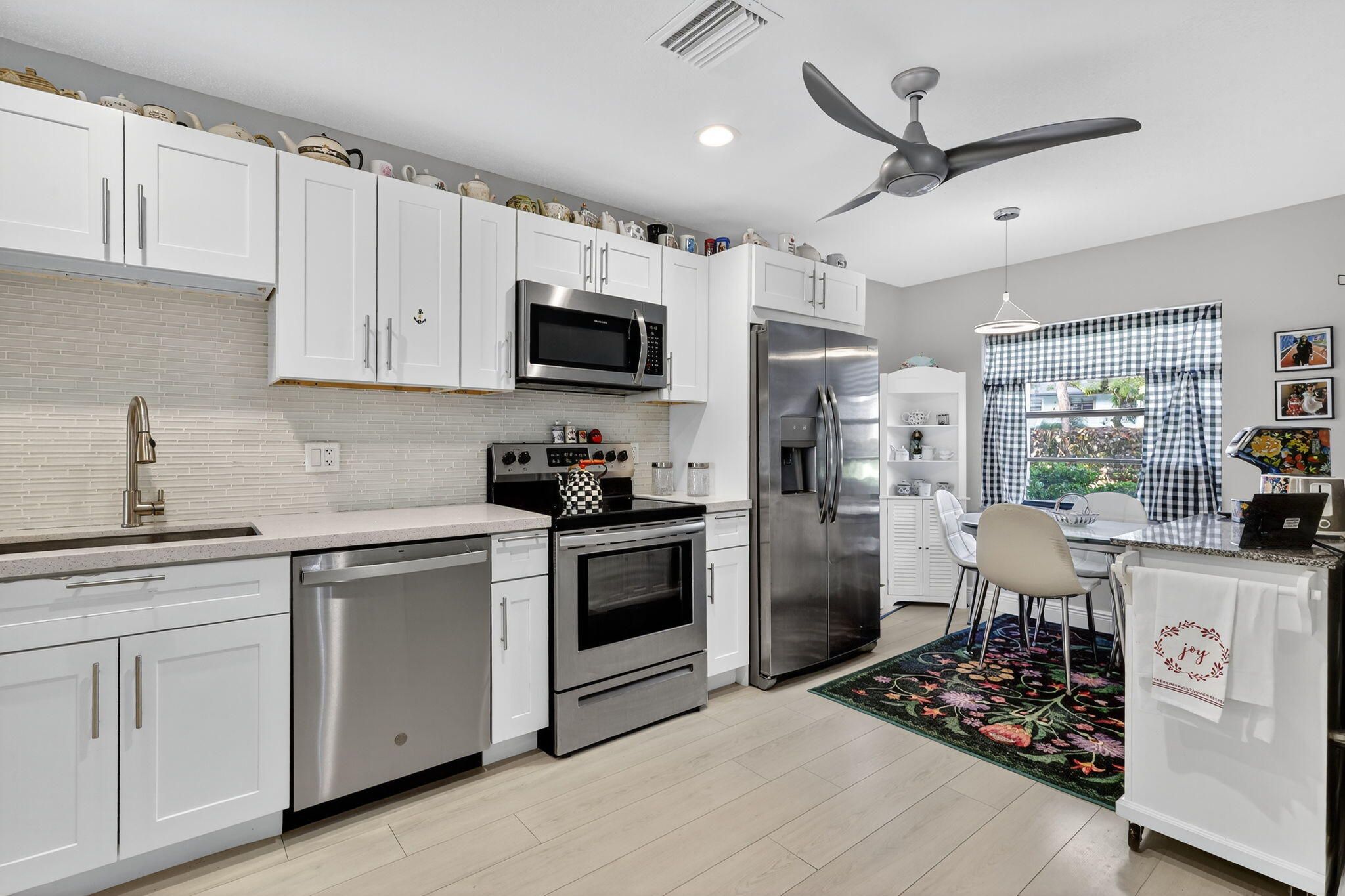 This beautifully redone two-bedroom, two-bath condo offers a perfect winter escape. The open-concept interior is completely updated with a modern kitchen and two luxurious baths. Step out onto the expansive patio to enjoy the stunning, panoramic views of the water and golf course. It's the ideal, peaceful setting to comfortably spend the winter months or all year round. Hunters Run is a mandatory buy-in and yearly membership, amenities-filled community, offering 3 championship 18-hole golf courses, tennis & pickle ball courts, 6 dining venues, pools, a fitness center, spa & salon, golf shop, entertainment & activities. Just minutes to vibrant downtown Delray and the BEACH! Come to Hunters run the only thing missing is you!