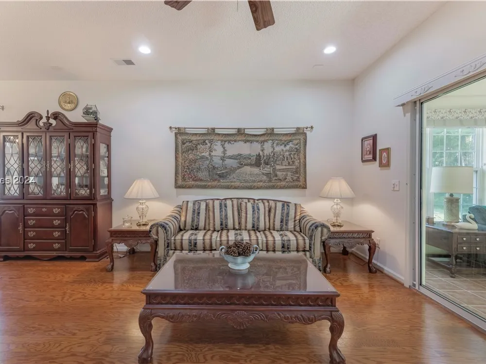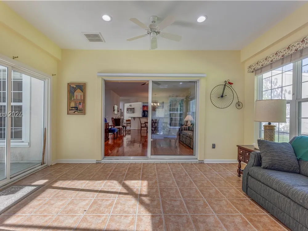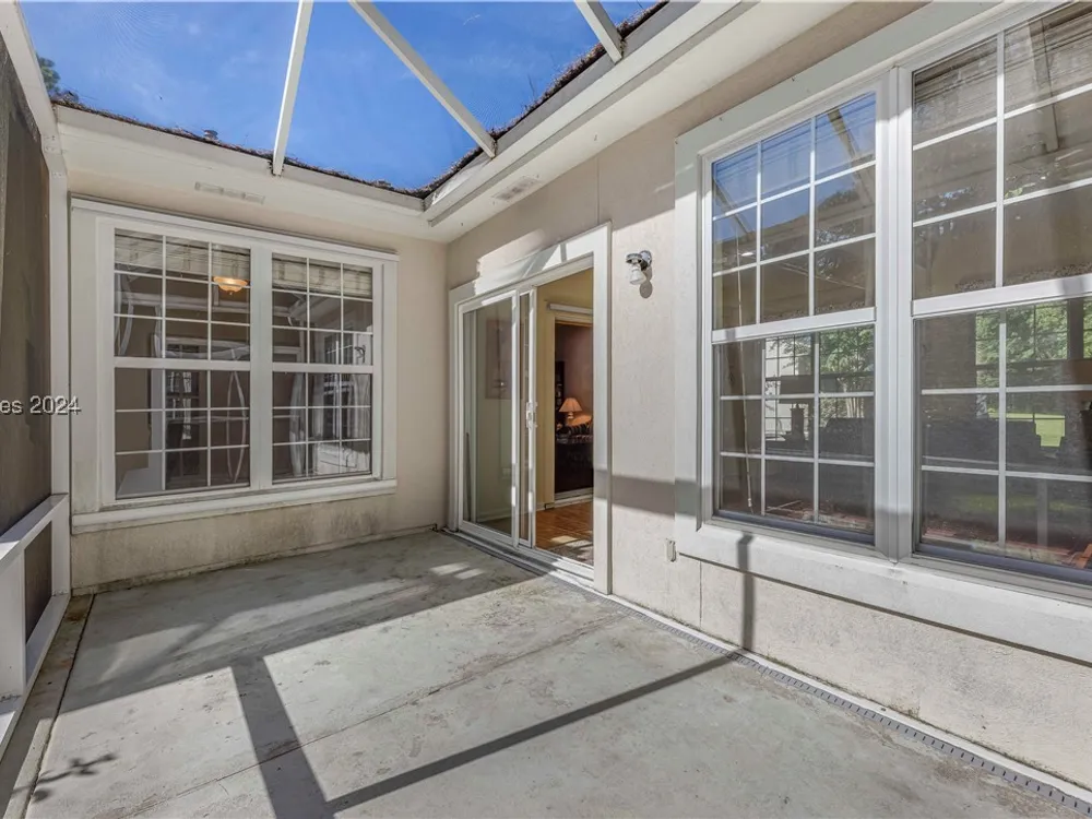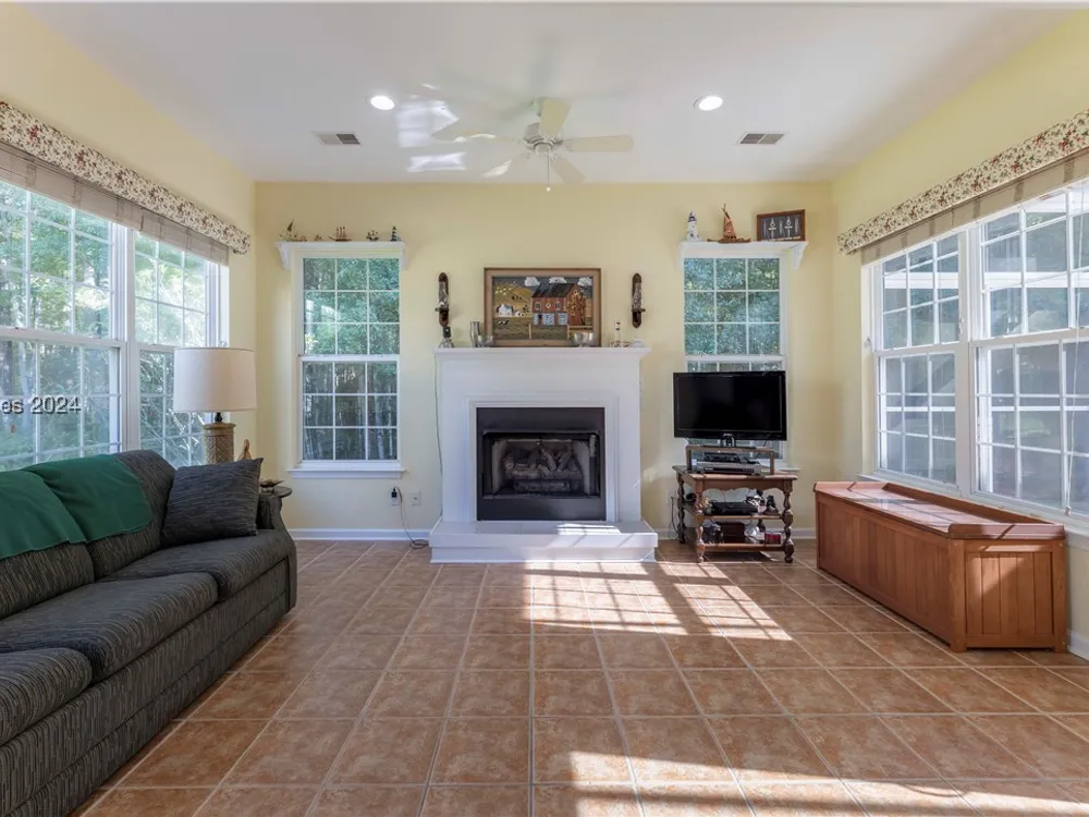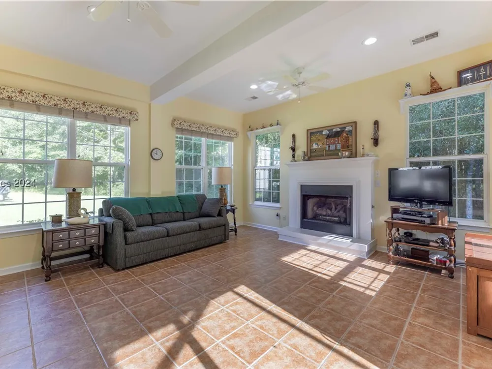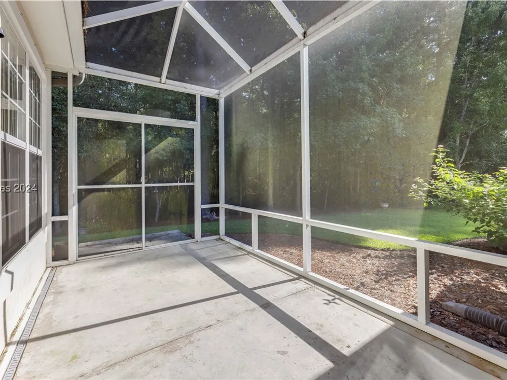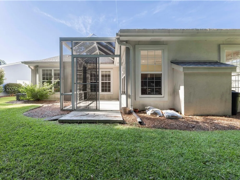 Golf cart included! Welcome to amenity-rich Sun City! This checks all the boxes: Beaufort County, on an eyebrow of a low traffic street, wooded view out the back, all season Carolina room, and a screened porch. This charming residence boasts 2 BR, 2 BA, and a Carolina room with a cozy fireplace. Nestled on an eyebrow lot backing up to serene woods, you'll enjoy privacy and tranquility. Step onto the screened porch and savor peaceful moments in nature. Don't miss this opportunity for serene living in a vibrant community! Clean stucco report available.