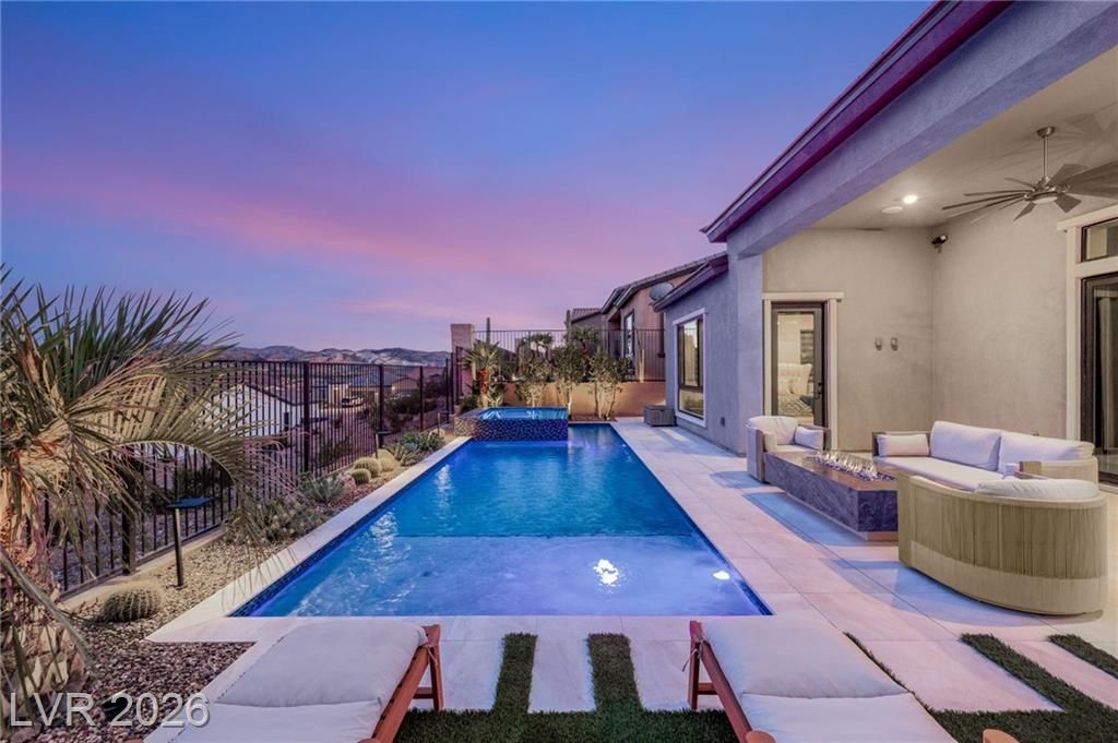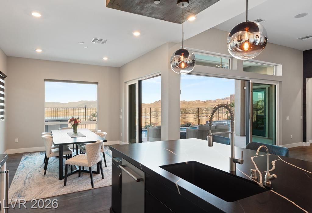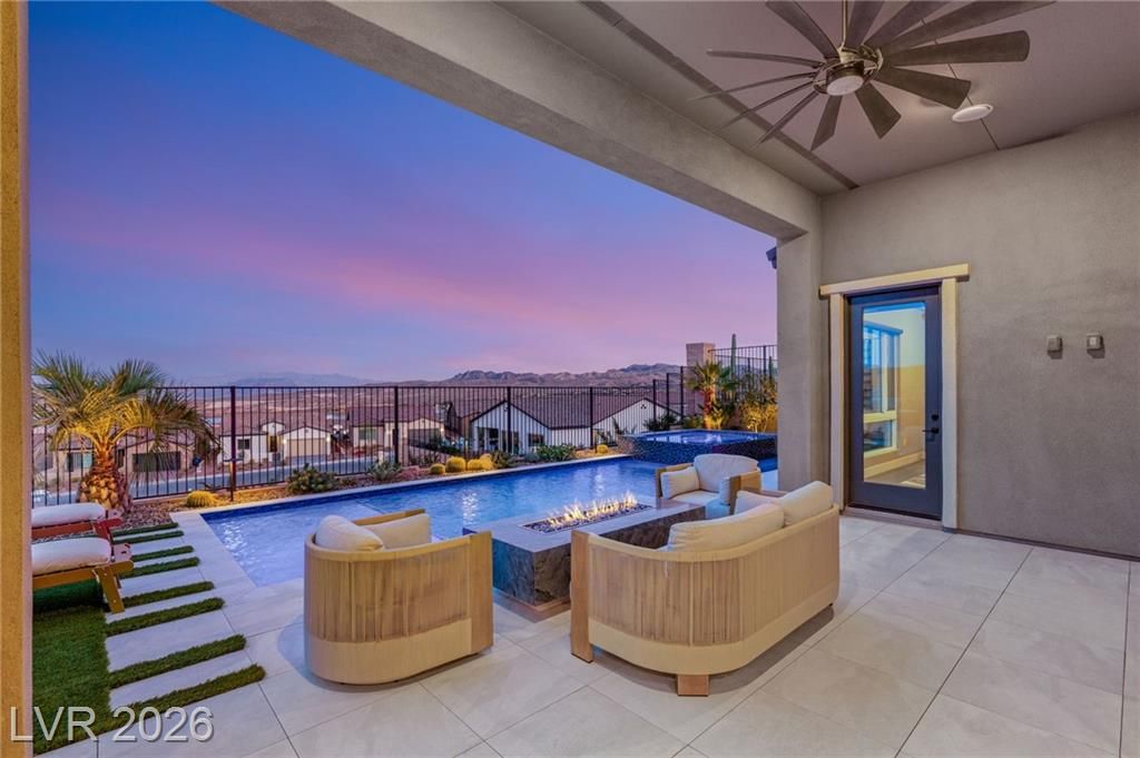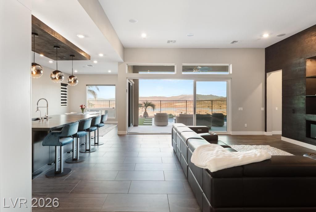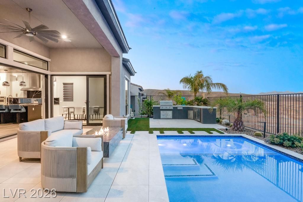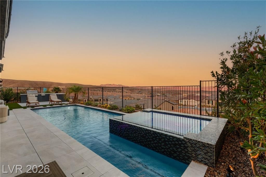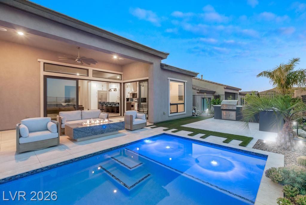 Located in Lake Las Vegas, this stunning home offers panoramic lake and mountain views that create a truly serene living experience. Designed with both beauty and function in mind, the residence showcases refined finishes and a layout ideal for relaxed luxury living. The private front courtyard welcomes you into a thoughtfully designed interior featuring three spacious bedroom suites, each with its own bath, along with a versatile den or office perfect for work or hobbies. At the heart of the home, the kitchen is crafted for those who love to cook and entertain, featuring high-end appliances, custom cabinetry, and elegant stone counters. Step outside to a resort-inspired backyard where a sparkling pool and spa overlook the lake. With a built-in outdoor kitchen making it easy to host or enjoy quiet evenings surrounded by spectacular scenery. This is a rare opportunity to enjoy privacy, comfort, and breathtaking views in one of Lake Las Vegas’ most sought-after communities.