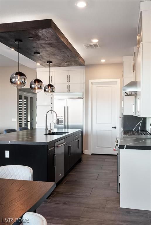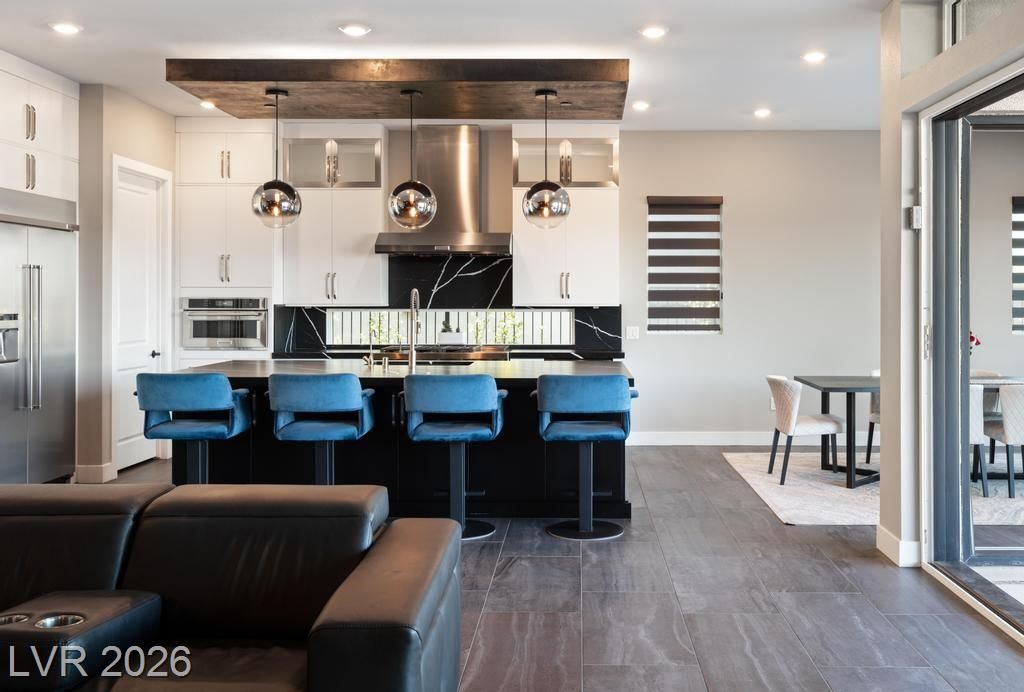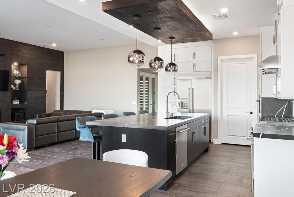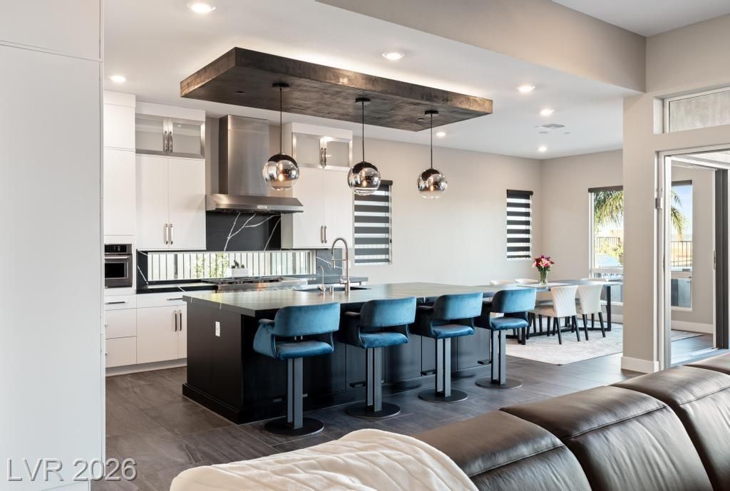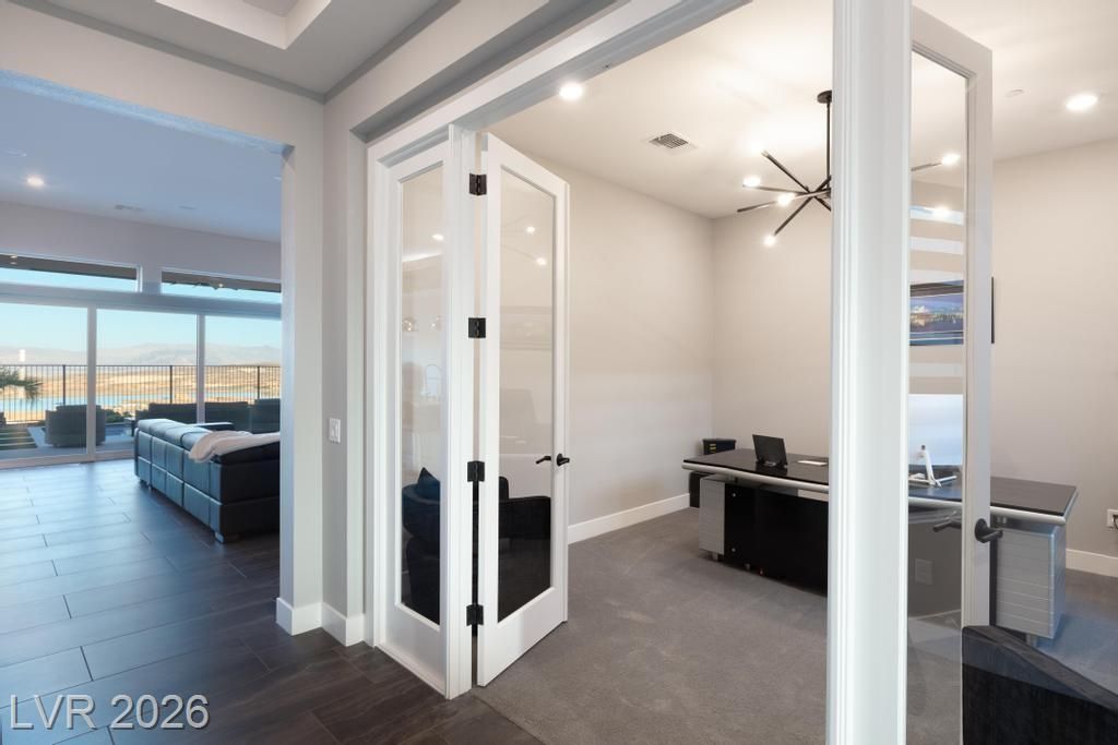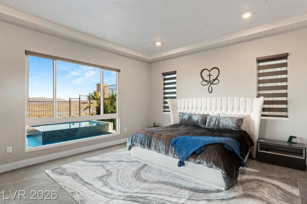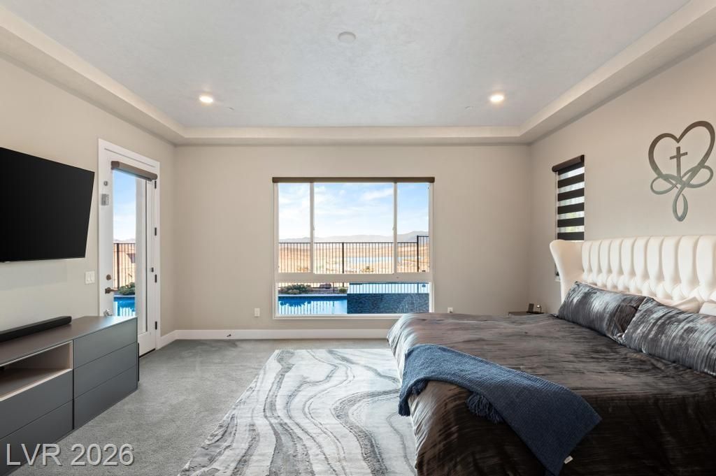 Located in Lake Las Vegas, this stunning home offers panoramic lake and mountain views that create a truly serene living experience. Designed with both beauty and function in mind, the residence showcases refined finishes and a layout ideal for relaxed luxury living. The private front courtyard welcomes you into a thoughtfully designed interior featuring three spacious bedroom suites, each with its own bath, along with a versatile den or office perfect for work or hobbies. At the heart of the home, the kitchen is crafted for those who love to cook and entertain, featuring high-end appliances, custom cabinetry, and elegant stone counters. Step outside to a resort-inspired backyard where a sparkling pool and spa overlook the lake. With a built-in outdoor kitchen making it easy to host or enjoy quiet evenings surrounded by spectacular scenery. This is a rare opportunity to enjoy privacy, comfort, and breathtaking views in one of Lake Las Vegas’ most sought-after communities.