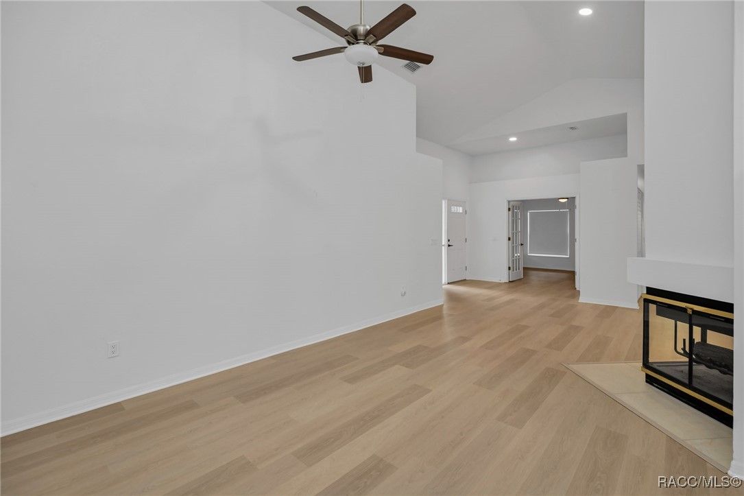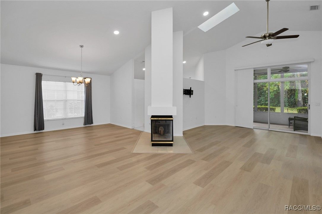 Where to begin? All this is new from the large items like roof, water heater and kitchen in 2024, including new cabinets with pull-outs, Quartz counters, new appliances, sink and faucets even down to the disposal. Cabinets and drawers have full extension soft close features. New LVP flooring in main rooms with tile in kitchen and baths. Master and guest baths both feature, new solid surface vanities, square sinks, new shower, exhaust fans and toilets. Windows and lanai rescreened November 2025 and all new window treatments also. Dust to dawn lighting, new side garage door, wood burning fireplace and separate dining room from the Great room. All ceiling fans and light fixtures replaced. Washer and dryer convey with new sink and cabinetry in laundry room. Convenient bump-out in garage and pull down stairs for added storage. This is a 55 Plus community with a monthly $329 HOA that includes: full lawn maintenance, water for the yard, irrigation, cable, trash pickup, Wi-Fi, pest control for the yard, use of the heated community pool plus a small cabana for get togethers. Just move in and enjoy! The work has been done for you!