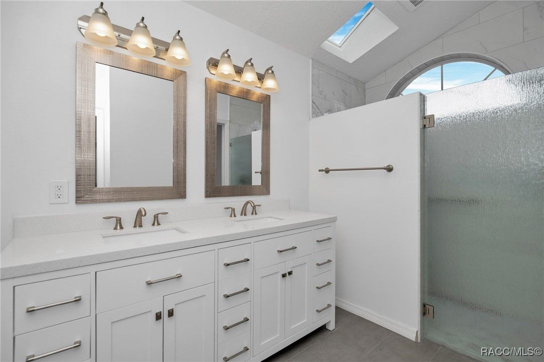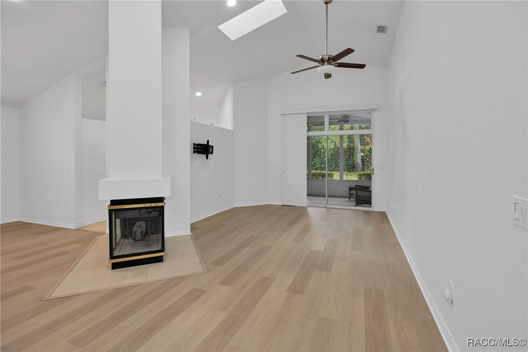 - Attic Access, Dual Sinks, Eat-in Kitchen, Fireplace, High Ceilings, Main Level Primary, Primary Suite, Open Floorplan, Pull Down Attic Stairs, Split Bedrooms, Separate Shower, Solid Surface Counters, Skylights, Updated Kitchen, Vaulted Ceiling(s), Walk-In Closet(s), Window Treatments, First Floor Entry, Sliding Glass Door(s)
