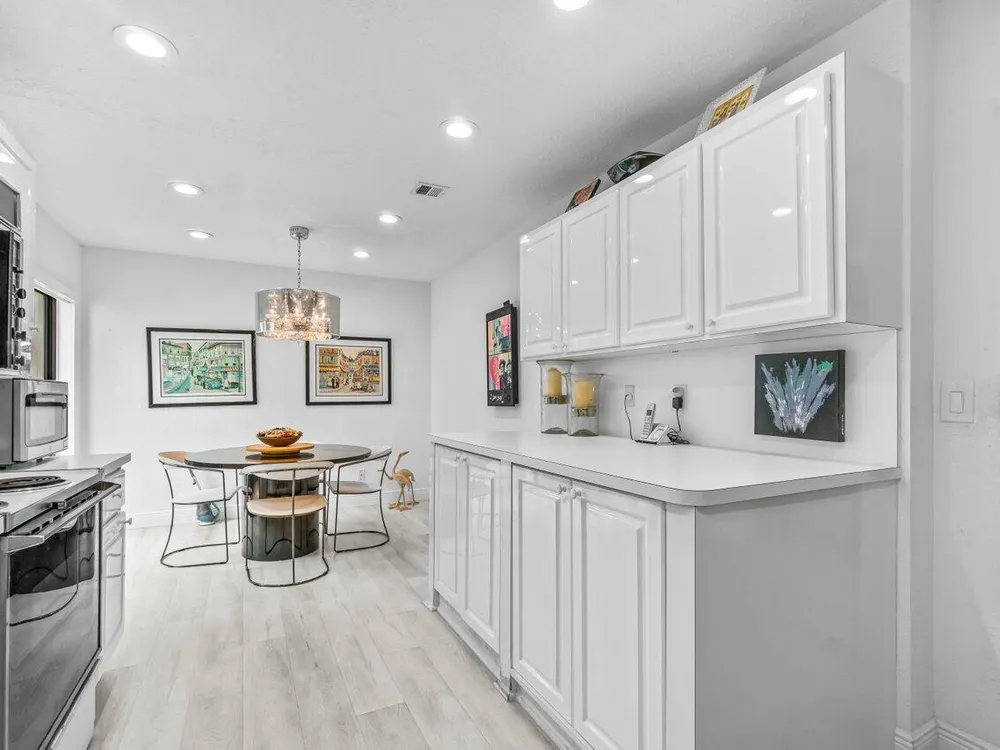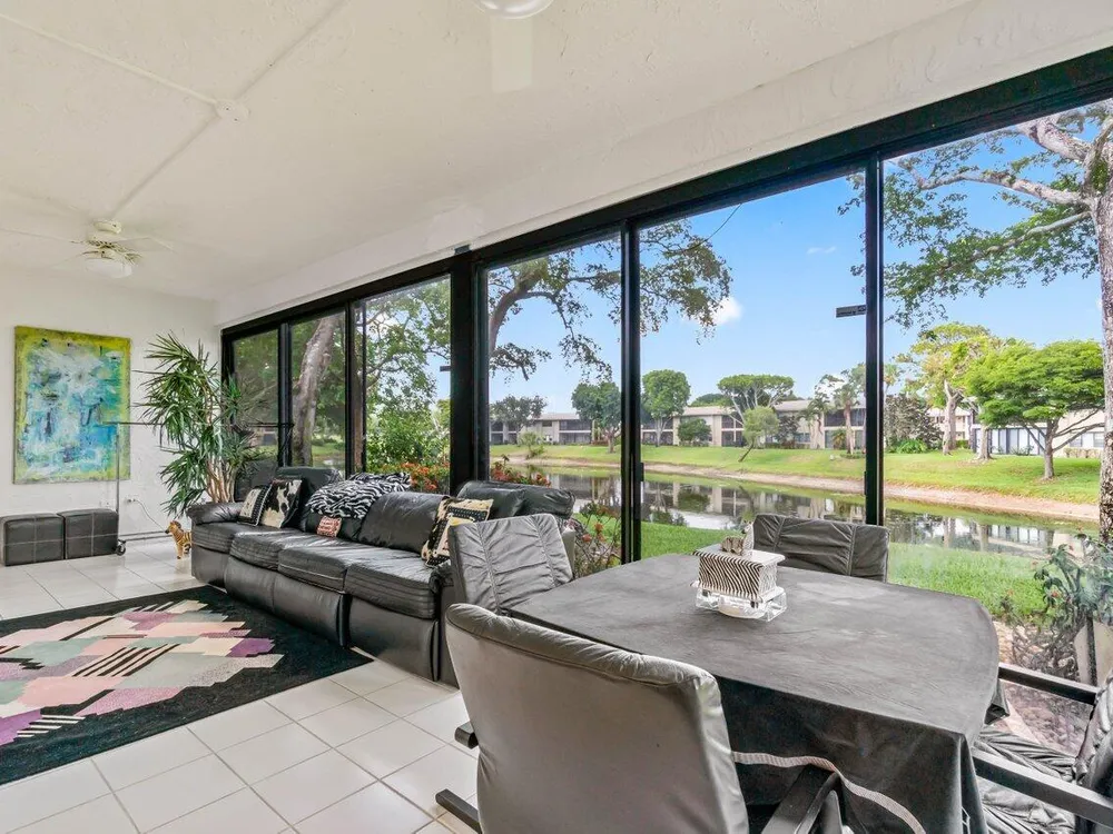 Situated within the serene park-like settings of Westgate at Hunters Run Country Club, this spacious downstairs corner condo features 1778sf of living space, with water views, 2 bedrooms, 2 updated baths, and a convertible living space that can be easily configured as a den or 3rd bedroom. Other highlights include luxury plank flooring, recessed LED lighting, glass enclosed Florida room, front loading LG washer and dryer, zebra-style window shades, outfitted walk-in closet, and an open-air patio perfect for outdoor dining and golf cart parking. Residents of Hunters Run enjoy three 18-hole championship golf courses, 18 har-tru tennis courts, 12 pickleball courts, resort-style clubhouse, pool, salon & spa, fitness center, six dining venues and so much more. *Annual membership*