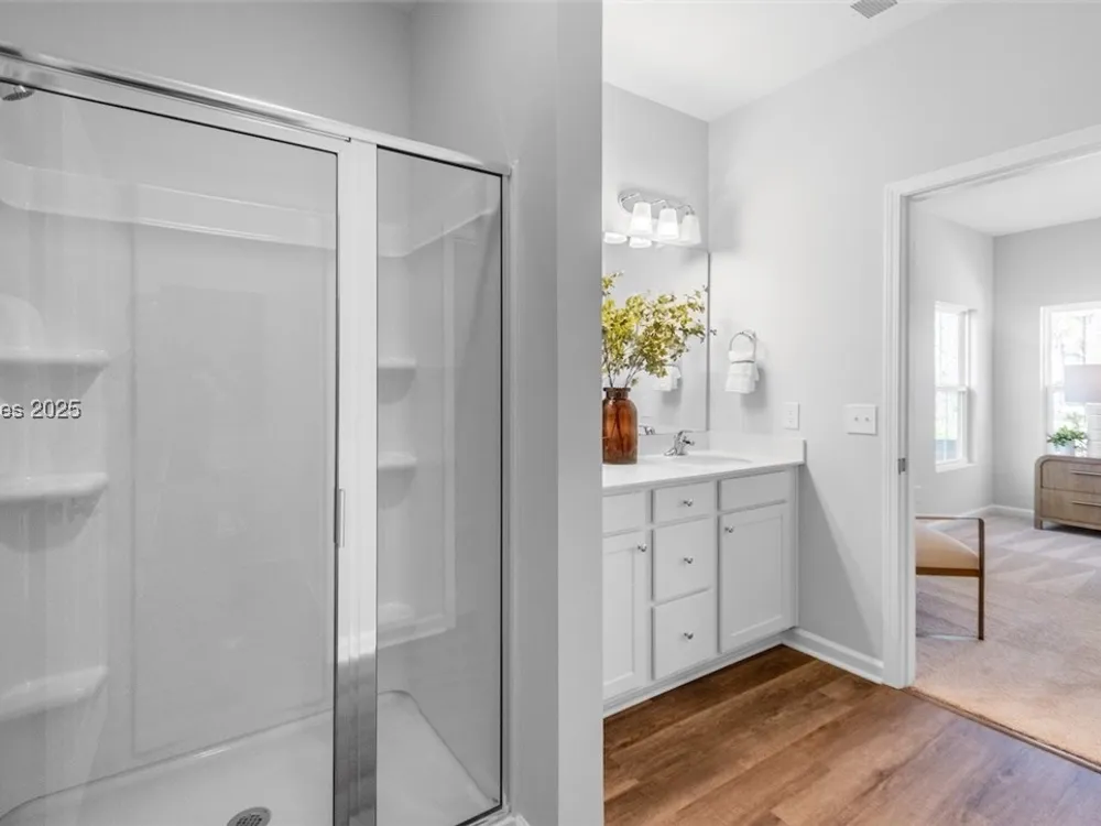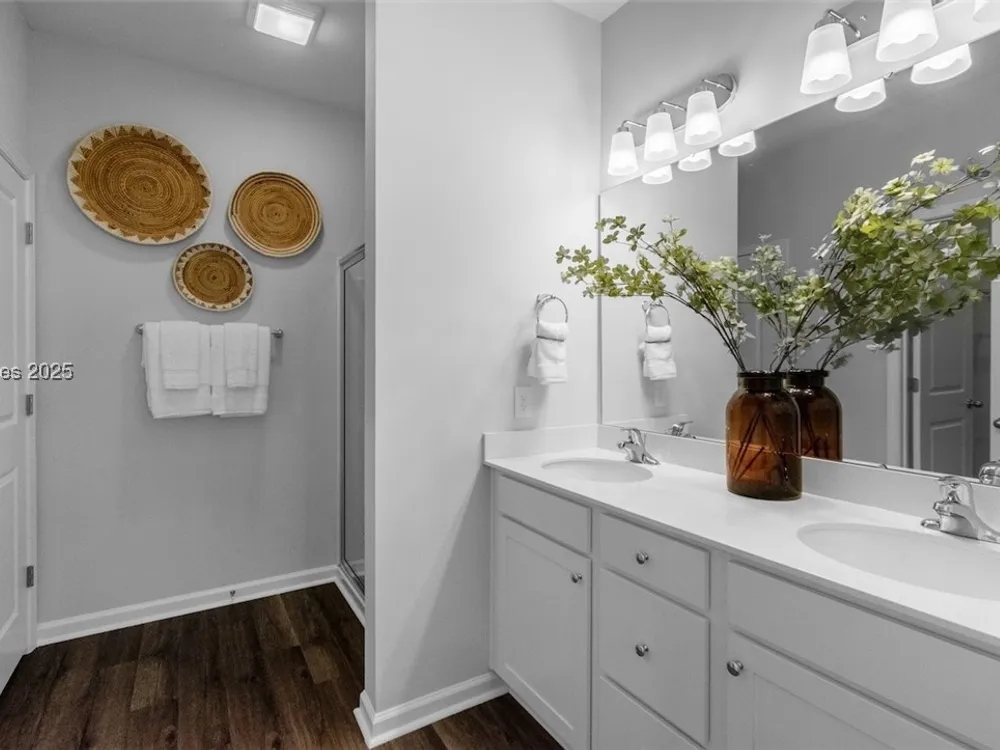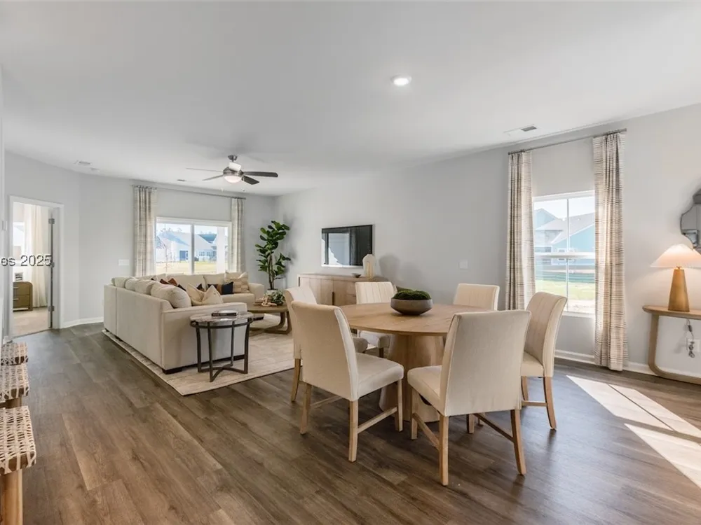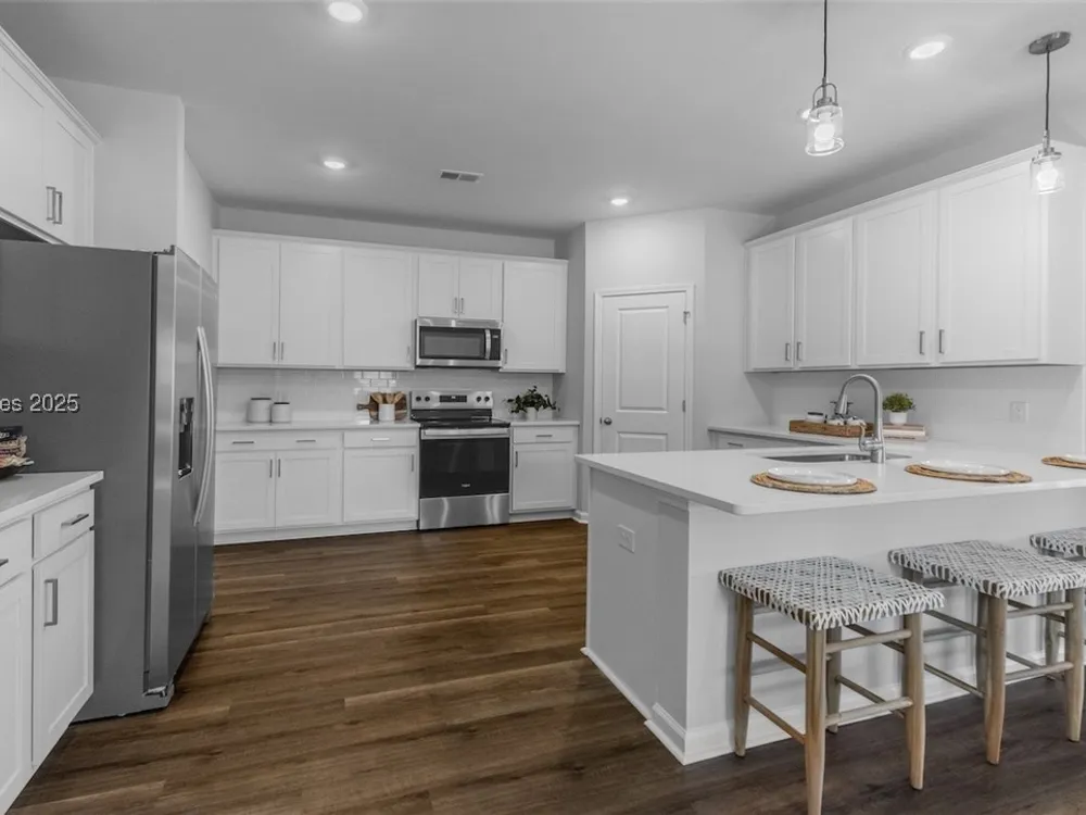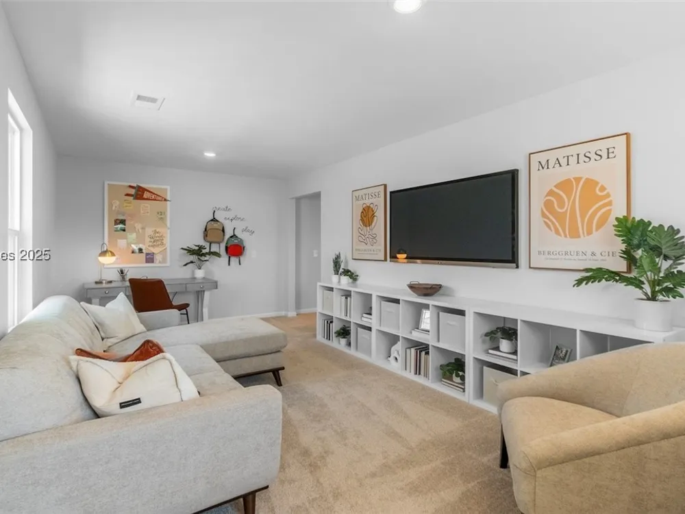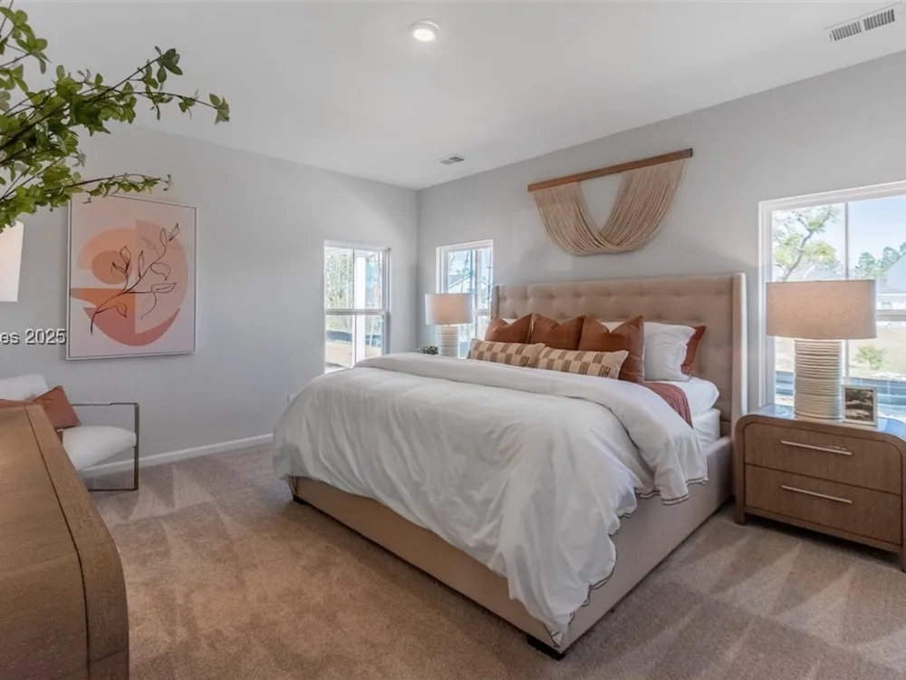 Welcome to the Bloomfield — a brand-new plan in Magnolia Park at Hilton Head Lakes! This 4-bedroom, 2.5-bath home offers an open-concept layout designed for effortless living and entertaining, with a seamless flow from the kitchen and dining area to the great room and covered patio. The kitchen features upgraded 42” cabinets, quartz countertops, tile backsplash, and stainless steel appliances. The first-floor primary suite includes double vanities, a walk-in shower, private water closet, and a spacious walk-in closet. Upstairs, enjoy three additional bedrooms plus a flexible loft space. Located in the amenity-rich Hilton Head Lakes community, you'll love the resort-style living with golf, fitness center, pool, trails, pickleball, and more — all with surprisingly low HOA fees! Experience the perfect blend of lifestyle, value, and activities right outside your door. Photos are not of actual home but of Bloomfield floorplan
