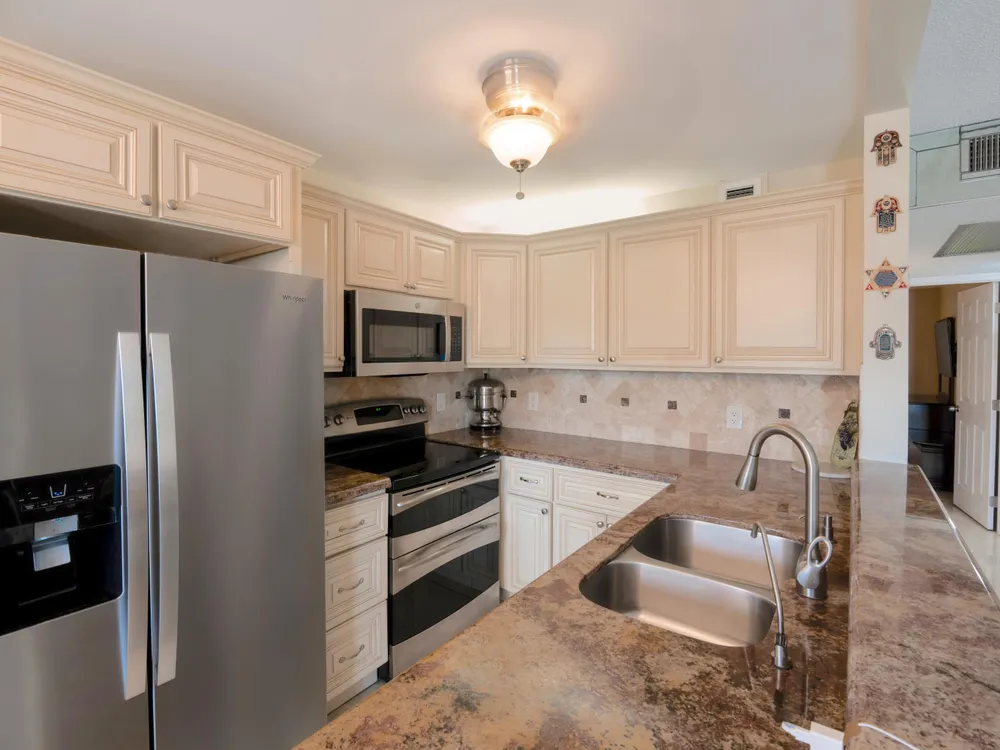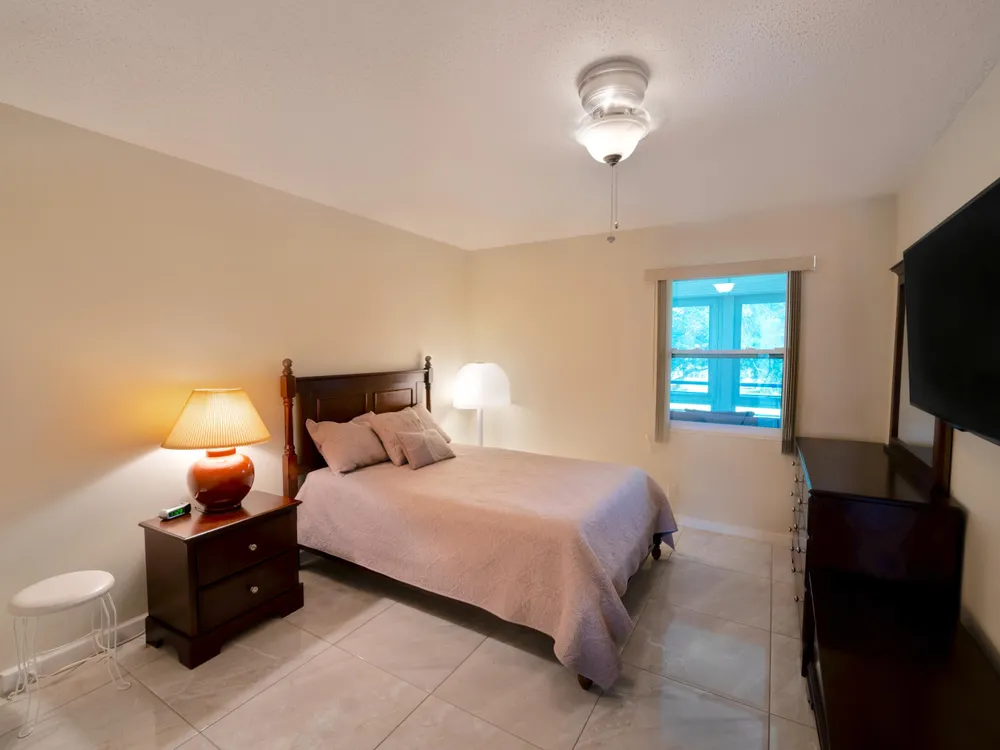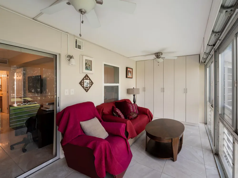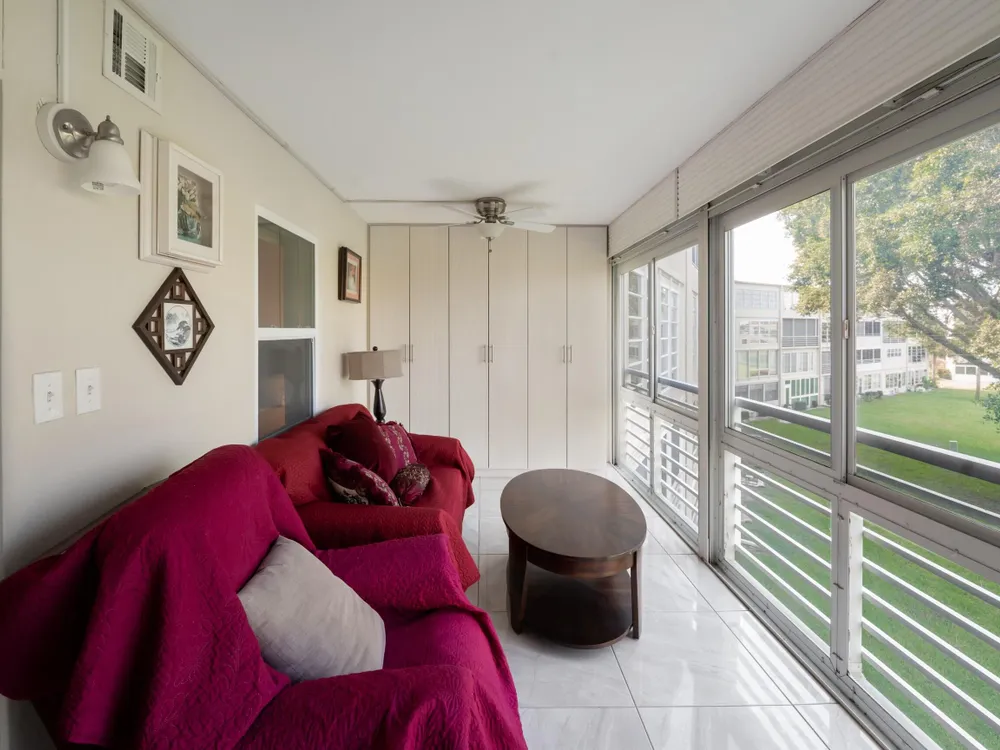 Welcome to resort style living with this Beautiful turnkey 2BR/2BA condo in Grantham E, a friendly 55+ community in Century Village. The kitchen boasts granite counters, tile backsplash, and stainless appliances that flow into the dining and living areas. Both bathrooms feature granite vanities and step-in showers.(water incl) Spacious bedrooms offer great storage, and the enclosed Florida room featuring a custom california closet for added storage space overlooks peaceful gardens. Tile flooring throughout, impact front door, and roll-down shutters add convenience and peace of mind. Steps from the elevator, laundry, and storage. Century Village provides 24-hour security plus pools, clubhouse, theater, fitness center, tennis, pickleball, and more--minutes from shopping, dining, & the beach!