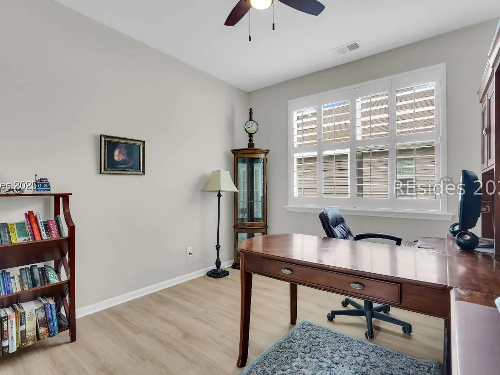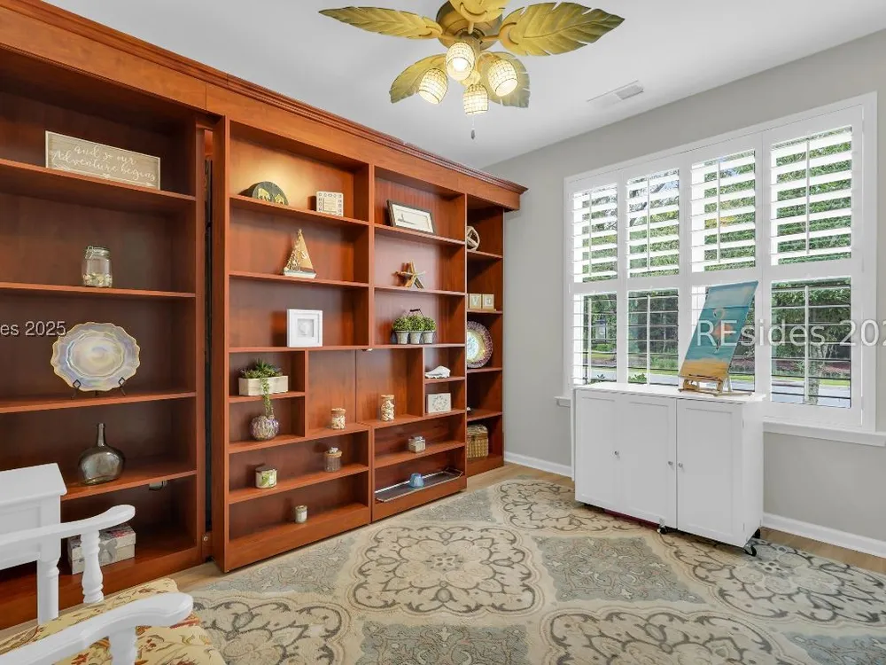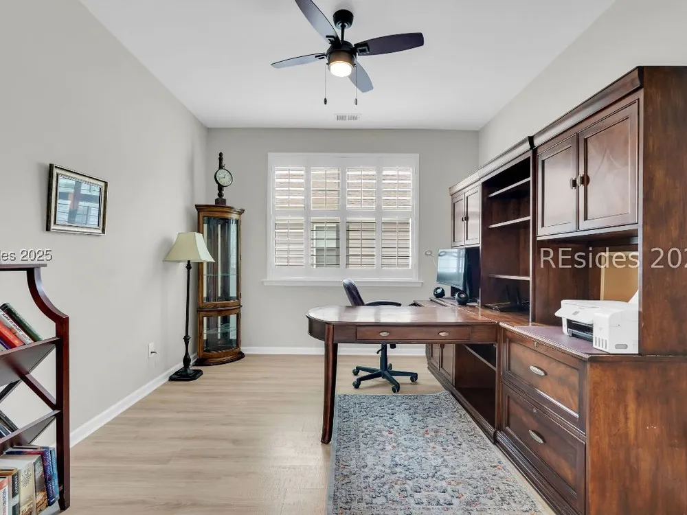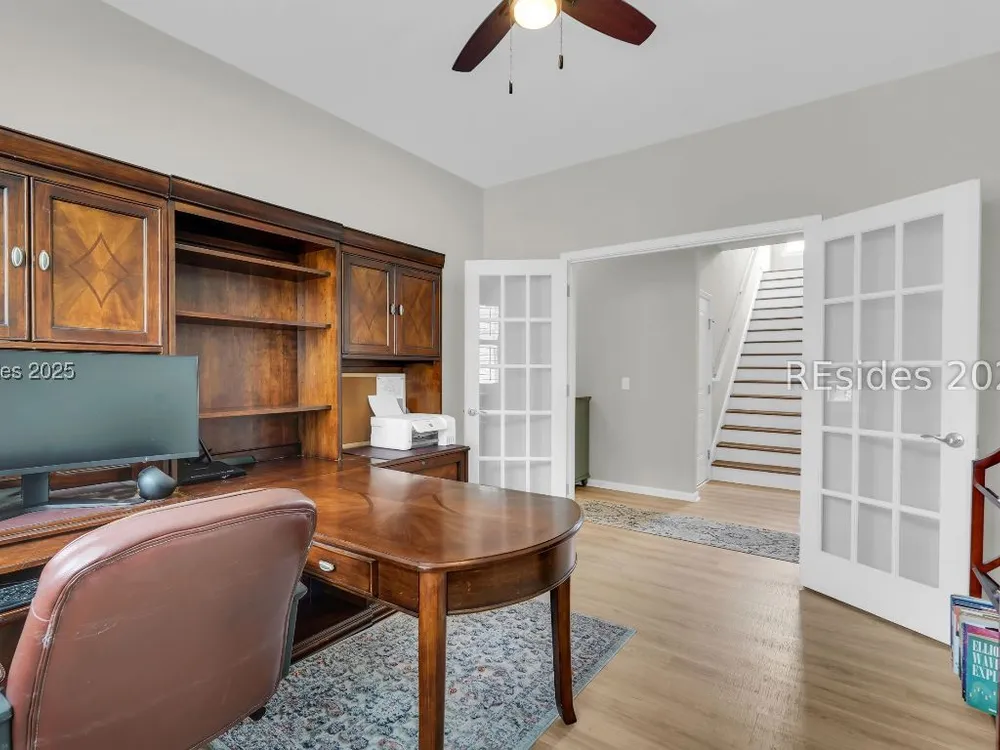 Clifton Model with over 2,500sq ft in the Reserve at Cypress Ridge! Low-maintenance living with lawn care included in this beautifully maintained home, ideally situated on a private wooded lot with peaceful views of the common area across the street. The stone-accented exterior and manicured landscaping provide inviting curb appeal.This spacious home offers 3 bedrooms, 3 full baths, a dedicated office with French doors, and an upstairs loft perfect for guests or additional living space. Move-in ready with neutral tones throughout and no carpet on the main floor for easy living. Gourmet kitchen, featuring large center island, a gas stove, walk-in pantry, and open layout ideal for entertaining. The main-level owner's suite includes an ensuite bathroom, two closets, one with a built-in organizational system.Step outside to a large screened lanai with epoxy flooring and an extended paver patio for your own backyard retreat! Additional features include: Plantation shutters, Upgraded lighting, Crown molding, Finished garage, Attic radiant barrier, Gutters, Tankless water heater, Murphy bed, and Extra storage space. Resort-style community amenities, Close proximity to The New Riverside Barn Park, May River Crossing, and Riverside Village.