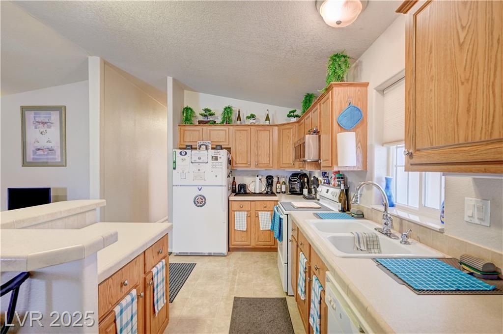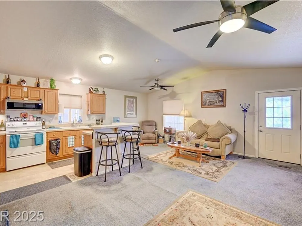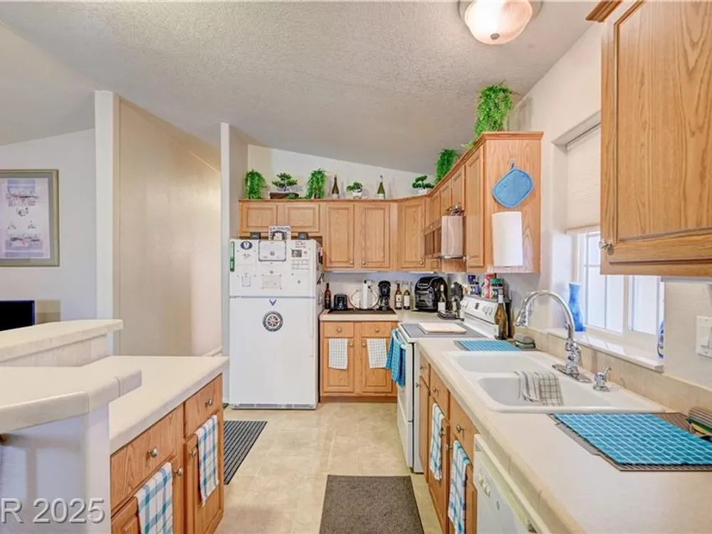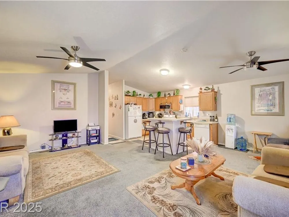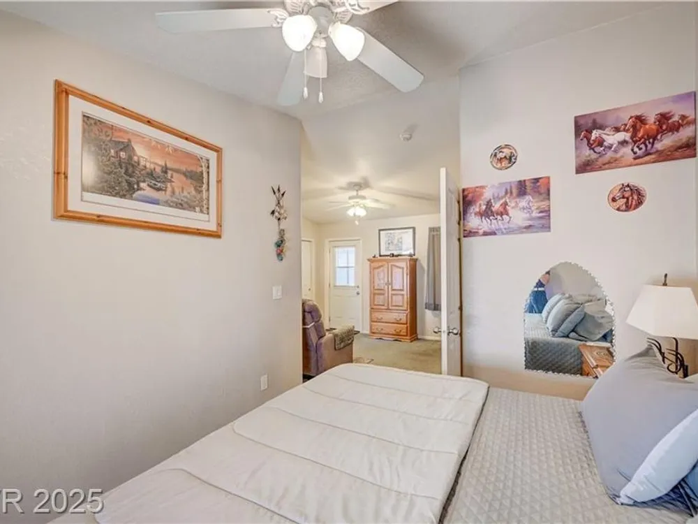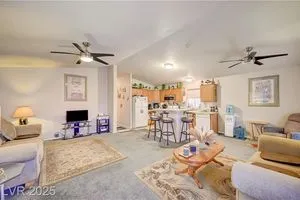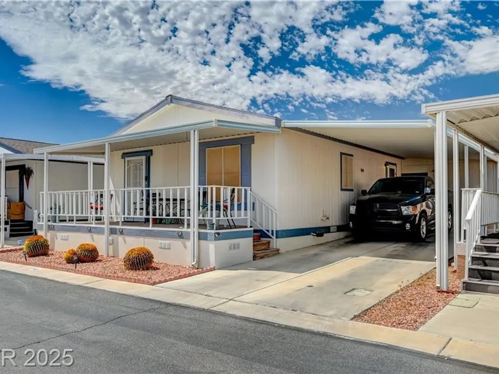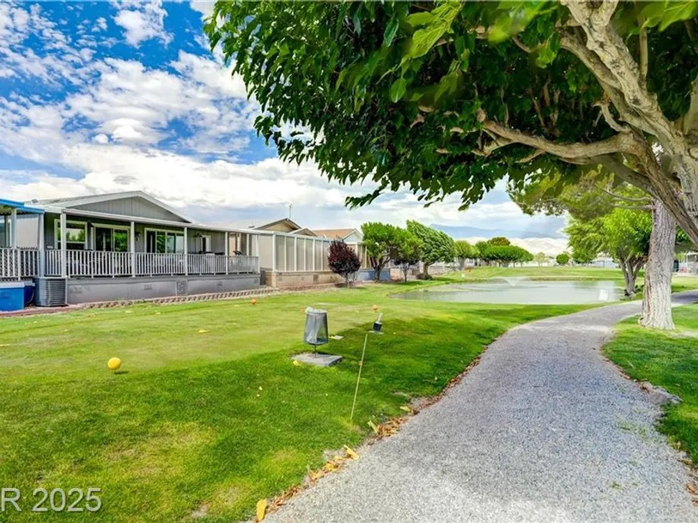 Own a rare gem in Desert Greens Pahrump! This immaculate 2005 doublewide offers a unique no-lease lot – saving you thousands yearly! Shows as 2 bedrooms but the 3rd bedroom has been opened up to be part of a very large primary bedroom which has access to a covered sunroom/patio. Wonderful kitchen with stylish island. The driveway can accommodate two large vehicles and a golf cart! As an added feature, there is a 10x10 fully covered storage room with permitted electricity (it's a perfect man-cave!). Desert Greens is a 55+ active community complete with a golf course, clubhouse, gym/exercise room, recreation room, pool, hot tub.