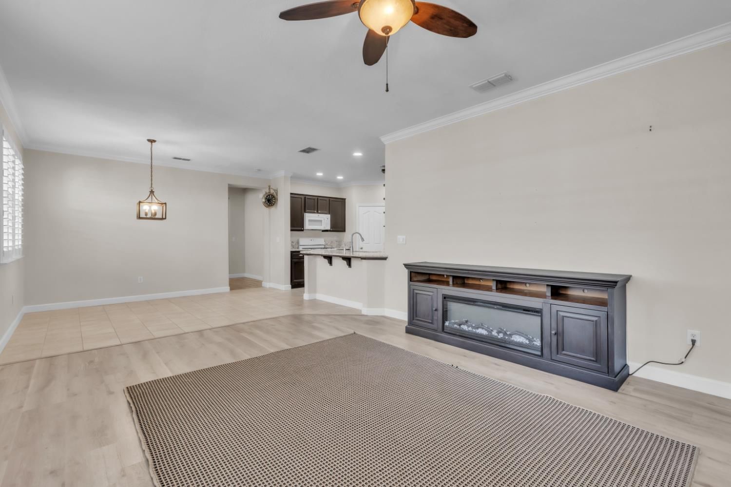 Welcome to this 2-bed, 2-bath home with an additional versatile flex room, offering 1,557 sqft of living space. This home blends modern upgrades with timeless charm in the highly desirable, gated 55+ Heritage Park community. Step inside to discover a spacious living room, featuring laminate flooring, recessed lighting, and light fixtures. The kitchen has been renovated with brand-new granite countertops, freshly painted and professionally repolished cabinetry, and functional appliances. The primary ensuite serves as a peaceful retreat. The hall bath is equipped with a brand-new, upgraded walk-in shower tub. The additional flex room provides versatility as a potential third bedroom, home office, or hobby space to suit your lifestyle. Step outside to your professionally landscaped backyard, complete with a covered awning. The home's exterior has been freshly painted and the garage boasts newly installed, custom storage cabinets. Residents enjoy access to top-tier amenities including a stunning rose garden, full clubhouse with restaurant and bar, fitness center, card rooms, indoor and outdoor pools, and five expansive one-acre parks featuring tennis, pickleball, basketball and volleyball courts. Experience the perfect blend of comfort, functionality, and community.