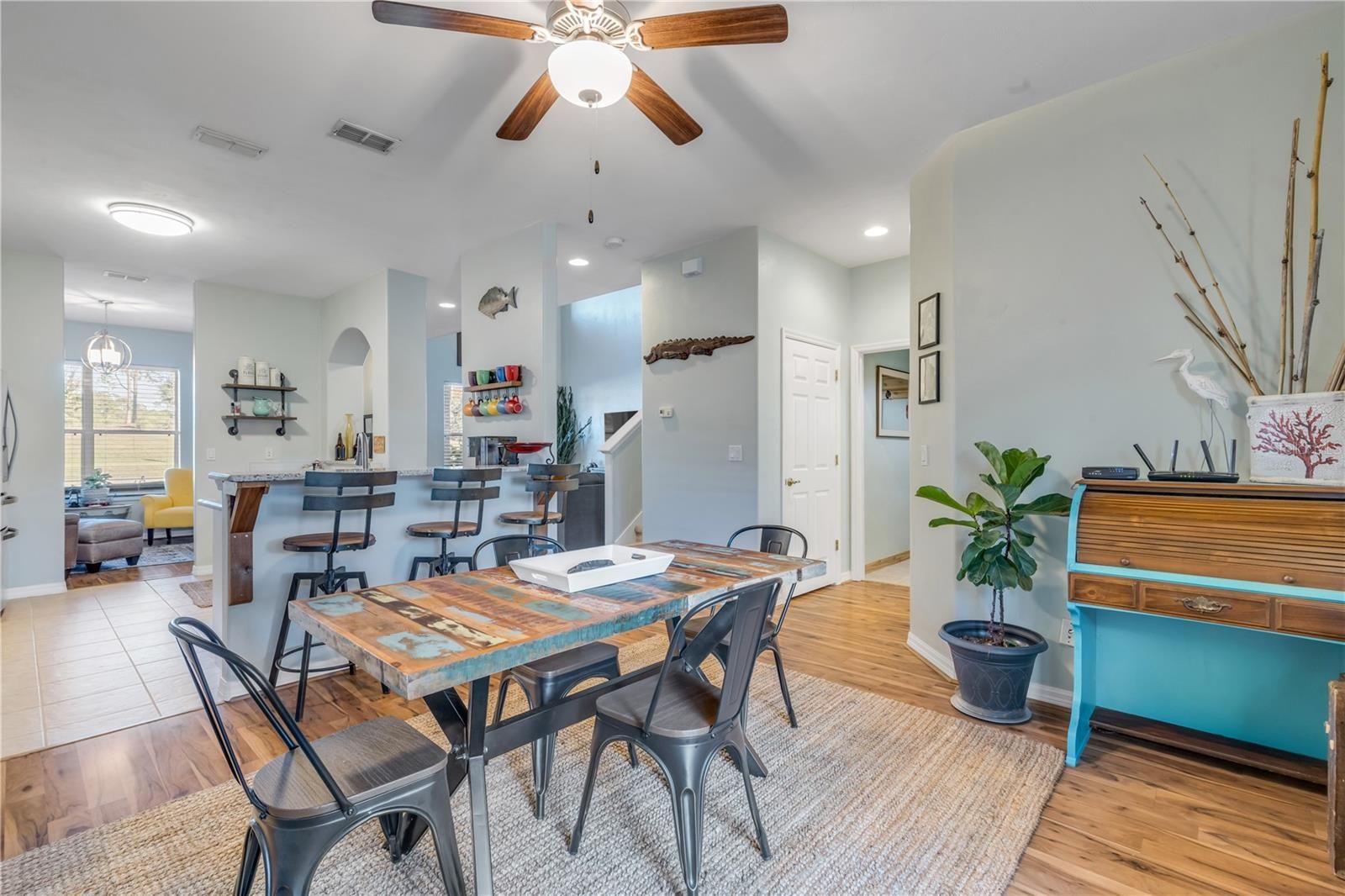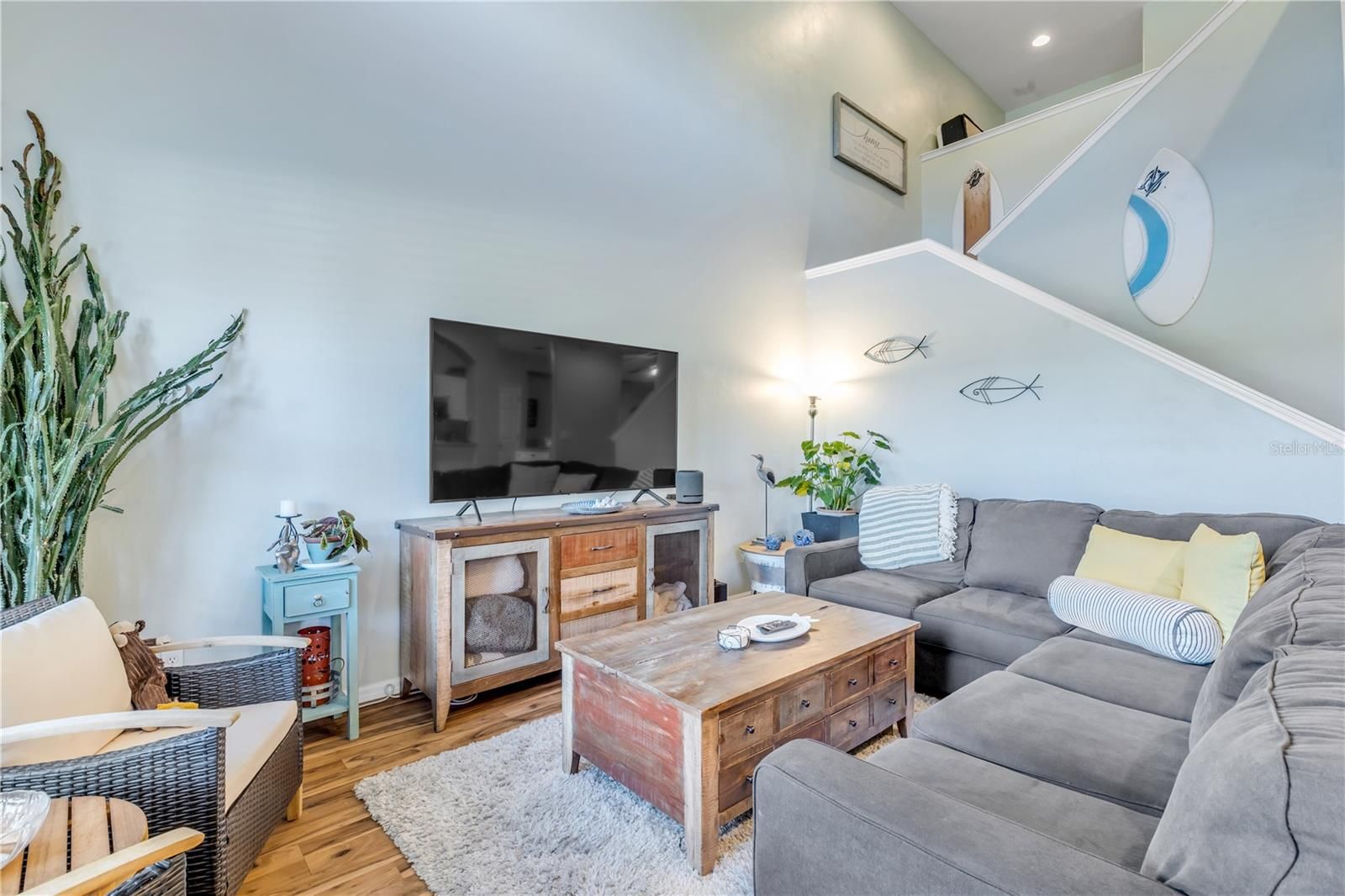 Resort style living for the day-to-day! Welcome to Parkside Townhomes at Venetian. this delightful 2 story townhome in the Venetian Bay golfing community has been tastefully refreshed from top to bottom with thoughtful touches that include granite countertops, warm wood accents, and new flooring. Step inside to impressive, vaulted ceilings, graceful archways, and inviting first-floor living spaces that include a spacious living room, a versatile bonus room perfect for a home office or hobby space, a dedicated dining area, and an indoor laundry room. The kitchen anchors the main level with granite countertops, abundant cabinetry, and a breakfast bar overlooking the dining area and the paver-patio porch. Upstairs, the expansive owner’s suite offers a private retreat with a walk-in closet and an en-suite bath featuring a step-in shower. A second bedroom and full guest bath complete the upper level. This charming townhome is conveniently located a block from one of Venetian’s community pools that abuts a small water-fountained pond and convenient access to I95, a day at the beach or to all the entertainment, dining and shopping of downtown New Smyrna or Flagler Avenue. Other features include a handy first floor half bath, 2 car garage and its resort style amenities within this golfing community ore among some of the best New Smyrna has to offer such as a championship golf course, miles of walking and biking trails, community pools, town center shops, dining, and events that bring neighbors together year-round. This charming townhome truly embodies the best of resort-style living in New Smyrna Beach.