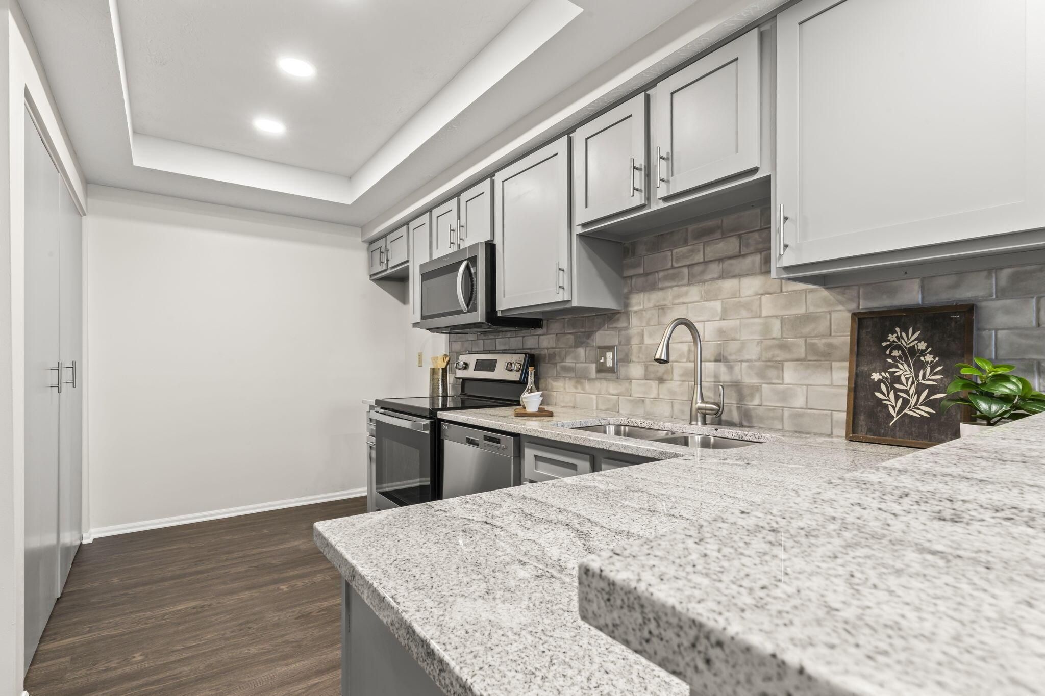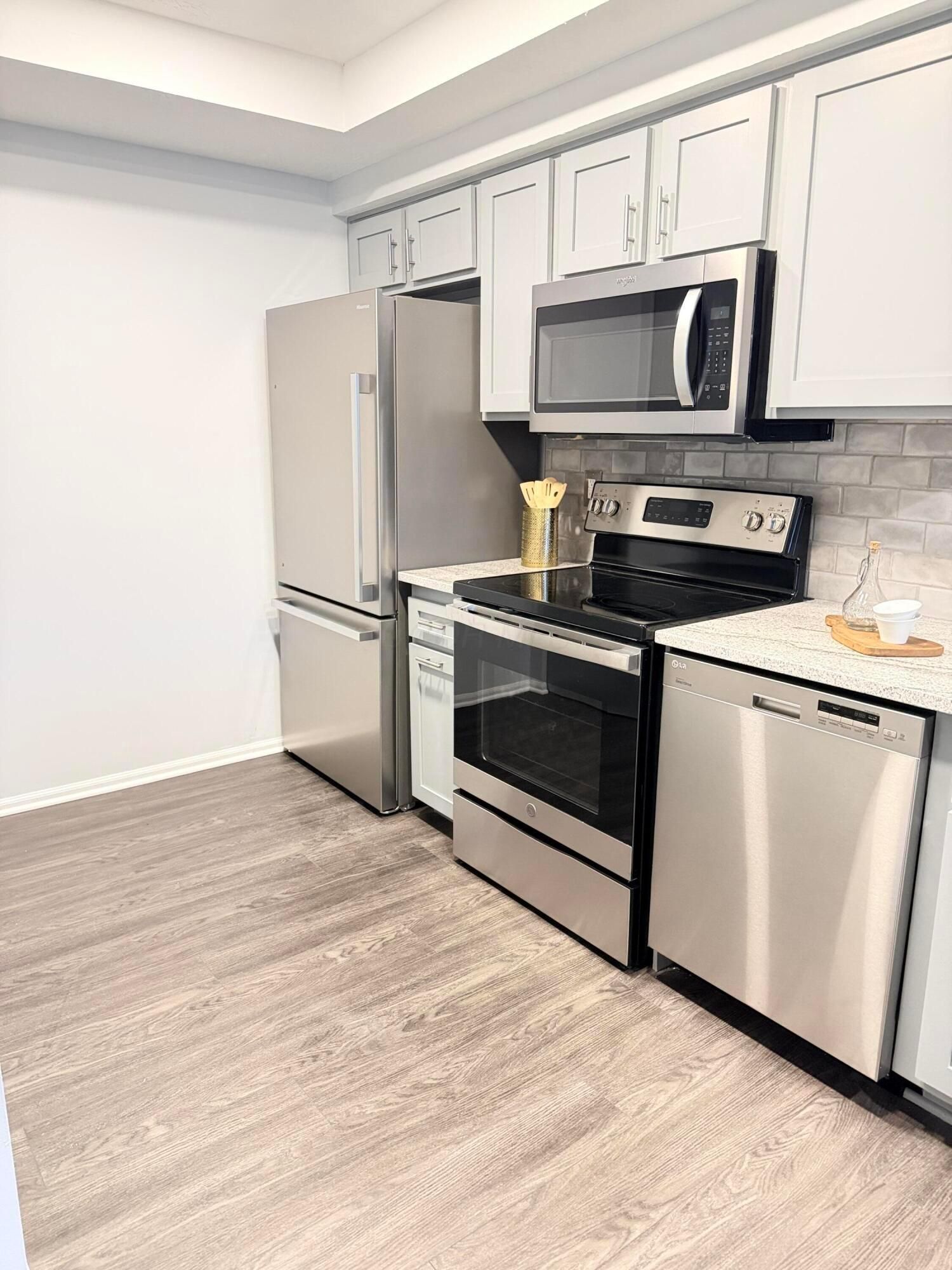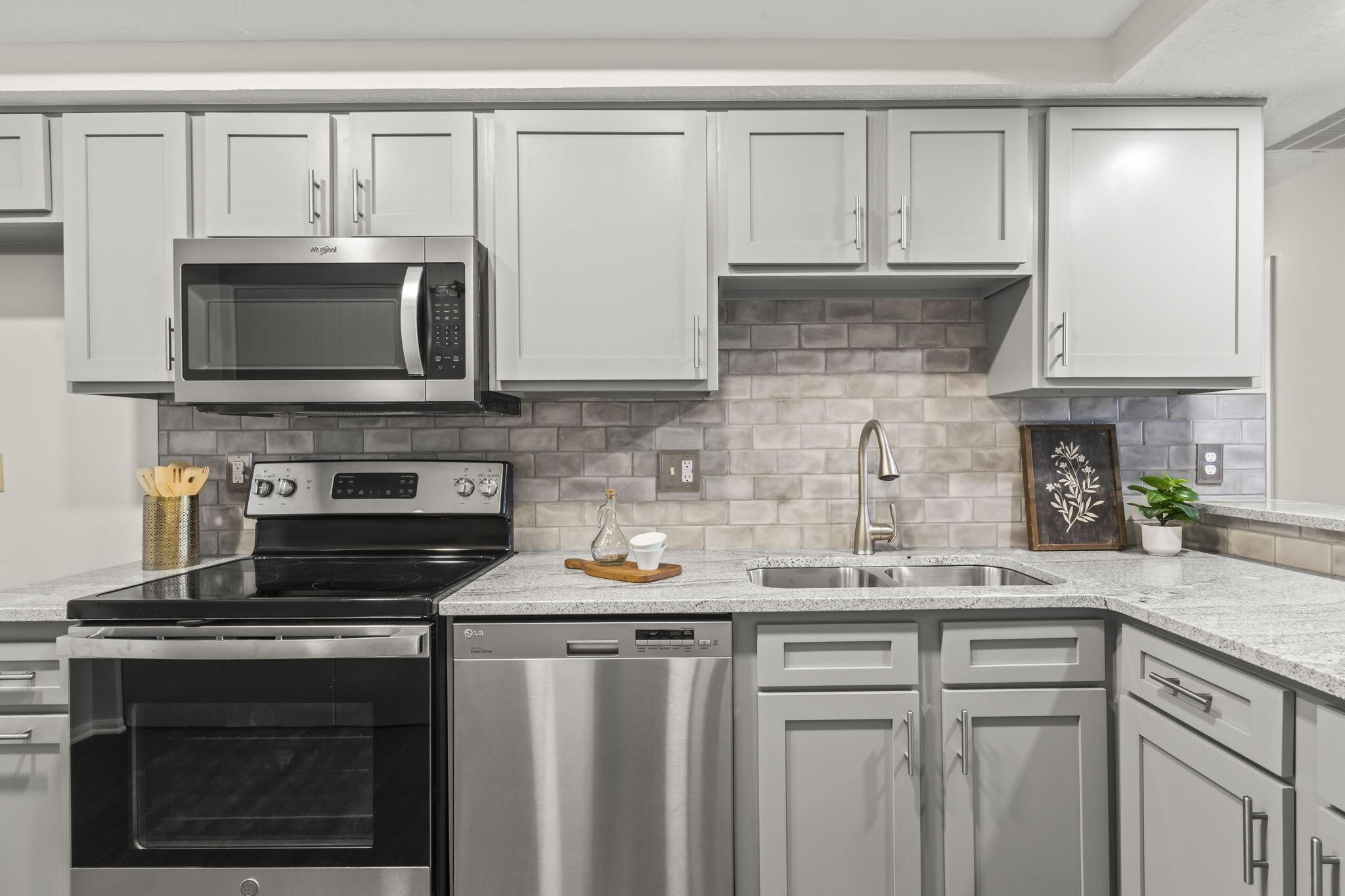 - Dishwasher, Electric Range, Microwave, Refrigerator, Gas Water Heater