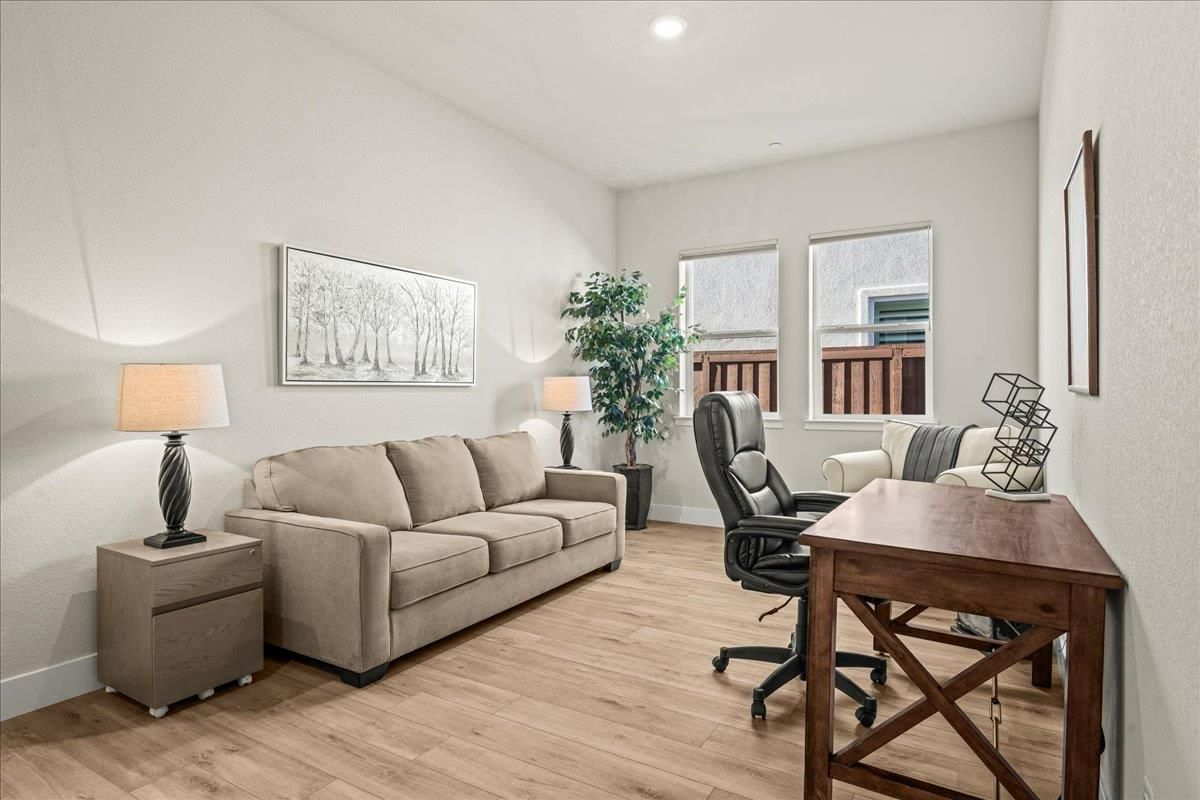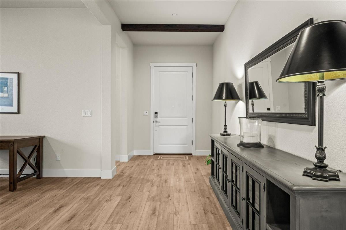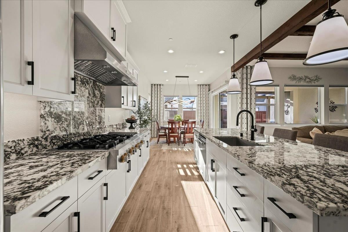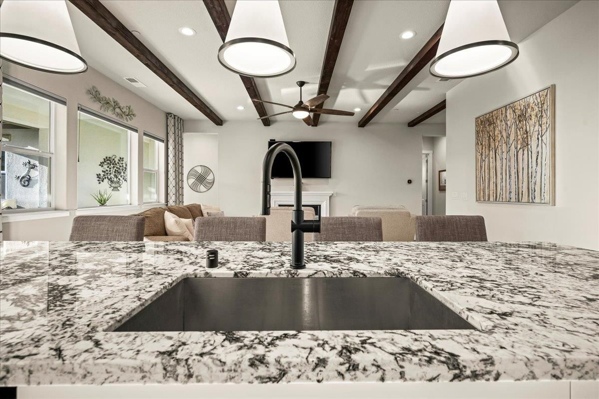 Welcome to refined living in this luxury single-story home located within Folsom's premier 55+ active adult community. Thoughtfully designed with 2 bedrooms plus a versatile flex room, 3 baths, and 2,148 square feet of beautifully finished living space, this residence offers the perfect blend of comfort, elegance, and ease. The flex room is ideal for a home office, hobby space, or guest retreat, adapting effortlessly to your lifestyle. Luxury vinyl plank flooring flows seamlessly throughout the home, complemented by custom faux wood ceiling beams that add warmth and architectural character. The chef's kitchen serves as the heart of the home, showcasing expansive granite countertops, stainless steel appliances, abundant cabinetry, and a spacious walk-in pantryperfect for both entertaining and everyday living. The open, airy layout creates a welcoming atmosphere filled with natural light and timeless finishes. Over $150,000 in premium upgrades elevate this home well beyond standard offerings, while owned solar provides energy efficiency and long-term savings. Step outside to a beautifully landscaped backyard designed for relaxation and privacy, complete with your own personal hot tuban ideal space to unwind, entertain, or enjoy peaceful evenings year-round. The location is equally impressive, just moments from the community's resort-style amenities. Residents enjoy access to a stunning clubhouse featuring indoor and outdoor pools, a soothing spa, fitness center, and a vibrant social calendar with weekly events. Outdoor amenities include pickleball courts, bocce ball, cornhole, inviting firepits, and multiple gathering areas that foster connection and an active lifestyle. This exceptional Folsom home delivers luxury, low-maintenance living, and a true sense of community - an outstanding opportunity to enjoy the very best of active adult living.