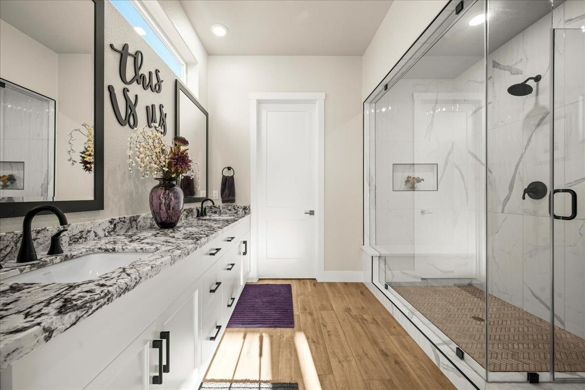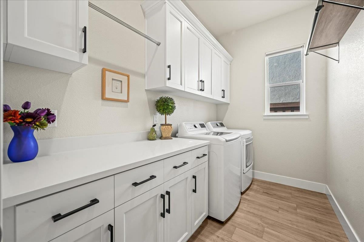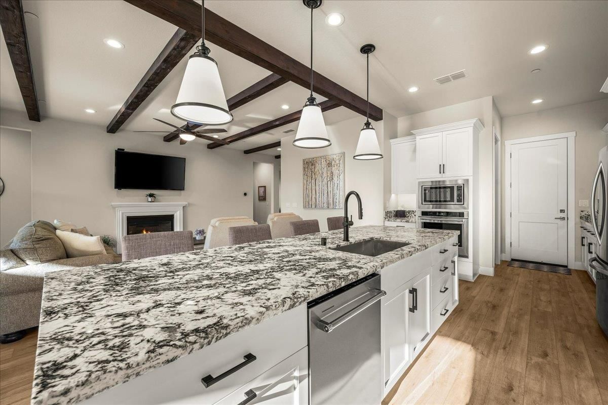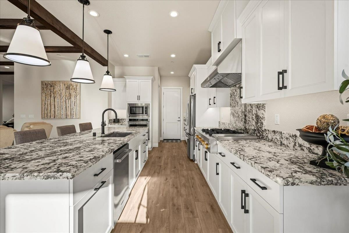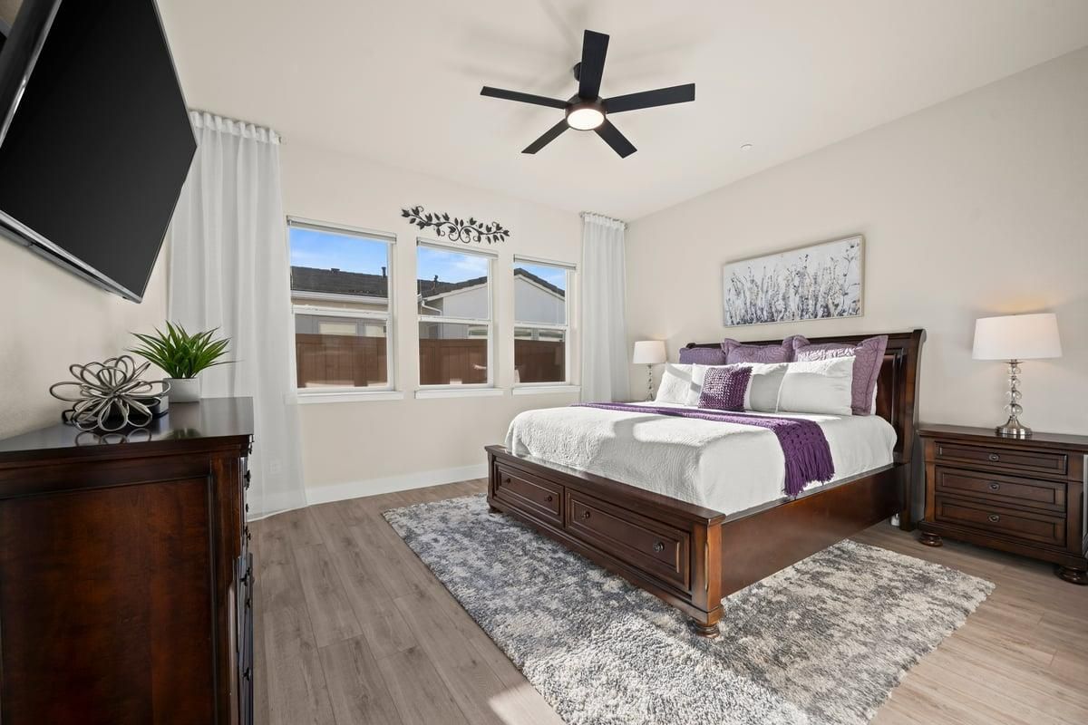 Welcome to refined living in this luxury single-story home located within Folsom's premier 55+ active adult community. Thoughtfully designed with 2 bedrooms plus a versatile flex room, 3 baths, and 2,148 square feet of beautifully finished living space, this residence offers the perfect blend of comfort, elegance, and ease. The flex room is ideal for a home office, hobby space, or guest retreat, adapting effortlessly to your lifestyle. Luxury vinyl plank flooring flows seamlessly throughout the home, complemented by custom faux wood ceiling beams that add warmth and architectural character. The chef's kitchen serves as the heart of the home, showcasing expansive granite countertops, stainless steel appliances, abundant cabinetry, and a spacious walk-in pantryperfect for both entertaining and everyday living. The open, airy layout creates a welcoming atmosphere filled with natural light and timeless finishes. Over $150,000 in premium upgrades elevate this home well beyond standard offerings, while owned solar provides energy efficiency and long-term savings. Step outside to a beautifully landscaped backyard designed for relaxation and privacy, complete with your own personal hot tuban ideal space to unwind, entertain, or enjoy peaceful evenings year-round. The location is equally impressive, just moments from the community's resort-style amenities. Residents enjoy access to a stunning clubhouse featuring indoor and outdoor pools, a soothing spa, fitness center, and a vibrant social calendar with weekly events. Outdoor amenities include pickleball courts, bocce ball, cornhole, inviting firepits, and multiple gathering areas that foster connection and an active lifestyle. This exceptional Folsom home delivers luxury, low-maintenance living, and a true sense of community - an outstanding opportunity to enjoy the very best of active adult living.