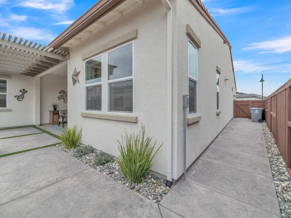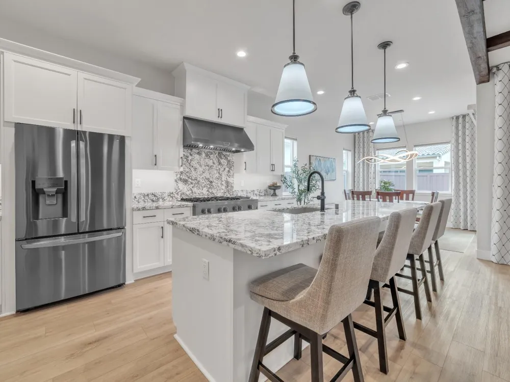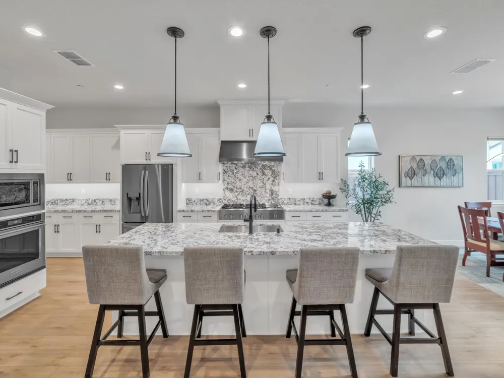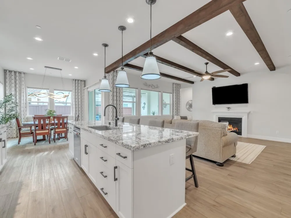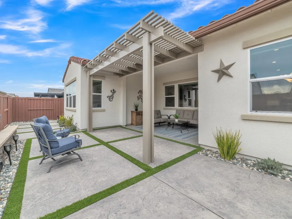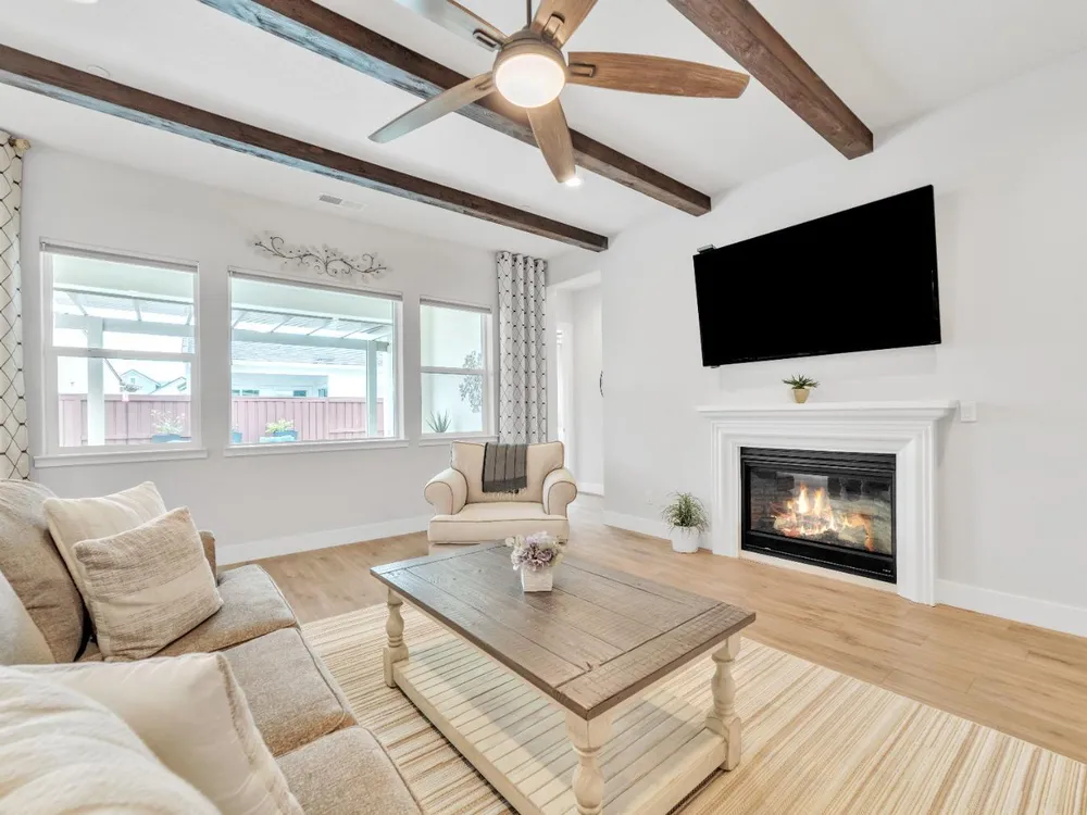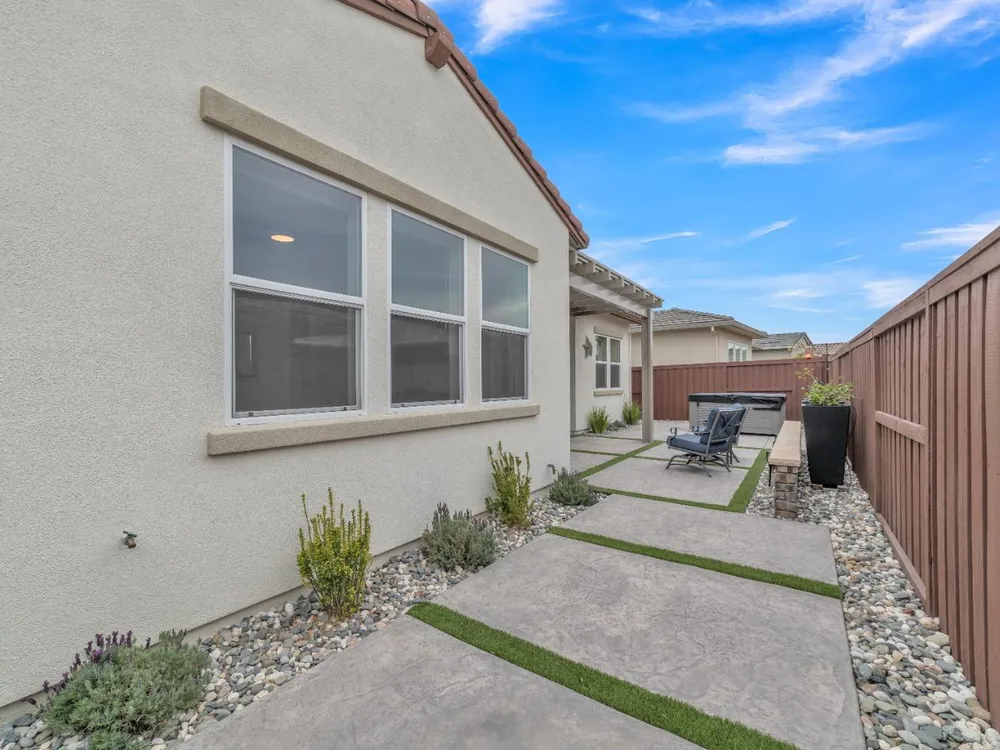 Welcome to luxury living in the highly desired 55+ community of Regency at Folsom Ranch by Toll Brotherswhere resort-style amenities meet elevated design. Located just walking distance to the clubhouse, this single-story stunner stands out with over $150K in premium upgrades, owned solar, and a layout designed for comfort and style. Step inside to wide-plank luxury vinyl plank flooring throughout and custom faux wood ceiling beams that add warmth to the expansive open-concept design. The chef's kitchen features a mix of KitchenAid and upgraded Jennair appliances, striking modern pendant lights, granite countertops, and a spacious walk-in pantrycrafted for both function and beauty. The great room flows seamlessly into a low-maintenance backyard featuring a custom patio cover and private hot tubperfect for morning coffee or unwinding at night. The primary suite is your sanctuary, with a fully upgraded bath that includes an oversized shower, dual vanities, granite counters, and a generous walk-in closet. Every detail has been thoughtfully curatedfrom energy efficiency with owned solar to timeless designer finishes throughout. While other homes may share the same layout, none match the style, quality, or location of this one.