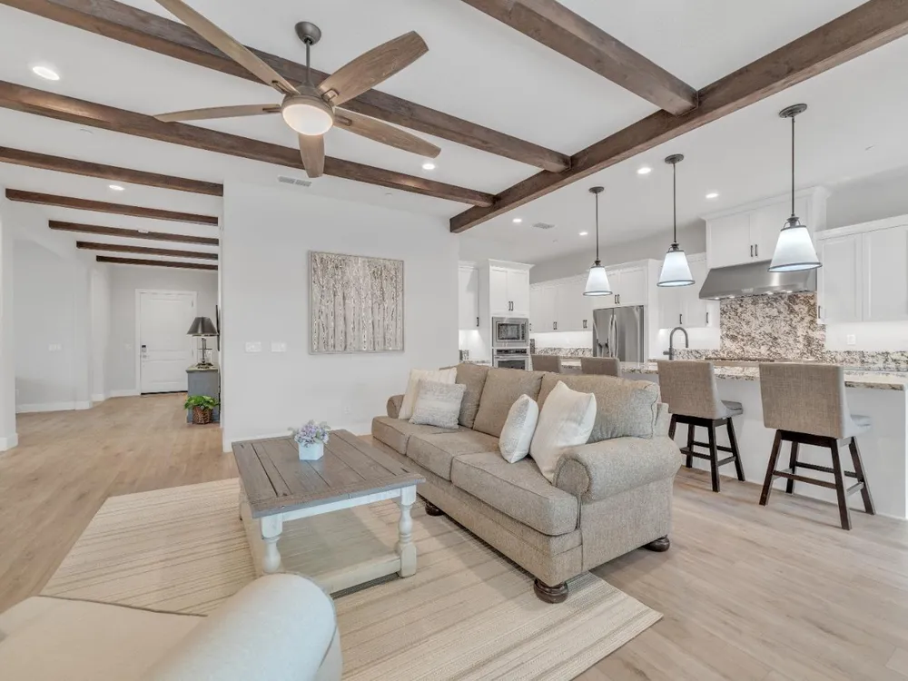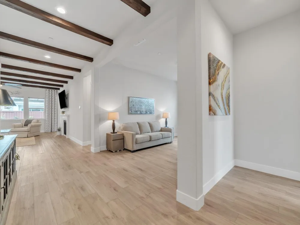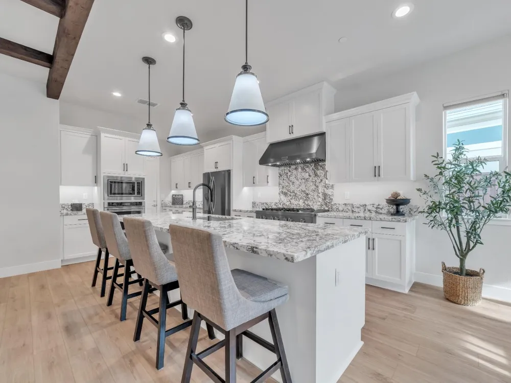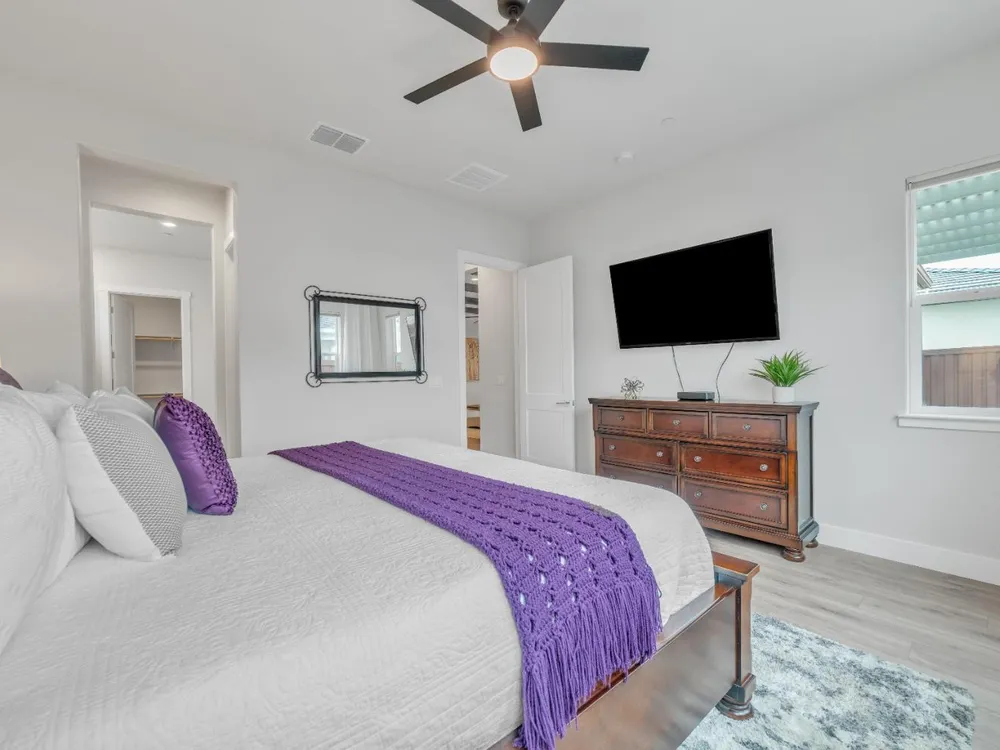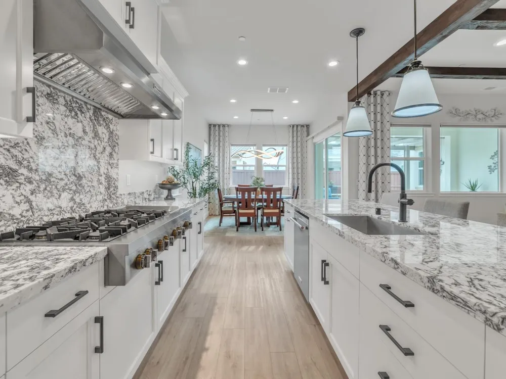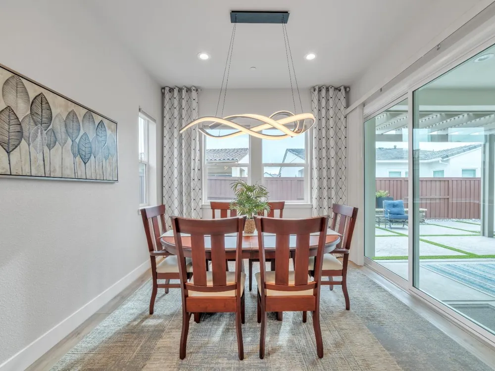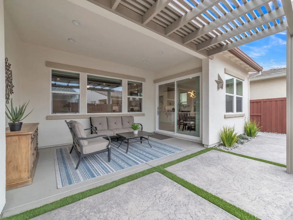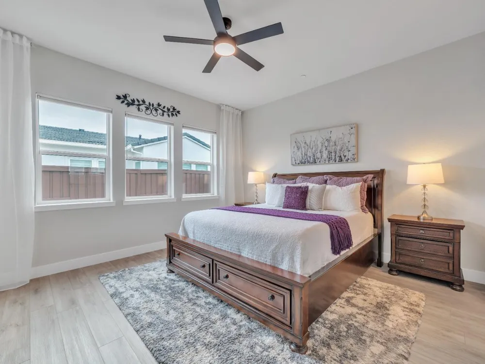 Welcome to luxury living in the highly desired 55+ community of Regency at Folsom Ranch by Toll Brotherswhere resort-style amenities meet elevated design. Located just walking distance to the clubhouse, this single-story stunner stands out with over $150K in premium upgrades, owned solar, and a layout designed for comfort and style. Step inside to wide-plank luxury vinyl plank flooring throughout and custom faux wood ceiling beams that add warmth to the expansive open-concept design. The chef's kitchen features a mix of KitchenAid and upgraded Jennair appliances, striking modern pendant lights, granite countertops, and a spacious walk-in pantrycrafted for both function and beauty. The great room flows seamlessly into a low-maintenance backyard featuring a custom patio cover and private hot tubperfect for morning coffee or unwinding at night. The primary suite is your sanctuary, with a fully upgraded bath that includes an oversized shower, dual vanities, granite counters, and a generous walk-in closet. Every detail has been thoughtfully curatedfrom energy efficiency with owned solar to timeless designer finishes throughout. While other homes may share the same layout, none match the style, quality, or location of this one.