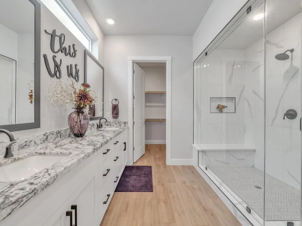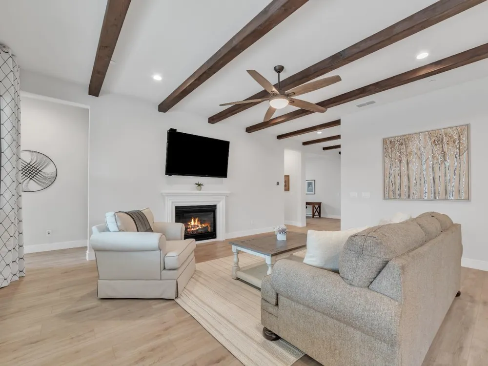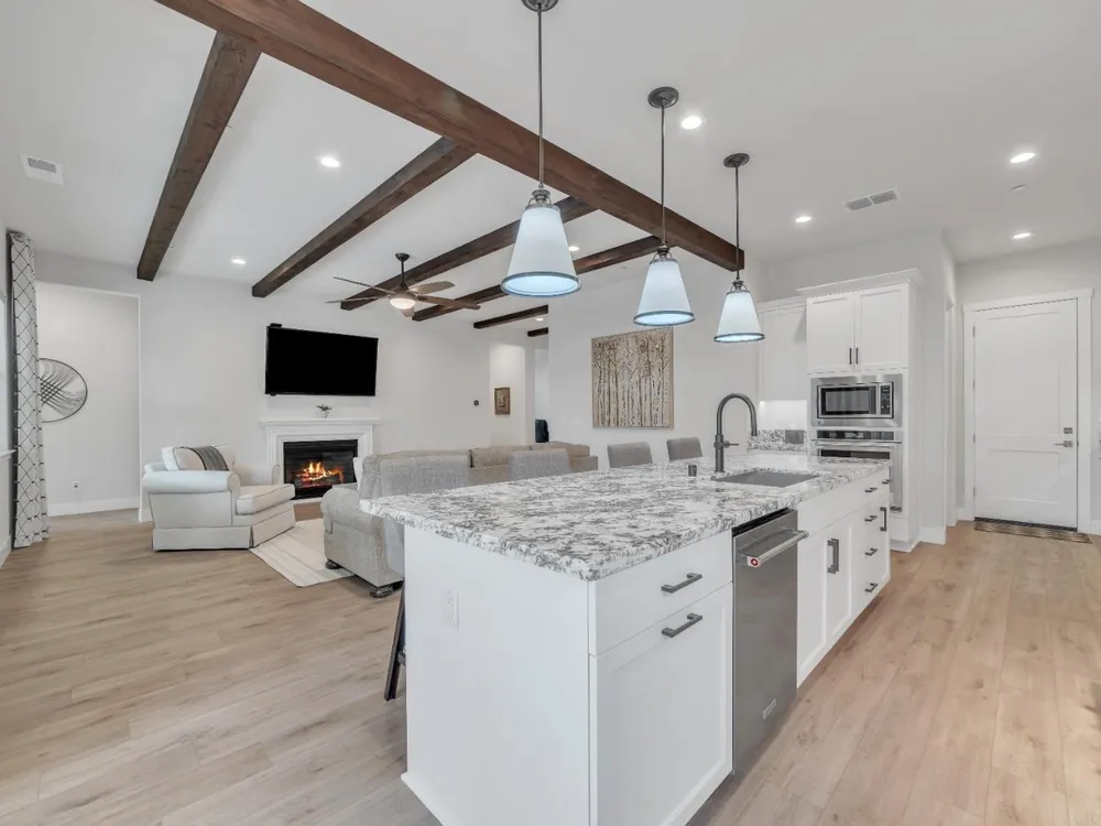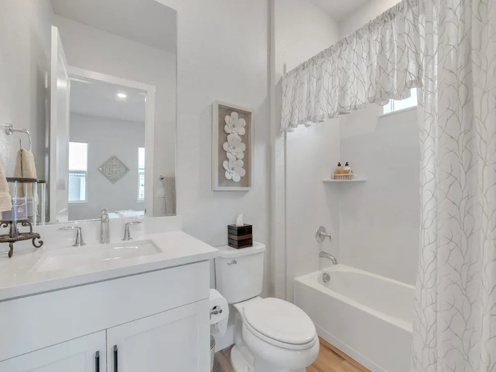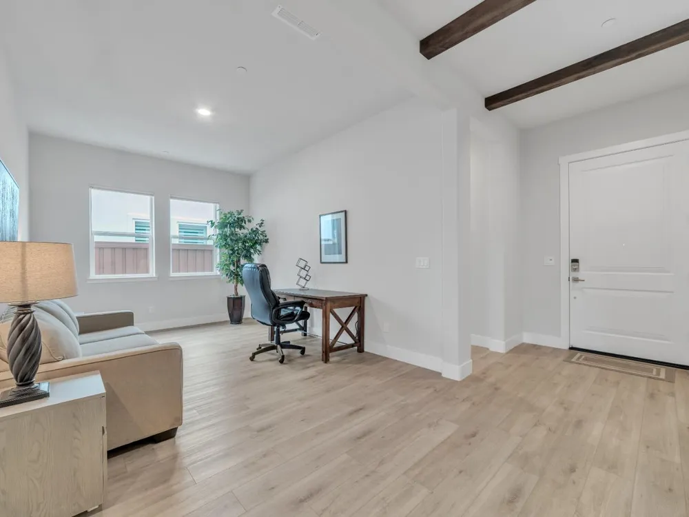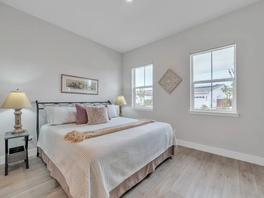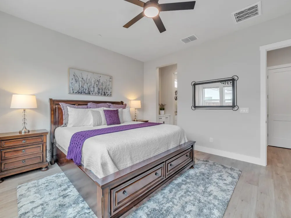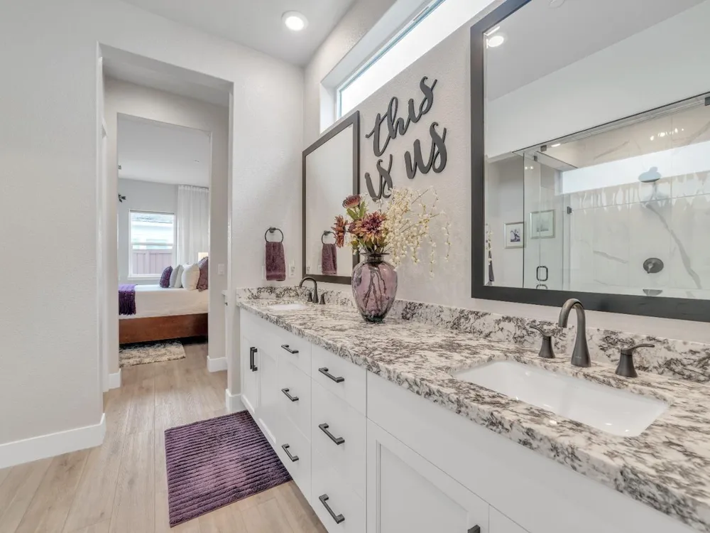 Welcome to luxury living in the highly desired 55+ community of Regency at Folsom Ranch by Toll Brotherswhere resort-style amenities meet elevated design. Located just walking distance to the clubhouse, this single-story stunner stands out with over $150K in premium upgrades, owned solar, and a layout designed for comfort and style. Step inside to wide-plank luxury vinyl plank flooring throughout and custom faux wood ceiling beams that add warmth to the expansive open-concept design. The chef's kitchen features a mix of KitchenAid and upgraded Jennair appliances, striking modern pendant lights, granite countertops, and a spacious walk-in pantrycrafted for both function and beauty. The great room flows seamlessly into a low-maintenance backyard featuring a custom patio cover and private hot tubperfect for morning coffee or unwinding at night. The primary suite is your sanctuary, with a fully upgraded bath that includes an oversized shower, dual vanities, granite counters, and a generous walk-in closet. Every detail has been thoughtfully curatedfrom energy efficiency with owned solar to timeless designer finishes throughout. While other homes may share the same layout, none match the style, quality, or location of this one.