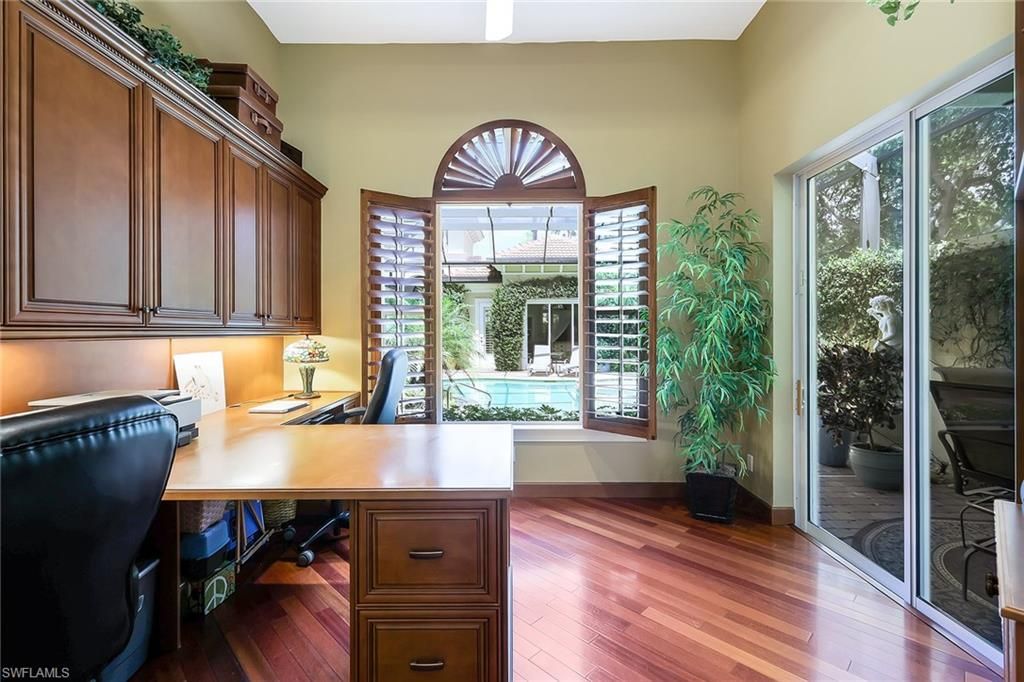 Designed for privacy, flexibility and seamless indoor-outdoor living, this cabana-style residence in The Sanctuary at Pelican Landing wraps around a private courtyard oasis, where a heated saltwater pool, summer kitchen, lush landscaping and a custom mural create a tranquil center for relaxation and entertaining. With an architectural layout inspired by British West Indies design, the home’s main residence, guest suites and entertaining areas are purposefully separated—offering independent access for residents and visitors alike.Inside, the formal living and dining areas frame long lake views through tall windows, enhancing natural light and scale. The primary suite features two oversized walk-in closets, a private study or den, and direct access to the courtyard lanai. Each guest suite is positioned for privacy, ideal for multi-generational living or extended stays.The kitchen includes a walk-in pantry, separate butler’s pantry and built-in trash compactor, while a custom-designed bar—featured in Naples Illustrated’s Designs of Distinction—offers a dedicated beverage cooler. Recognized with the Sand Dollar Award for Best Interior Design of a Single-Family Home, this residence pairs timeless architectural influence with luxury design.Recent improvements include an 80-gallon water heater replaced in 2018, two air-conditioning systems replaced in 2019, and in 2021, a third air-conditioning system, a new roof and two outdoor infrared heaters were installed. A full list of updates is available upon request.Residents of Pelican Landing enjoy exclusive access to a private beach park, sailing center, kayak and canoe launch, tennis and pickleball courts, bocce and a staffed fitness facility. Optional membership at The Nest Golf Club provides two 18-hole championship courses.