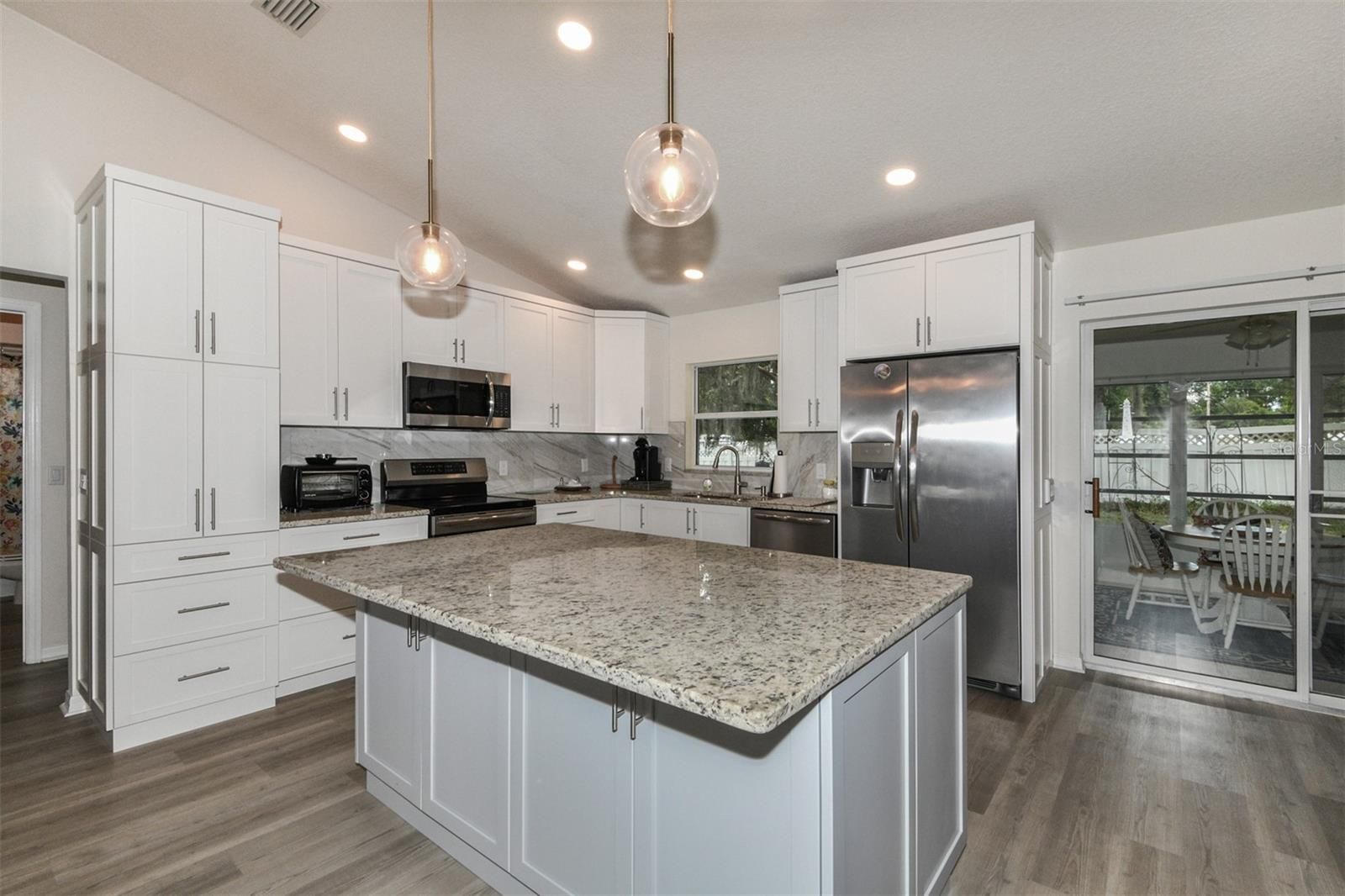 GORGEOUS 3 bedroom, 2 bath in the highly desirable area of Arbor Lakes 55+ Community - which offers an active lifestyle featuring tennis courts, shuffleboard, pickleball, an awesome clubhouse, beautiful lake front, and more! This home backs up to the community storage lot, which means NO NEIGHBORS behind you for added peace and privacy. It has been completely renovated, features include split floor plan, luxury vinyl plank throughout, updated kitchen with beautiful cabinets and granite countertops, plus top of the line appliances including induction oven, interior laundry room with awesome high end washer and dryer, roof was redone in 2020, AC new in 2021, lovely enclosed sunroom/lanai, tons of storage, and so much more! Don't miss your chance to enjoy the relaxing Florida Lifestyle, schedule a showing today!