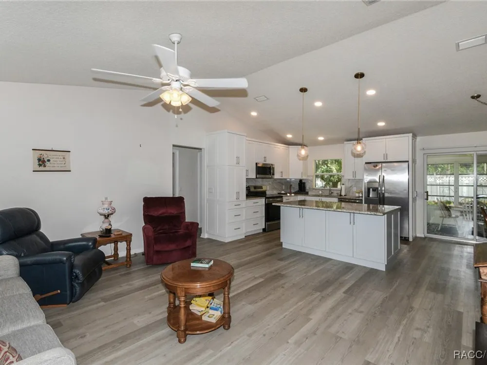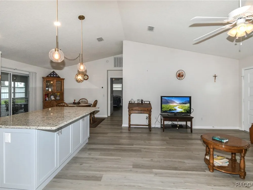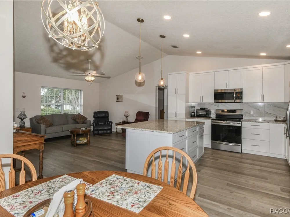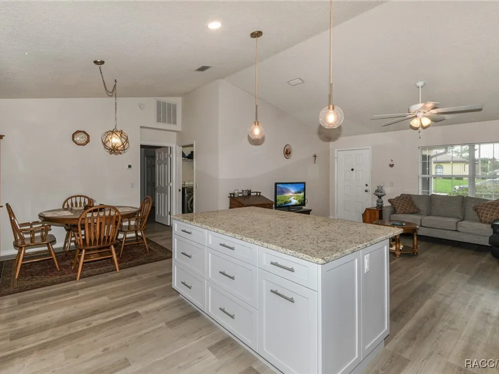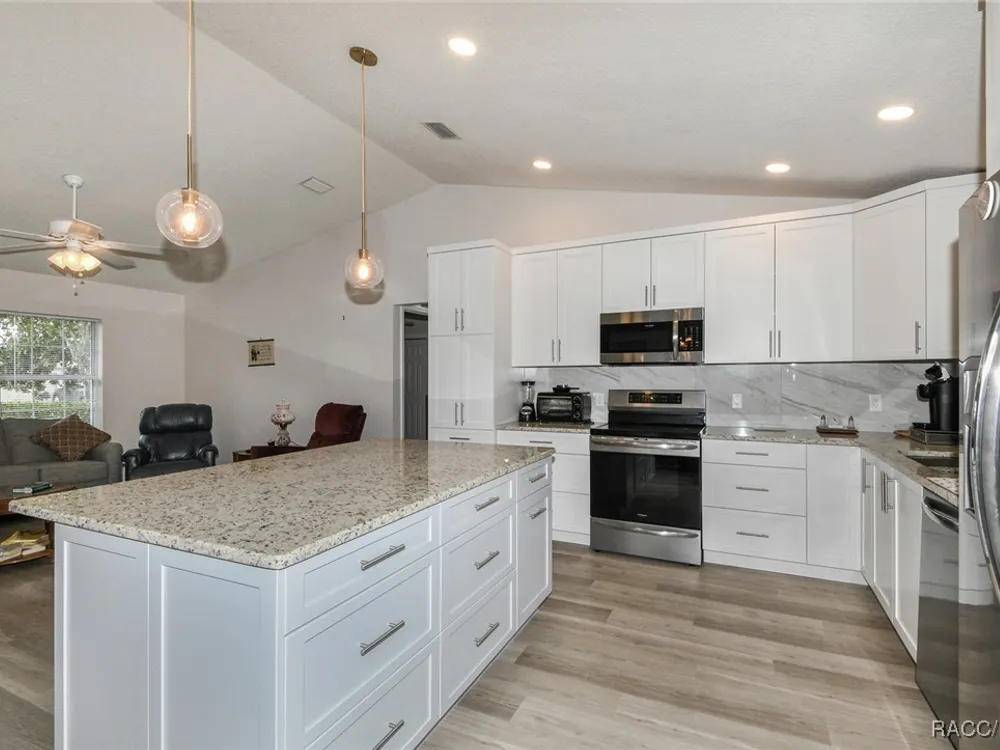 - Breakfast Bar, Eat-in Kitchen, Open Floorplan, Pantry, Stone Counters, Updated Kitchen, Window Treatments