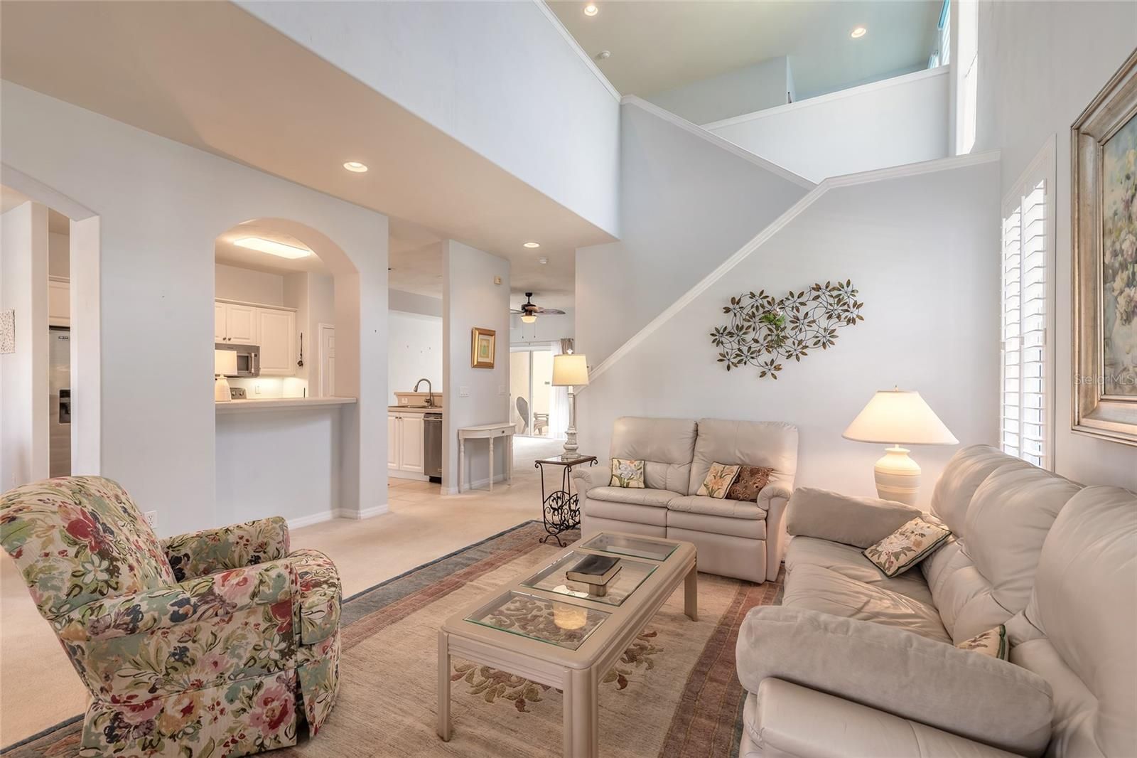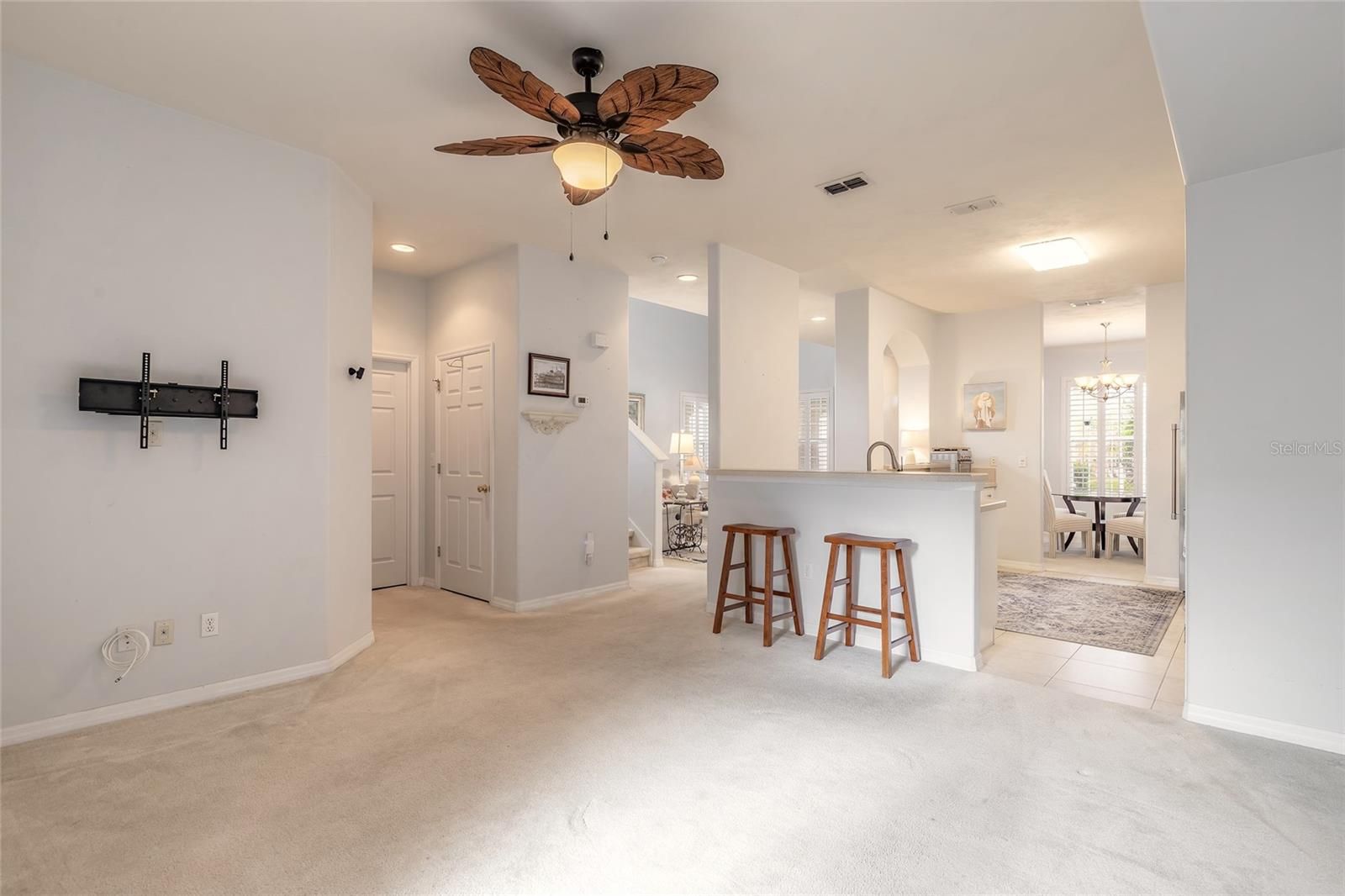 Welcome to Parkside Townhomes at Venetian, nestled within the sought-after Venetian Bay golfing community in New Smyrna Beach. This beautifully maintained two-story townhome combines comfortable living with upscale resort amenities. Step inside to discover soaring vaulted ceilings, graceful archways, and inviting open spaces. The first floor features a spacious living room, a versatile bonus room perfect for a home office or hobby space, a dedicated dining area, and an indoor laundry room. The kitchen offers abundant cabinetry and a breakfast bar overlooking the dining area and the paver patio porch—ideal for morning coffee or evening relaxation. Upstairs, the owner’s suite provides a private retreat complete with a walk-in closet and an en-suite bath featuring a step-in shower. A second bedroom and full guest bath complete the upper level. Additional features include a first-floor half bath, a two-car garage, and a brand-new A/C unit. Enjoy all that Venetian Bay has to offer—a community town center with a resort-style pool, tiki bar, restaurant, 24-hour fitness center, day spa, and salon. Residents also have access to the beautiful golf course and clubhouse with dining, scenic walking and biking trails, neighborhood events, and more. Experience the best of resort-style living at Parkside Townhomes—where comfort, community, and convenience meet.
