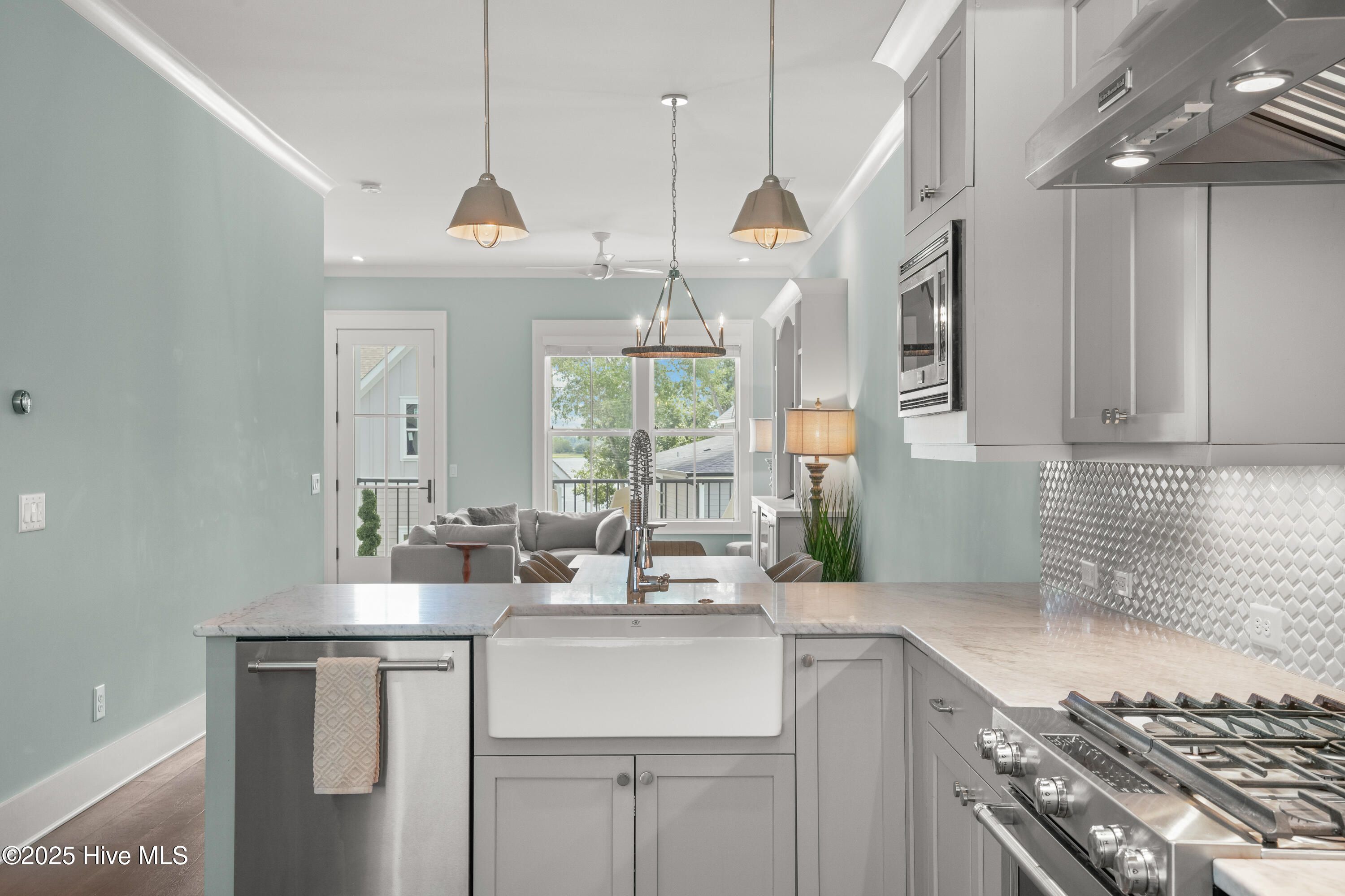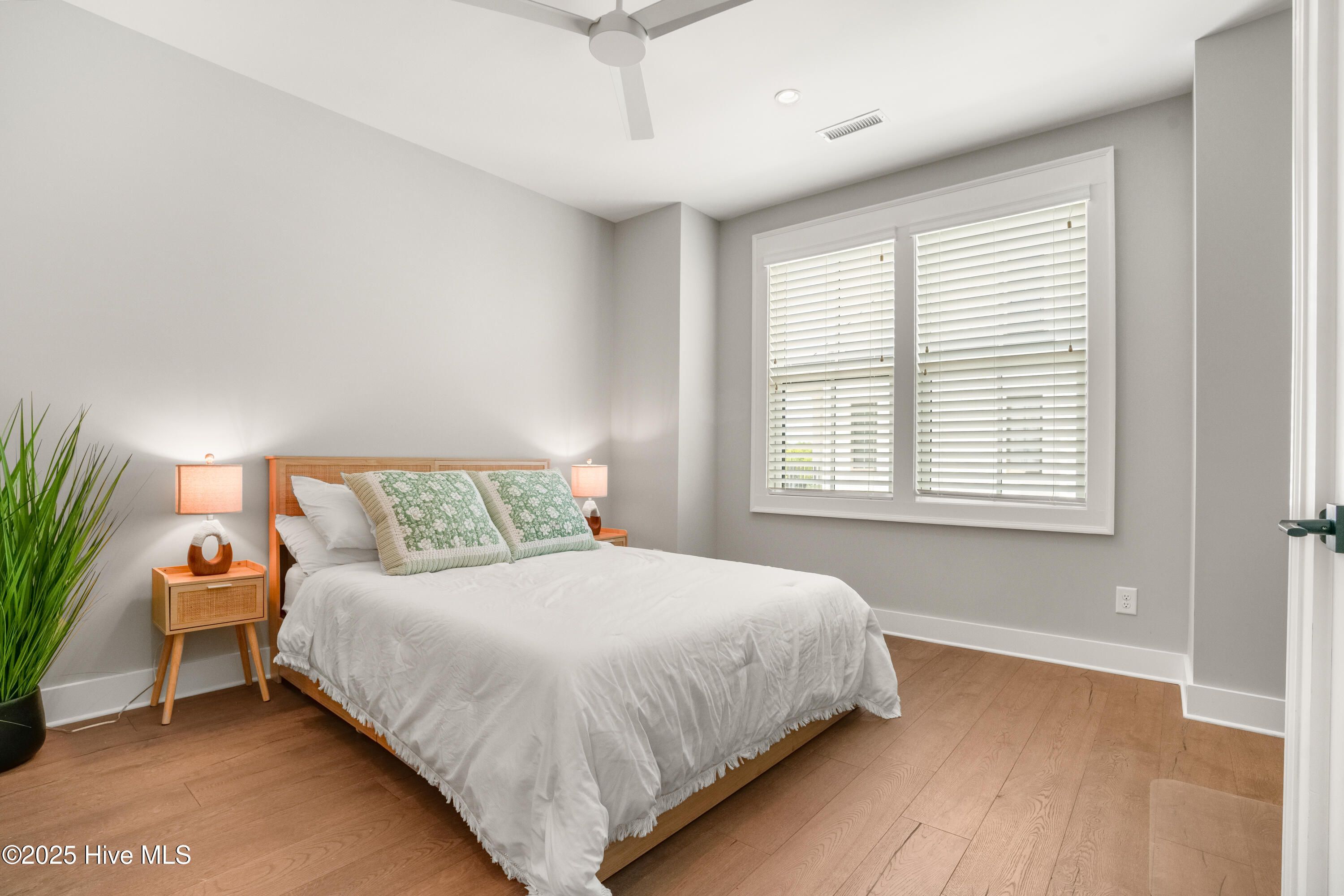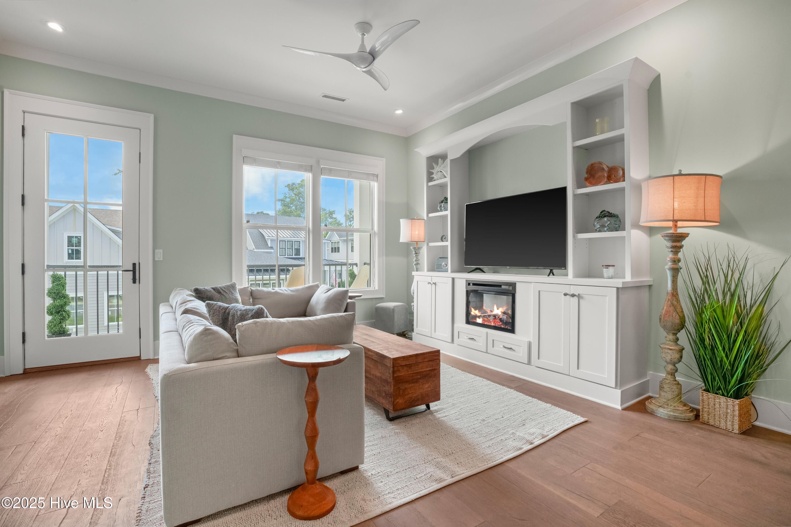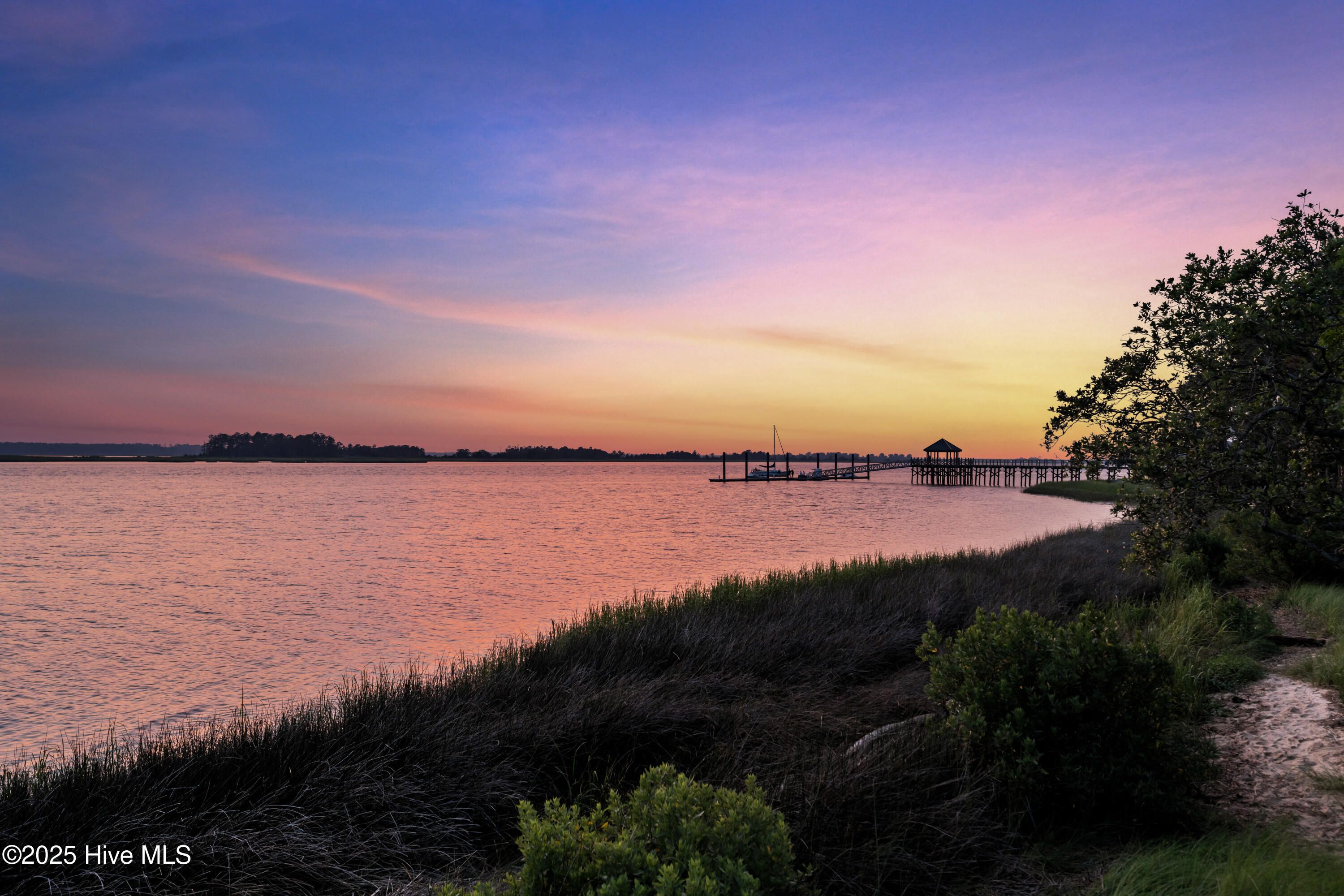Enjoy beautiful water views and stunning sunsets from every floor. This home boast one of the best water views of all the townhomes within Marina Village at Riverlights. As you enter the main living area, you will love the inviting open space, hardwood floors, and natural light. The kitchen features marble countertops and shaker style cabinets accenting the stainless steel Kitchen Aid appliances. The dining area offers a gathering area w/expandable table with seating for 8 plus additional counter seating. The living room offers a custom built in with electric fireplace. Wake up and enjoy the stunning beauty of the Cape Fear River relaxing in bed from the primary suite. The secondary bedroom is just as inviting, bright and roomy w/ensuite. The third room offers beautiful water views as well as a Murphy bed to offer the flexibility of a bedroom or an office. Walk out side and your steps from a boardwalk along the river, day dock and the spacious green to enjoy the many activities offered in this space such as farmers markets and concerts. Marina village also offers restaurants such as Smoke on the Water, Girls w/Dough Pizza, and The Getaway Cafe. In addition to great restaurants enjoy shopping at the boutique, get your nails done at the nail spa, or practice your golf game year round at Club Golf, all within steps of your new home. The Amenities of Riverlights offers The Lake house and Pool, gym, playground, walking trails and Boat Builders Park where you can launch your kayak and enjoy the beautiful lake surrounded by walking trail. Additional amenities and pool opening at The River house. This unit comes furnished including 1st floor outdoor rockers (2), 1st floor Murphy bed, 2nd Floor counter seats(2) Kitchen Table (1) Kitchen table chairs(6), living room sofa (1) pedestal end tables,(2) living room rug (1), 3rd floor outdoor furniture, primary and secondary bedroom Beds (2) end tables (4) and Lamps (4).