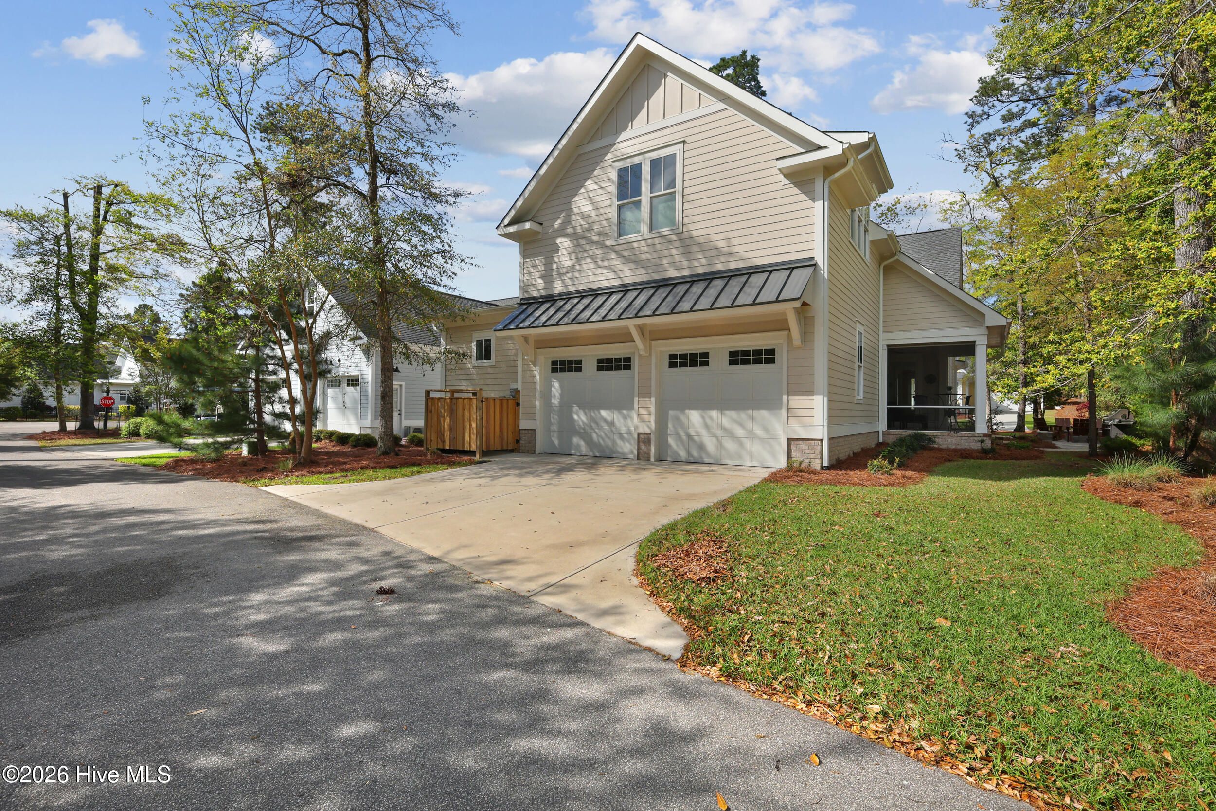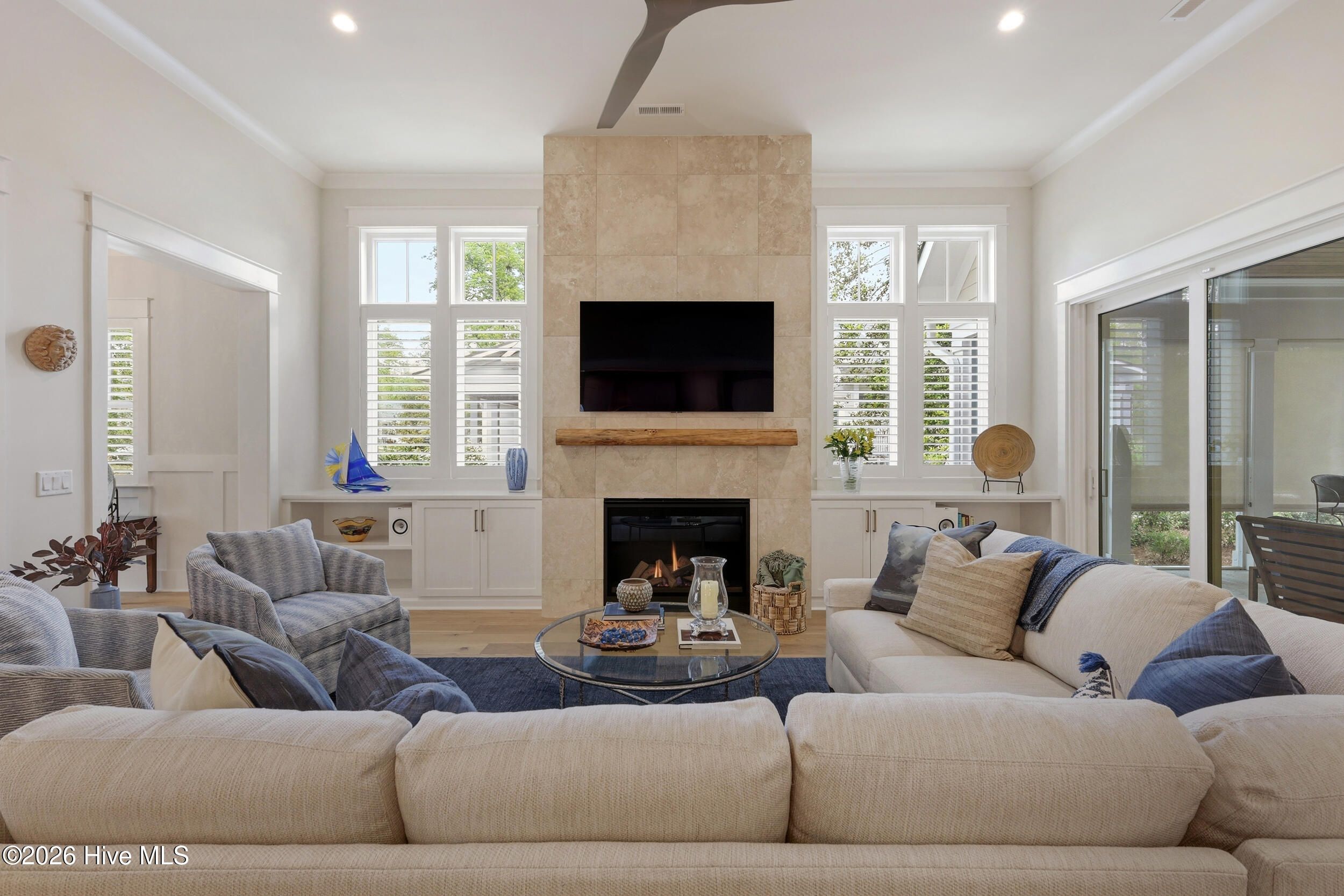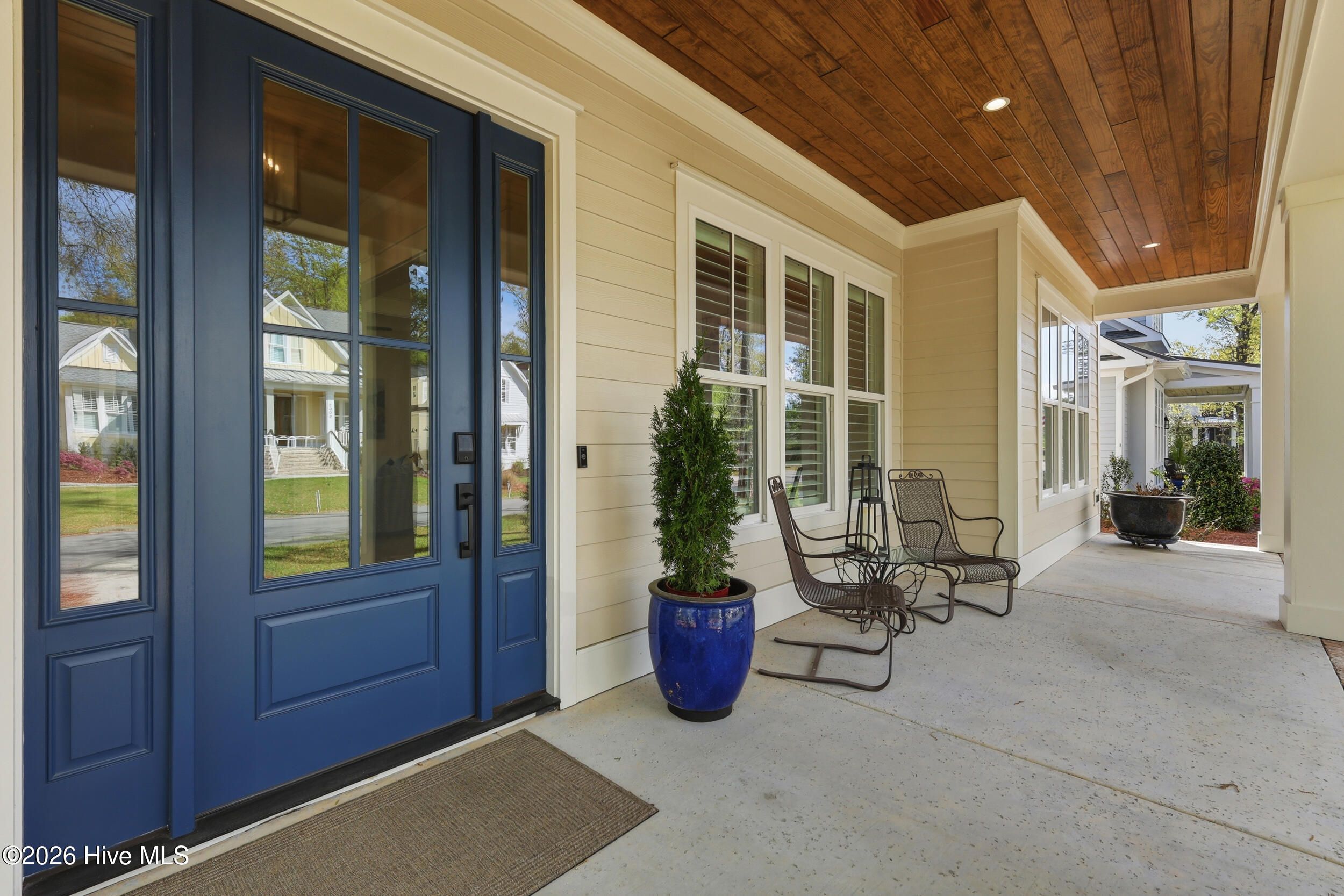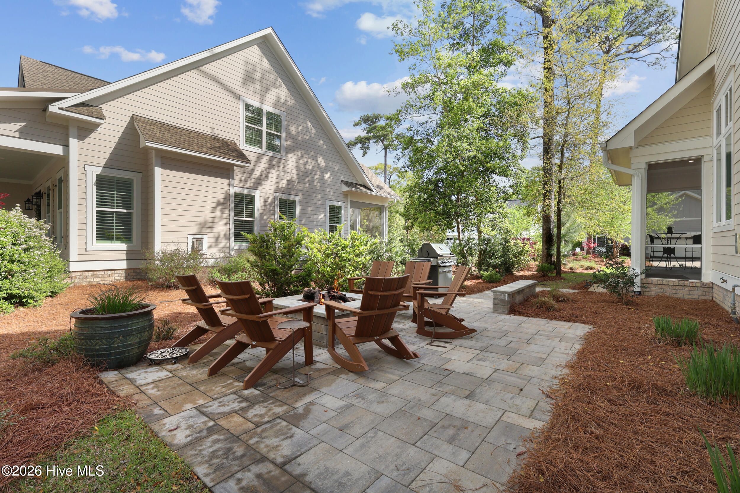 Discover refined living in this stunning home located in the gated community of River Bluffs. Designed with care & attention to detail, the residence offers a balance of elegance, comfort, & everyday livability. Framed by mature trees & thoughtful landscaping, the charming craftsman facade welcomes you with a rocking chair front porch, warm wood-paneled ceiling, and blue front door. Stepping into the home, the foyer with its high ceilings & soft, neutral palette amplifies the sense of openness & natural light. The open floor plan continues this feeling, seamlessly connecting the living room, kitchen, and formal dining room for easy flow. The living area is anchored by a cozy seating arrangement centered around a stunning 12-ft. tall Travertine gas-log fireplace with custom, local Driftwood mantle, creating a striking focal point. Telescoping sliding glass doors extend the space outward to a screened-in porch, enhancing indoor-outdoor living. Just beyond, the kitchen is both functional & inviting, featuring a large navy-blue island with bar seating, pendant lighting, & clear sightlines into the living area. Designed to impress even the most discerning home chef, the kitchen blends high-end finishes with thoughtful functionality. Premium Thermador appliances take center stage, including a 36'' range paired with a vented hood, while a SS farmhouse sink and warm brass hardware add both style & sophistication. Custom cabinetry is elevated with tailored drawer inserts for spices and utensils, creating an organized workspace. Just beyond, a dry bar with wine refrigerator & glass-front cabinetry, complete with interior lighting, adds an extra layer of refinement. A spacious walk-in pantry with wood shelving & dedicated appliance shelf ensures everything has its place. RO water filtration system at both the kitchen sink and refrigerator offers added peace of mind. The 1st floor primary suite offers a private retreat, designed for comfort & convenience. Motorized shades frame the windows, while a seating area creates the perfect space to unwind. Dual closets, each outfitted with custom shelving and drawer systems, provide exceptional storage (with one offering direct access to the laundry room for added ease of living!) The en-suite bath is equally refined, featuring a double vanity with built-in makeup counter & discreet in-drawer electrical outlets for hidden hair tool use. A zero-entry, oversized shower with striking waterfall tile detail completes the space, delivering that spa-like experience. An additional bedroom downstairs, currently being used as an office, offers convenient access to a full bathroom, ideal for guests or flexible living. Upstairs, two additional bedrooms share a full bath, offering a comfortable & functional layout. One of the bedrooms was intentionally designed to be oversized, providing exceptional versatility and currently serves as a media and fitness space. Also on this level, a huge walk-in attic with spray-foam insulation offers impressive, temperature-controlled storage while adding an extra layer of structural efficiency to the home. Outdoors, the expansive screened-in porch offers space for relaxing, complete with shades for added privacy & sun protection. A paver patio along the side yard offers a built-in gas-log fire pit area for lounging, while the nearby grilling area includes a natural gas stub for easy connection. Even the practical spaces shine: the laundry room offers cabinetry, a utility sink, and quartz counters. The 2-bay, 2-car garage offers a storage closet, epoxy coated floors, 220-volt outlet for EV charging & an outlet to be used in conjunction with a separate generator system. Thoughtful storage options throughout including a drop zone off the garage entry and a large hall closets. Throughout the residence, you'll find high-end flooring, custom plantation shutter window treatments, stylish tile options in all bathrooms, heavy trim & molding upgrades, and dimmer switches in all rooms.
