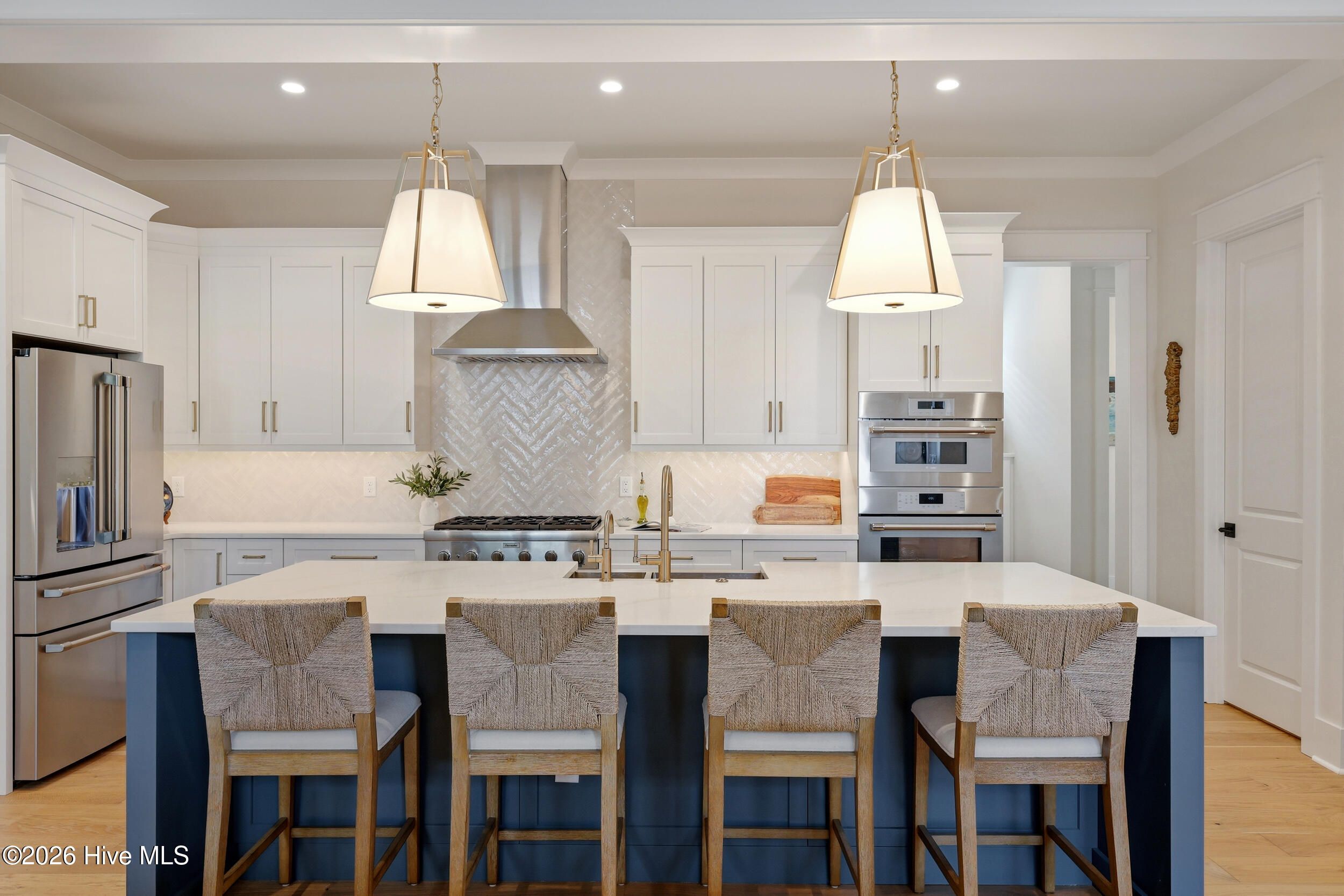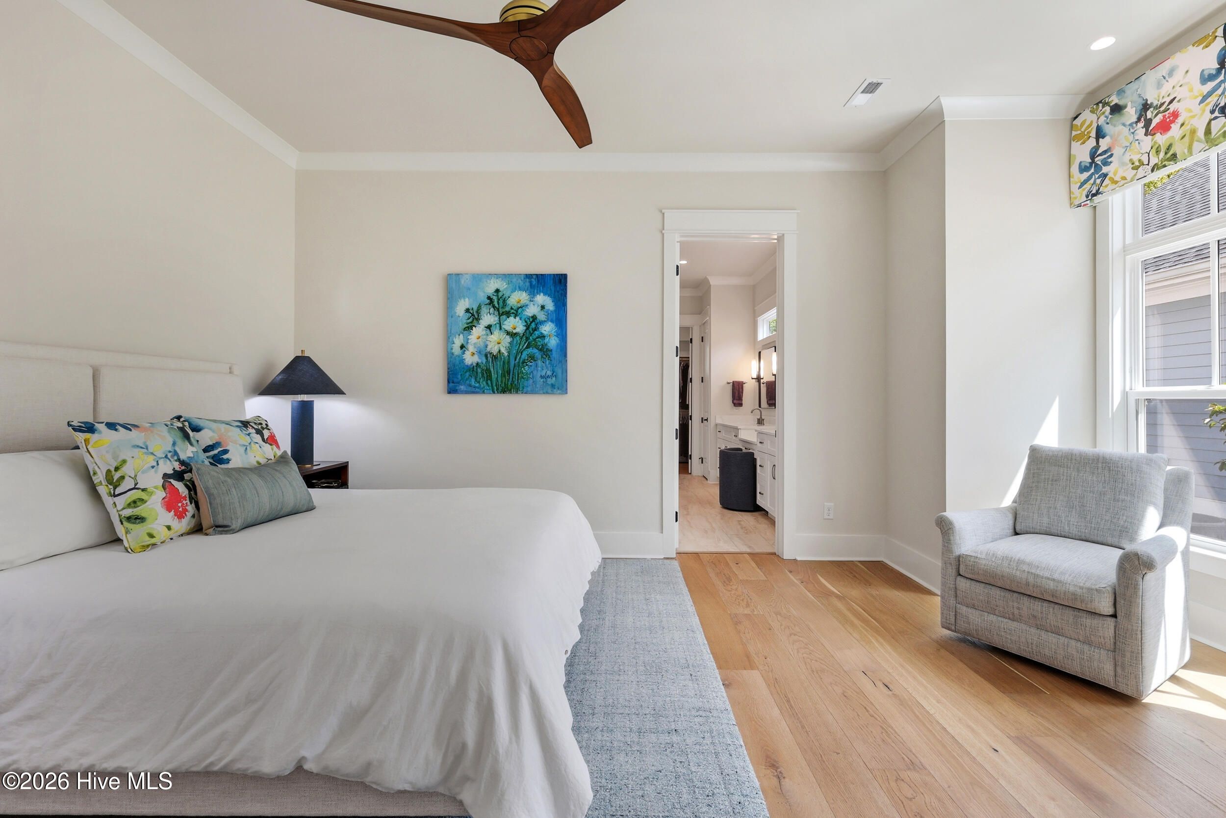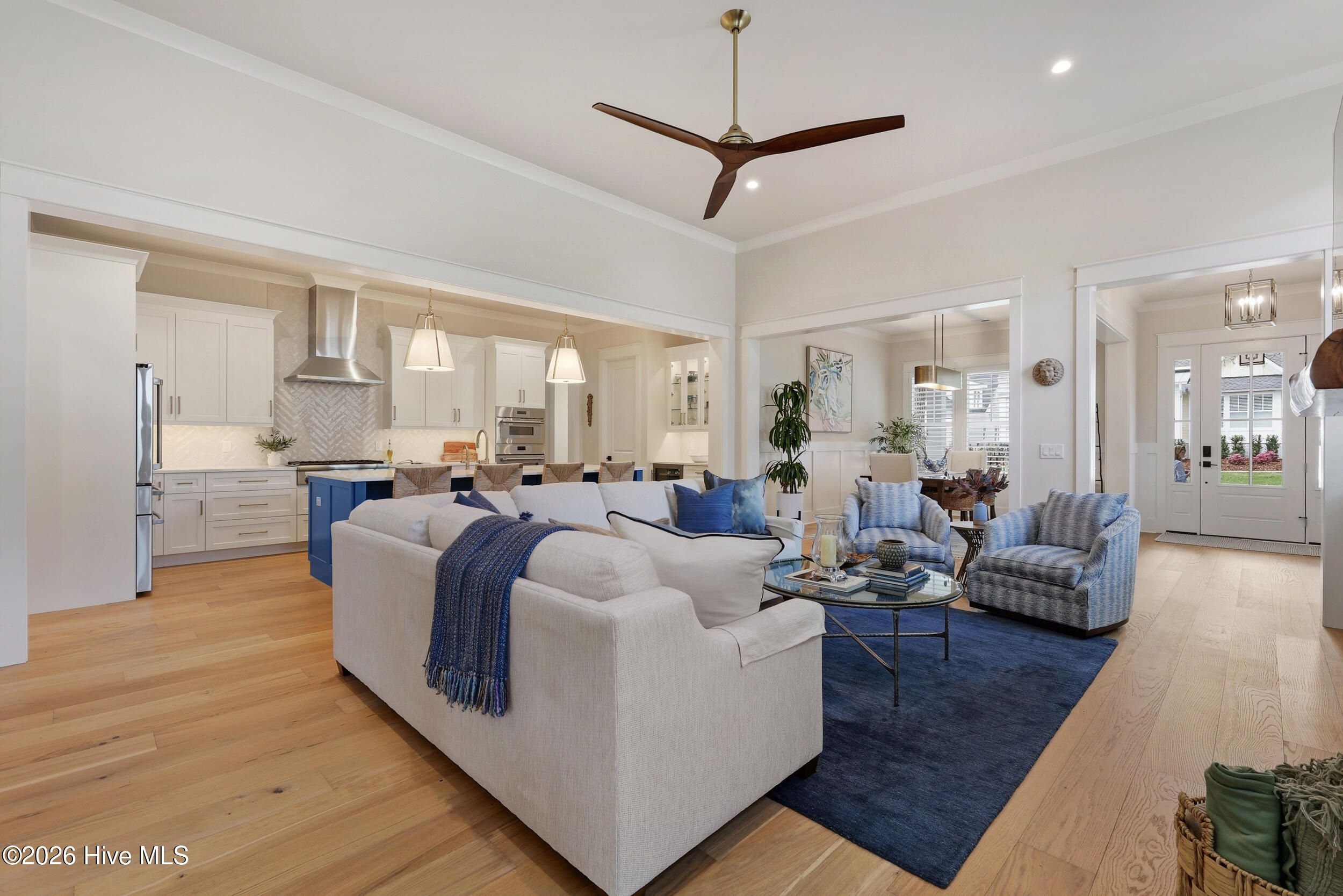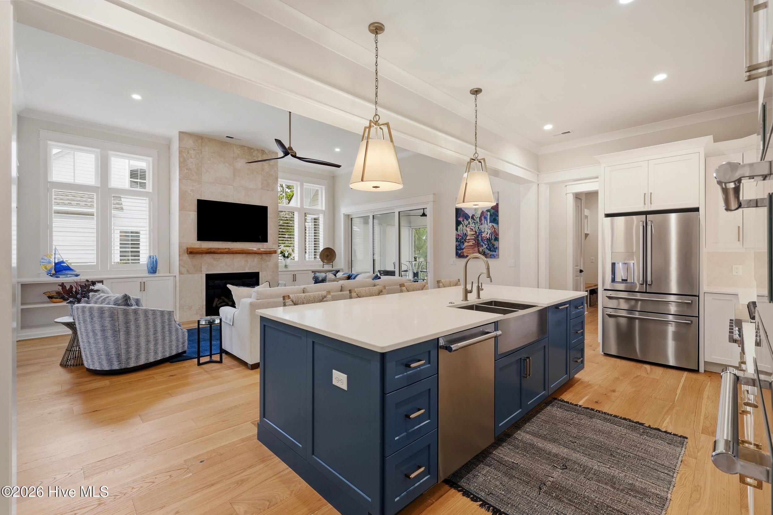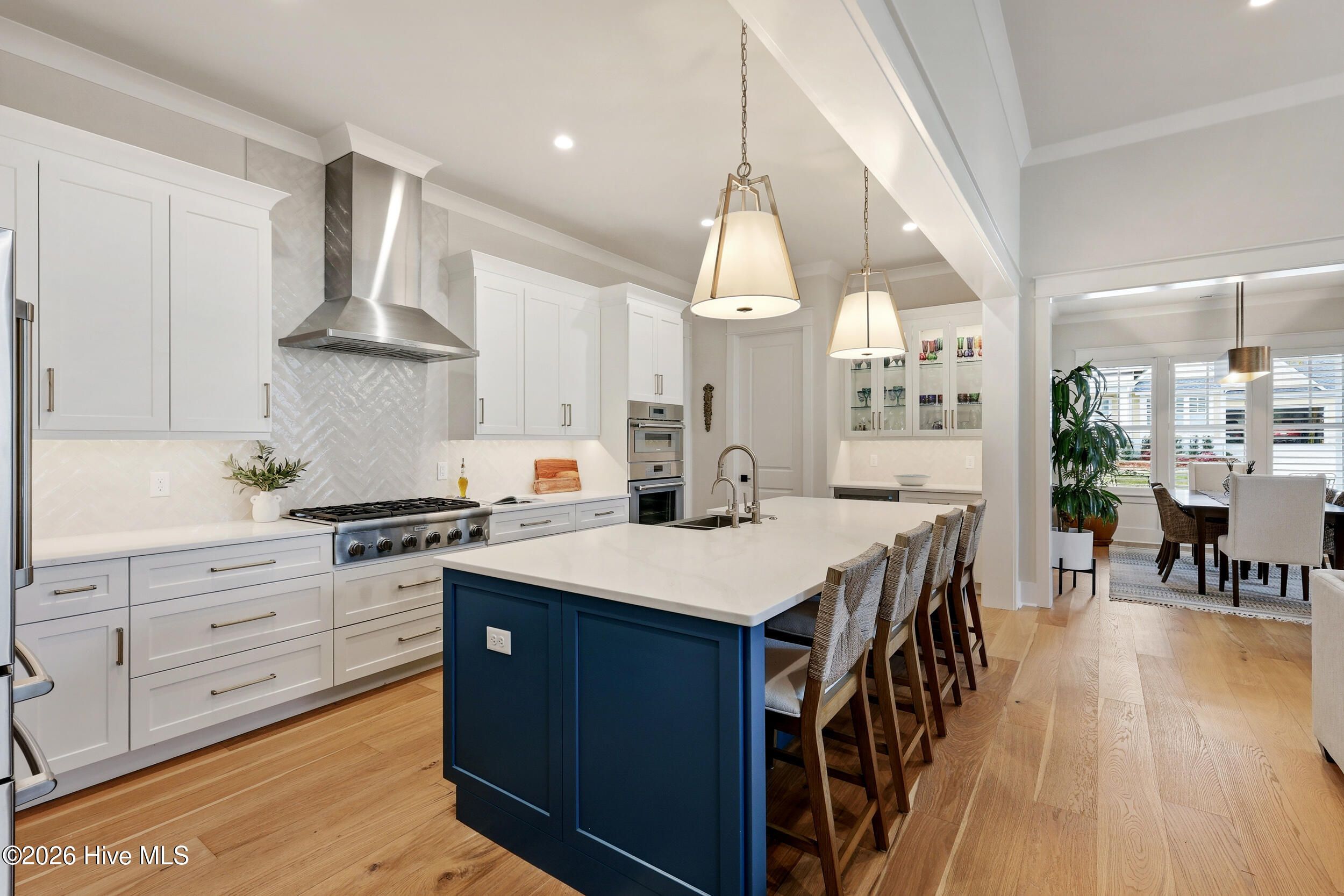 Discover refined living in this stunning home located in the gated community of River Bluffs. Designed with care & attention to detail, the residence offers a balance of elegance, comfort, & everyday livability. Framed by mature trees & thoughtful landscaping, the charming craftsman facade welcomes you with a rocking chair front porch, warm wood-paneled ceiling, and blue front door. Stepping into the home, the foyer with its high ceilings & soft, neutral palette amplifies the sense of openness & natural light. The open floor plan continues this feeling, seamlessly connecting the living room, kitchen, and formal dining room for easy flow. The living area is anchored by a cozy seating arrangement centered around a stunning 12-ft. tall Travertine gas-log fireplace with custom, local Driftwood mantle, creating a striking focal point. Telescoping sliding glass doors extend the space outward to a screened-in porch, enhancing indoor-outdoor living. Just beyond, the kitchen is both functional & inviting, featuring a large navy-blue island with bar seating, pendant lighting, & clear sightlines into the living area. Designed to impress even the most discerning home chef, the kitchen blends high-end finishes with thoughtful functionality. Premium Thermador appliances take center stage, including a 36'' range paired with a vented hood, while a SS farmhouse sink and warm brass hardware add both style & sophistication. Custom cabinetry is elevated with tailored drawer inserts for spices and utensils, creating an organized workspace. Just beyond, a dry bar with wine refrigerator & glass-front cabinetry, complete with interior lighting, adds an extra layer of refinement. A spacious walk-in pantry with wood shelving & dedicated appliance shelf ensures everything has its place. RO water filtration system at both the kitchen sink and refrigerator offers added peace of mind. The 1st floor primary suite offers a private retreat, designed for comfort & convenience. Motorized shades frame the windows, while a seating area creates the perfect space to unwind. Dual closets, each outfitted with custom shelving and drawer systems, provide exceptional storage (with one offering direct access to the laundry room for added ease of living!) The en-suite bath is equally refined, featuring a double vanity with built-in makeup counter & discreet in-drawer electrical outlets for hidden hair tool use. A zero-entry, oversized shower with striking waterfall tile detail completes the space, delivering that spa-like experience. An additional bedroom downstairs, currently being used as an office, offers convenient access to a full bathroom, ideal for guests or flexible living. Upstairs, two additional bedrooms share a full bath, offering a comfortable & functional layout. One of the bedrooms was intentionally designed to be oversized, providing exceptional versatility and currently serves as a media and fitness space. Also on this level, a huge walk-in attic with spray-foam insulation offers impressive, temperature-controlled storage while adding an extra layer of structural efficiency to the home. Outdoors, the expansive screened-in porch offers space for relaxing, complete with shades for added privacy & sun protection. A paver patio along the side yard offers a built-in gas-log fire pit area for lounging, while the nearby grilling area includes a natural gas stub for easy connection. Even the practical spaces shine: the laundry room offers cabinetry, a utility sink, and quartz counters. The 2-bay, 2-car garage offers a storage closet, epoxy coated floors, 220-volt outlet for EV charging & an outlet to be used in conjunction with a separate generator system. Thoughtful storage options throughout including a drop zone off the garage entry and a large hall closets. Throughout the residence, you'll find high-end flooring, custom plantation shutter window treatments, stylish tile options in all bathrooms, heavy trim & molding upgrades, and dimmer switches in all rooms.