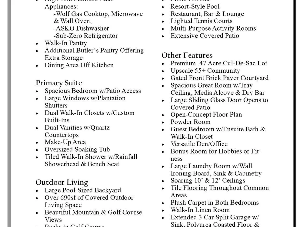 The following amenities are available to The Preserve at SaddleBrooke - Tucson, AZ residents: