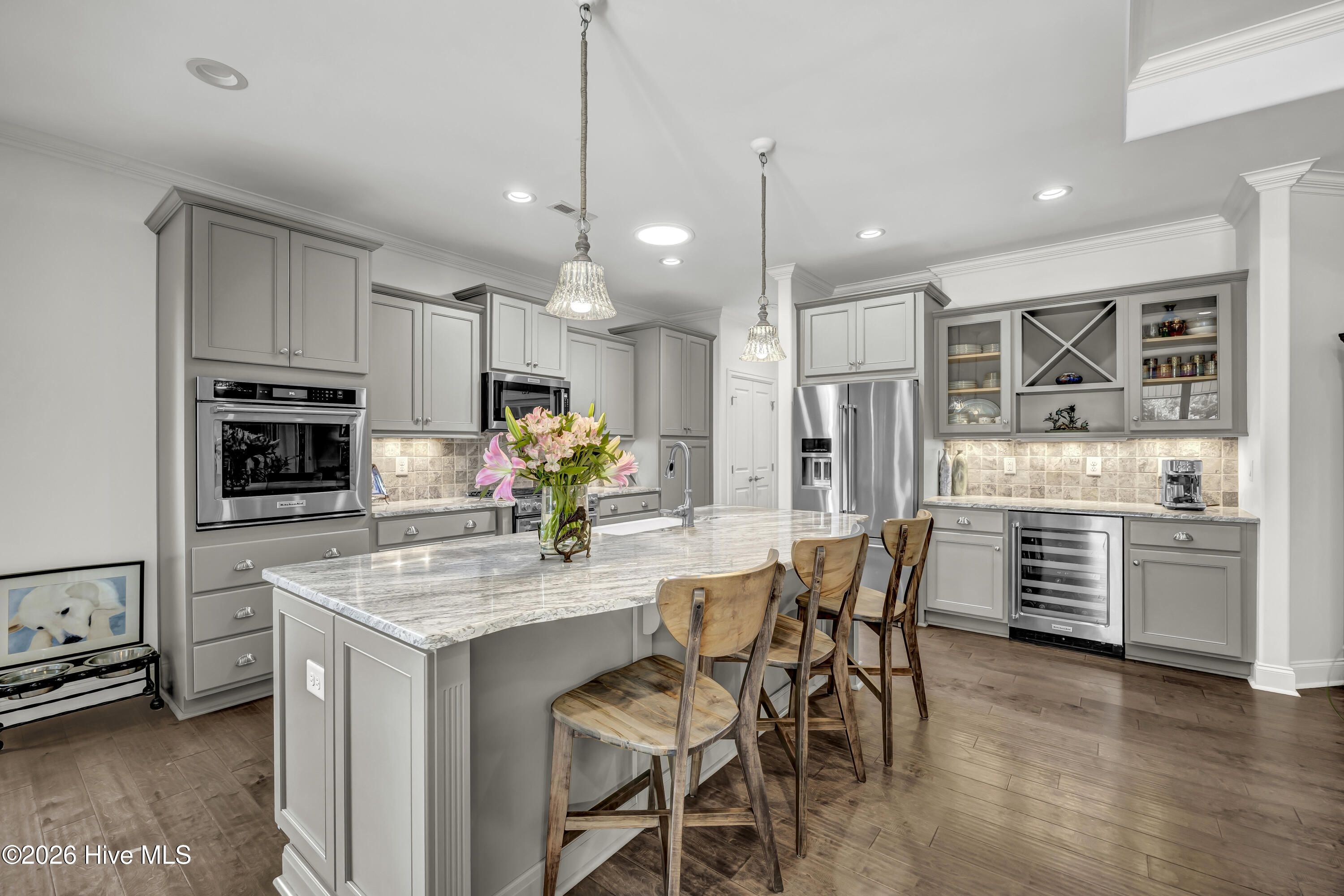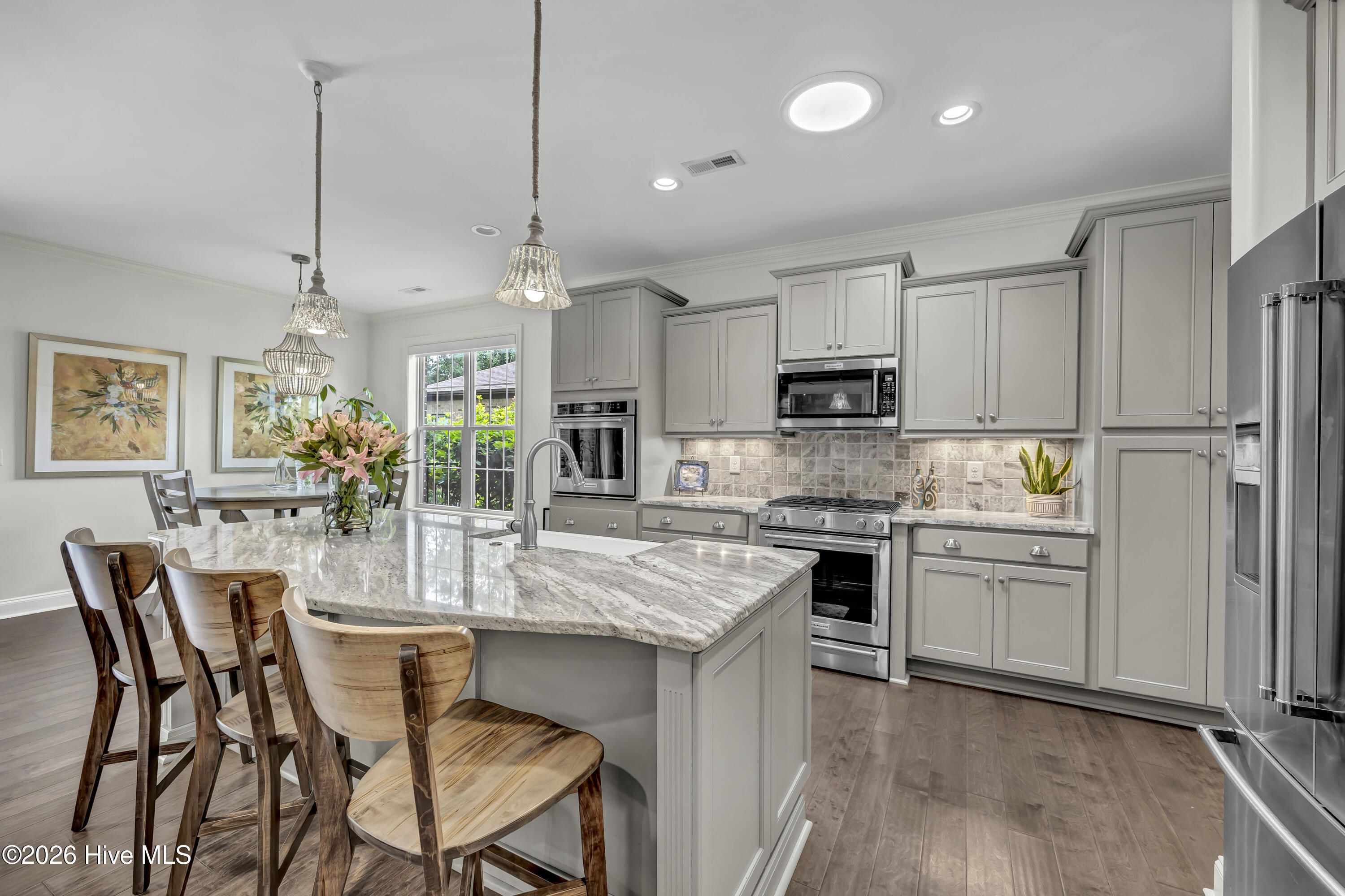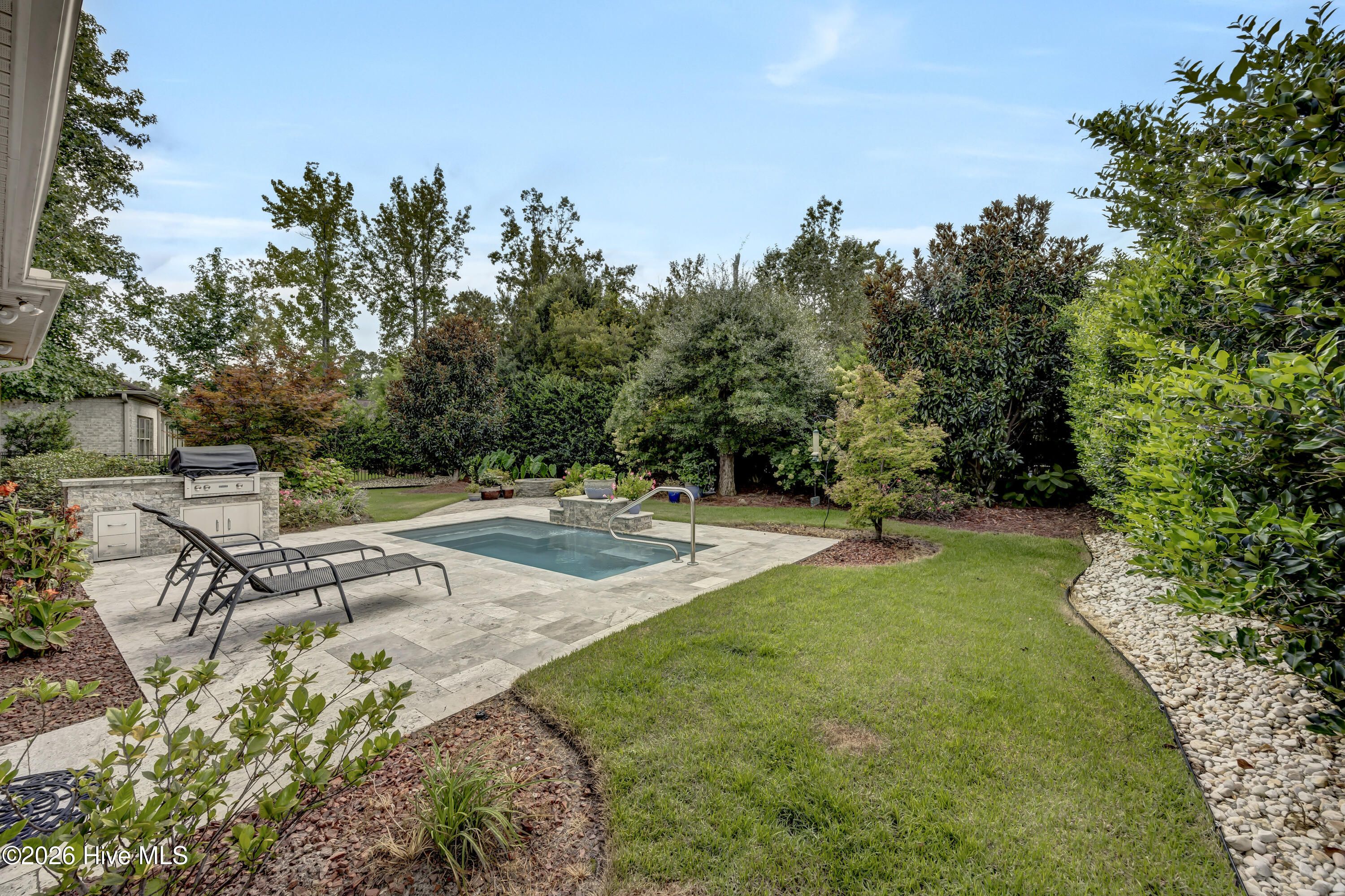 Welcome home to the River Bluffs community just minutes from downtown Wilmington, local beaches, and shopping! Fall in love with this spacious open floor plan that offers mainly one story living with 3 bedrooms, 3 bathrooms, and a dedicated home office. The gourmet kitchen features granite countertops, a natural gas cooktop, wine fridge and island counter seating. The finishes include wood floors, tiled bathrooms, granite vanities and a newly carpeted upstairs bedroom. Get cozy in the living room next to the gas fireplace surrounded by custom built-in shelving that opens to a large lanai, complete with an outdoor kitchen and drink cooler. Enjoy your own outdoor oasis in the fenced, private backyard bordered by mature landscaping, an in-ground saltwater pool with waterfall, a built-in gas grill with rotisserie and a fire pit to enjoy any season. Additional features include an oversized 2 car garage with workstation, a temperature-controlled storage closet (not included in the square footage), whole-house generator, solar attic fan, large Solatube for natural light, freshly painted first floor and new window treatments throughout. All this comes with exceptional neighborhood amenities, including a marina and private riverwalk, outdoor community pool, tennis and pickleball courts, fitness center, on-site restaurant, private post office, valet trash, exterior lawn maintenance and more. Schedule your tour today.