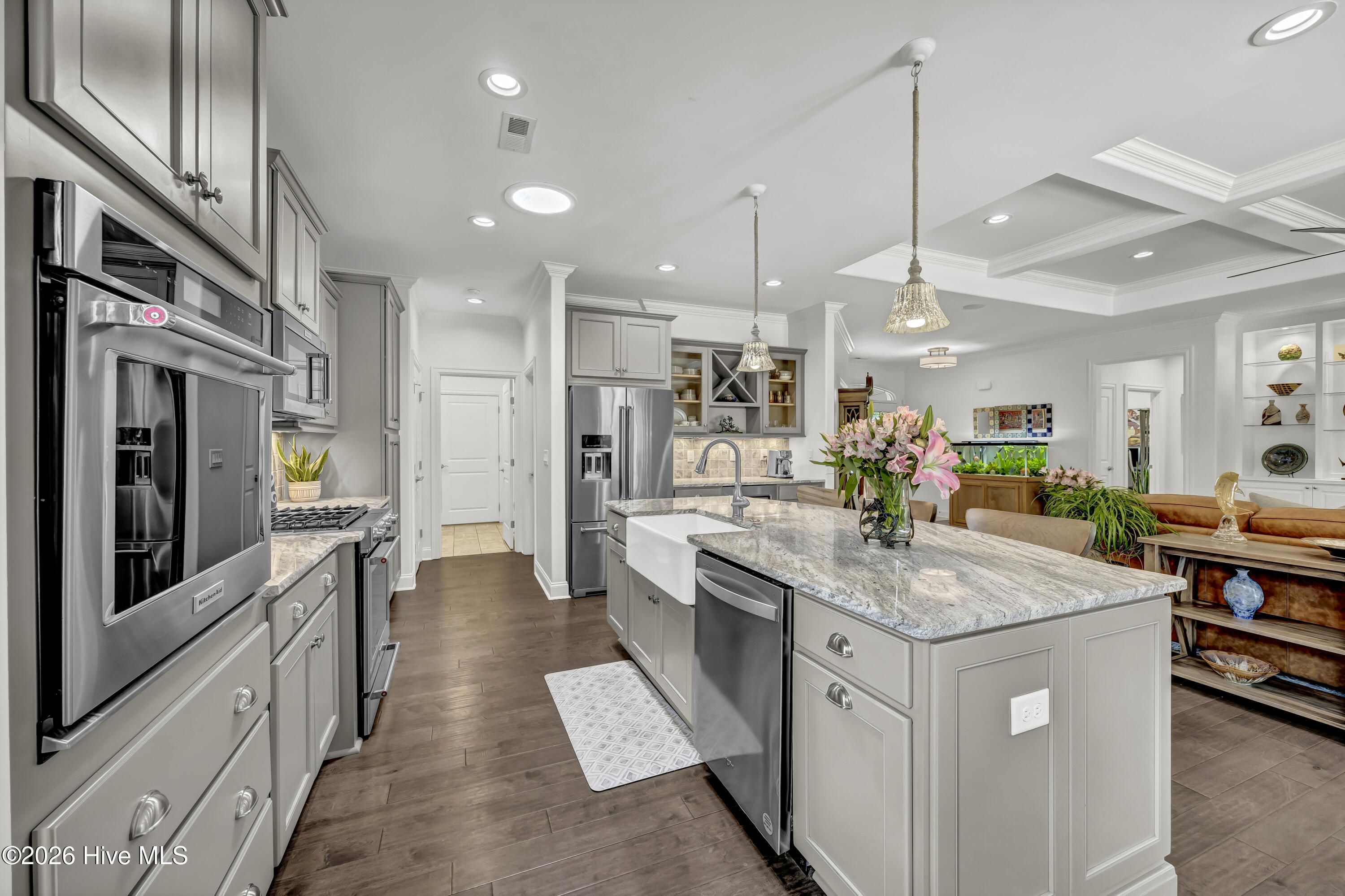 - Gas Cooktop, Electric Oven, Down Draft, Built-In Microwave, Refrigerator, Disposal, Dishwasher, Convection Oven, Gas Water Heater, Tankless Water Heater