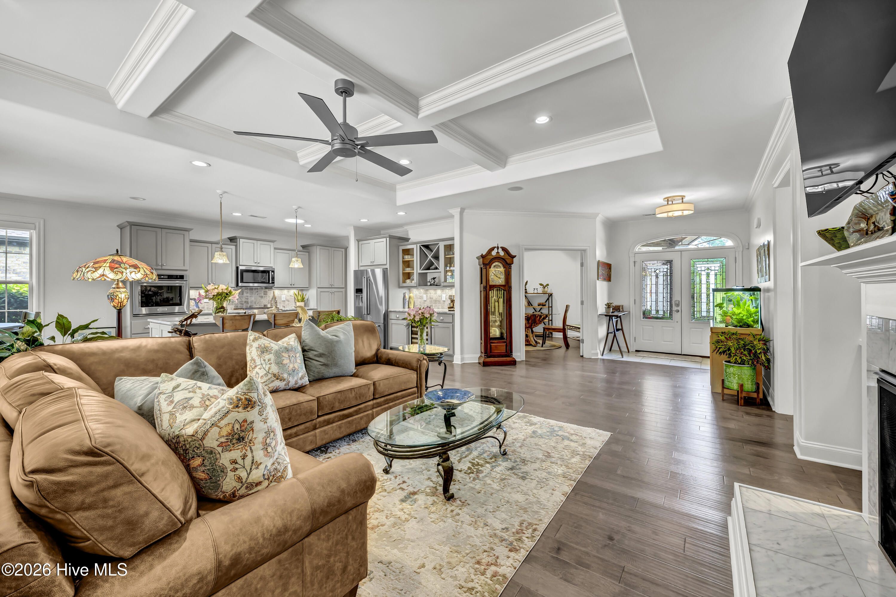 - Master Downstairs, Walk-In Closet(s), Tray Ceiling(s), High Ceilings, Entrance Foyer, Mud Room, Solid Surface Counters, Generator, Kitchen Island, Ceiling Fan(s), Pantry, Walk-In Shower, Blinds