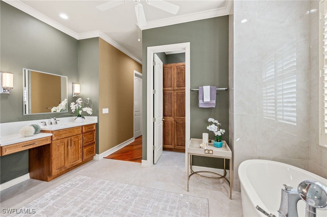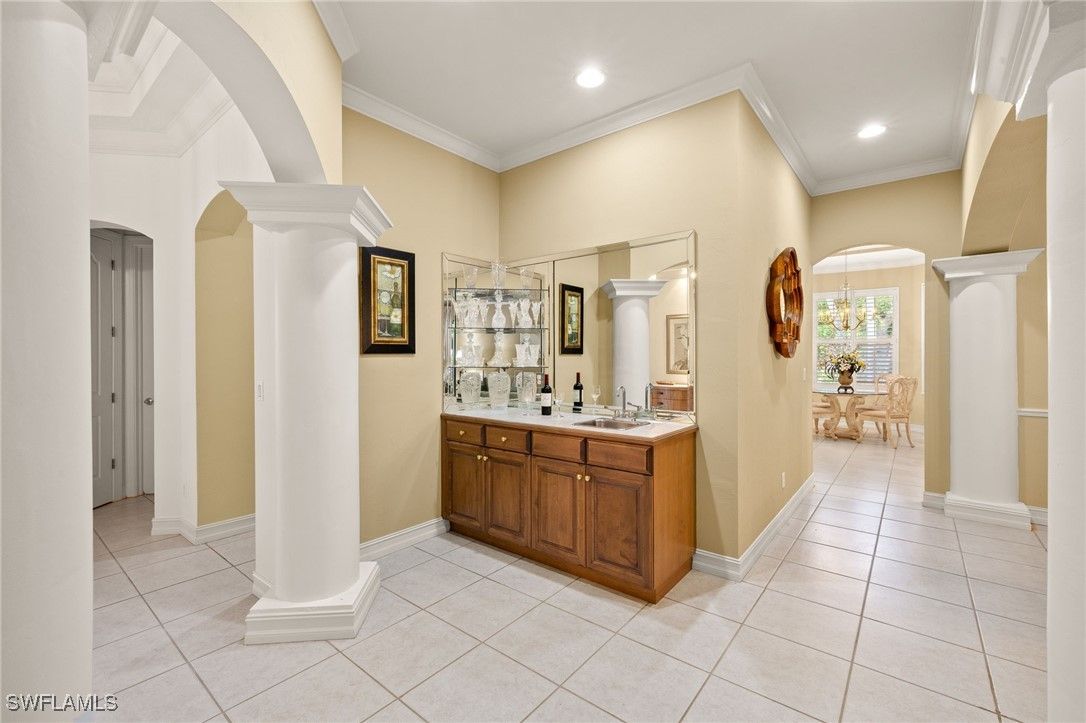Welcome into this timeless, exquisitely crafted custom estate home on the premium half acre setting that promises complete privacy. Located in the exclusive Heron Point neighborhood of Pelican Landing. Luxurious landscaping and well designed gardens surrounding the circular driveway contribute to the overall aesthetic appeal and create a welcoming ambiance. The beveled glass front door with its prism like effect allows for natural light. A spacious entryway designed to welcome guests provides a visual introduction to the home while drawing your eye upwards to the architecturally detailed coffered ceiling with levels of crown molding that is carried through-out, establishing the style and personality of the home. The four sets of sliding glass doors opening to the lanai create an inviting atmosphere for seamless entertaining blending the indoor and outdoor spaces of the home. The alluring lanai and inviting pool are designed to enhance your outdoor living experience focusing on casual living, dining and entertaining possibilities. Additional showcased features include a wet bar, a custom kitchen with stainless appliances, gleaming granite countertops, a chef’s island, built in desk and a walk-in pantry. The primary bedroom suite with double doors, plantation shutters, luxury floors and beautifully re-imagined bathroom promotes relaxation. The two additional spacious en-suite bedrooms and baths with luxury finishes are ideal for guests or extended family. A three car garage, an air conditioned Flex space is perfect to use as an office, hobby/craft room or storage. Reconnect and relax and start enjoying a day on Pelican Landing's crown jewel, a 34 acre, sugar white sand, private island beach park in the Gulf of America. Additional amenities include the canoe and kayak park & sailing center that include complimentary vessels, bocce, butterfly garden, fishing, tennis center with 12 Har-Tru lighted courts and full time Pro, a pickle-ball program, a community center that offers a myriad of activities complemented by the wellness center with 4200 SF of fitness & aerobics. Schedule your private showing today and discover the perfect place to call home.