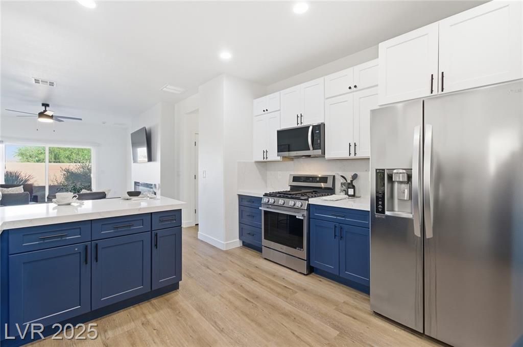 Welcome to this amazing, newly remodeled home in the fabulous community of Sun City Aliante. This adorable home offers and experience of a rich lifestyle in activity and social opportunities! Home features from brand new A/C unit, new tankless water heater, all new flooring, new cabinets and much more! A large great room and open floor plan and dine-in kitchen, which includes quartz countertops, window blinds throughout. The Primary offers a nice walk in closet and separate from 2ry bedroom. Amazing amenities which include club house, tennis, pickeball, swimming, sauna, spa, exercise equipment, dance studio, meeting room, crafts, social hall, library & billiard room! Close to freeways, public golf, shopping, dining and Aliante Hotel & Casino!