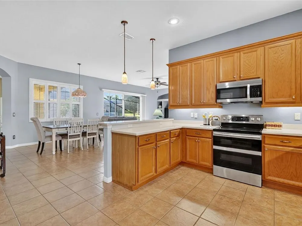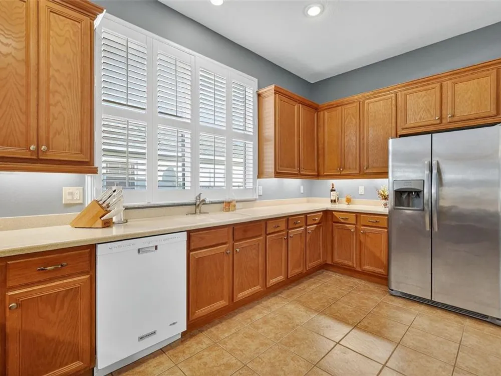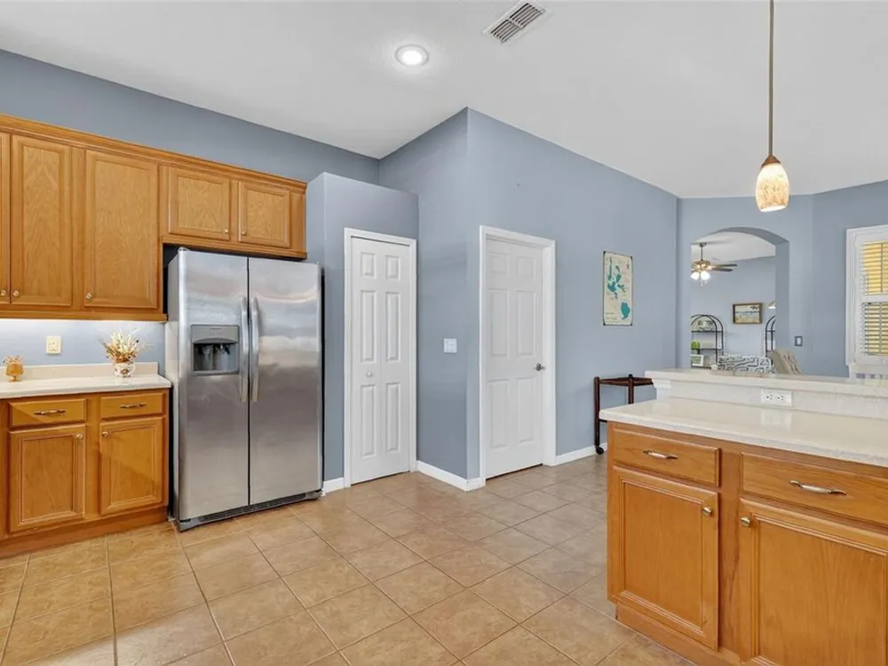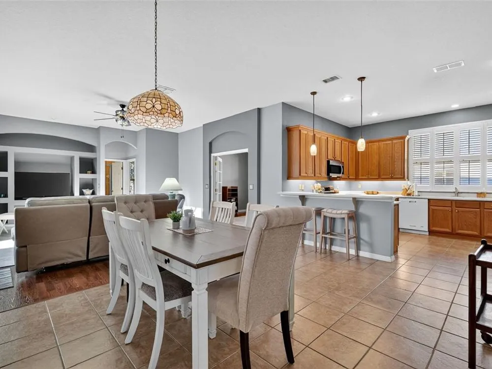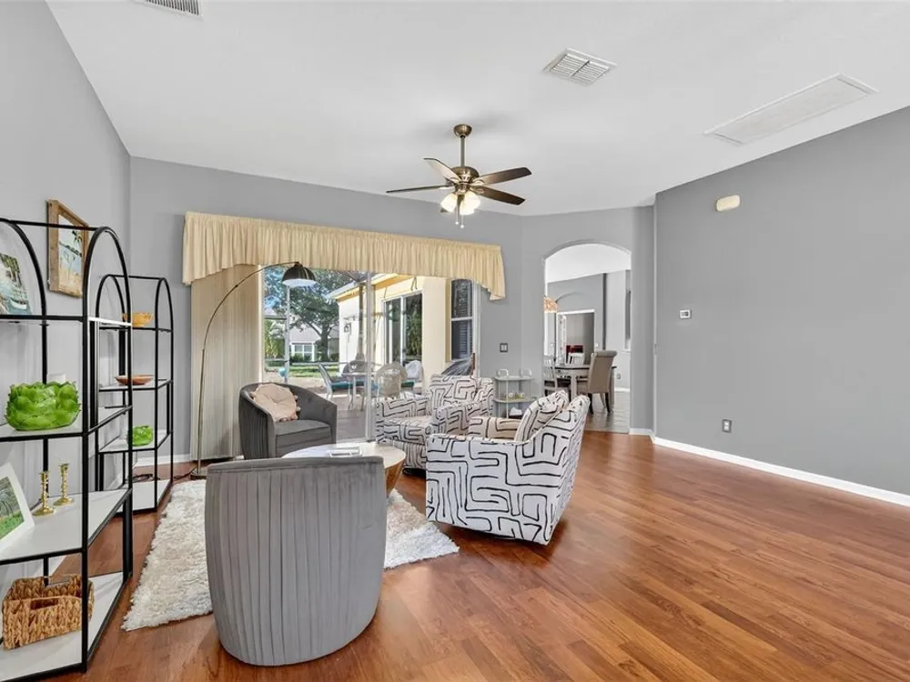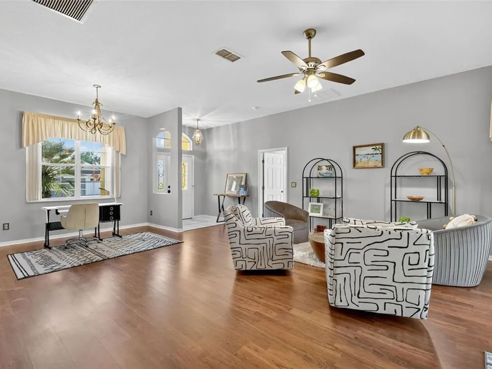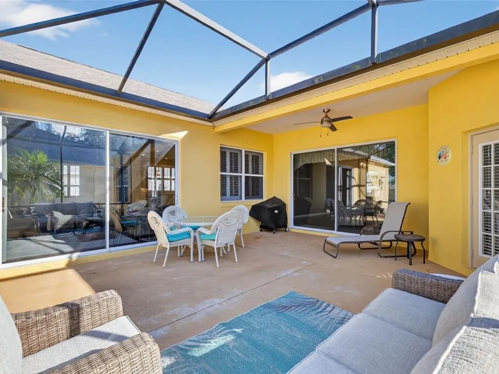 Welcome to this beautifully maintained Bird of Paradise model located in the desirable Ashland Village of Plantation at Leesburg. This spacious 2-bedroom, 2-bathroom home plus private study/den offers an impressive 2,399 square feet of comfortable living space and is being sold TURNKEY (completely furnished with newer furniture), allowing you to move right in and start enjoying the Florida lifestyle. Designed for both elegance and ease, the open floor plan features high ceilings, abundant natural light, and formal living and dining rooms that flow seamlessly into the heart of the home. The kitchen is a true highlight, complete with a window above the sink, extensive counter space, plentiful cabinetry, a large pantry, and upgraded pendant lighting above the breakfast bar. Enjoy the Florida lifestyle year-round from the covered and screened 20x19 lanai, overlooking a serene green space. The sought-after 2-bay plus golf cart garage (25x21) provides ample parking and storage. The primary suite is bright and spacious, offering a walk-in closet and an en suite bath with a double vanity, soaking tub, and large walk-in shower. The guest suite, thoughtfully designed for privacy, features its own full bath with a walk-in shower and upgraded lighting. Throughout the home, you’ll find white plantation shutters and high-quality laminate flooring, no carpet anywhere. Additional highlights include a large indoor laundry room with a utility sink and storage cabinets, HVAC replaced in 2020, updated irrigation (2023), and an updated roof (2024) for peace of mind. Plantation at Leesburg is a scenic, guard-gated 55+ community offering resort-style living with two 18-hole championship golf courses, a restaurant, three activity centers, three heated pools, fitness centers, tennis and pickleball courts, walking trails, and optional RV and boat storage. Experience comfort, style, and active living, all in one of Central Florida’s most sought-after retirement communities.
