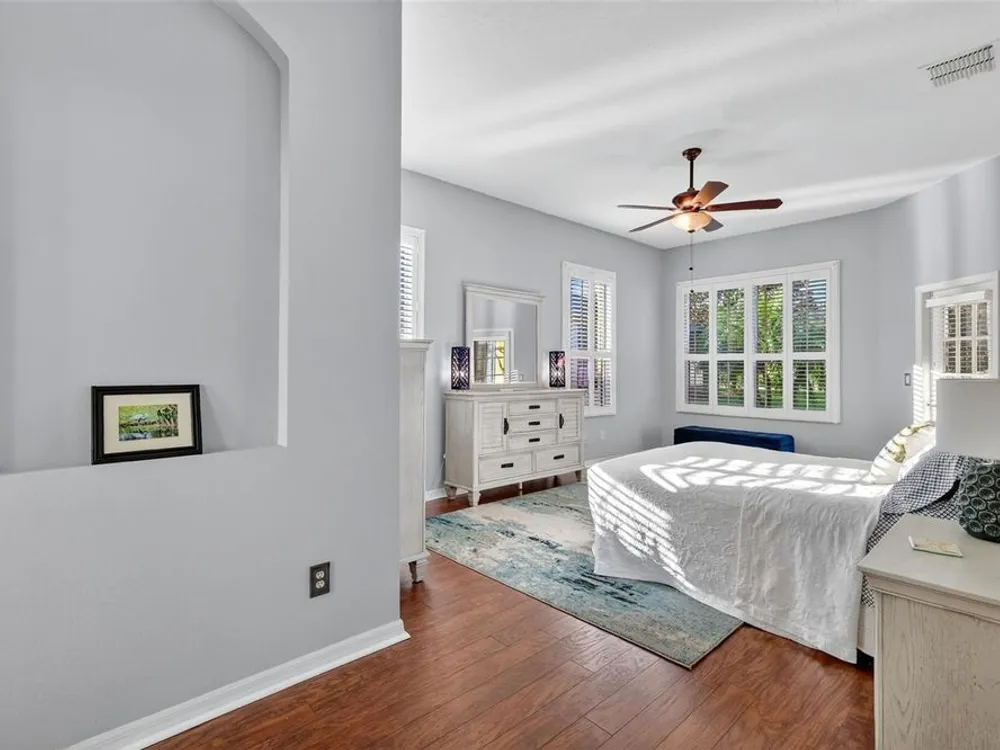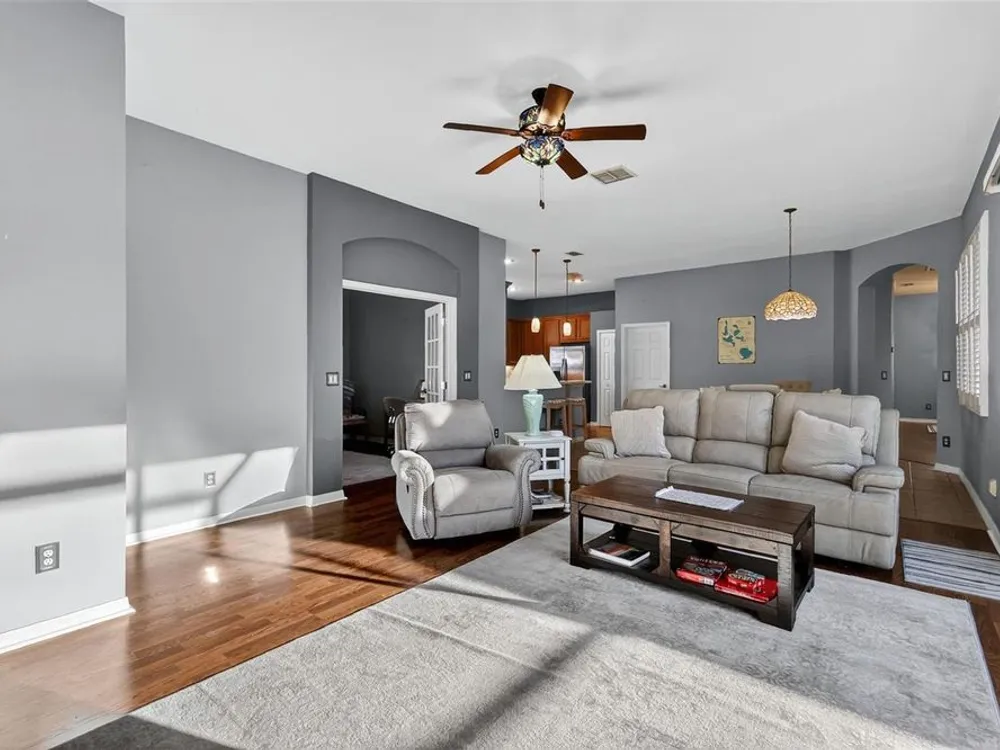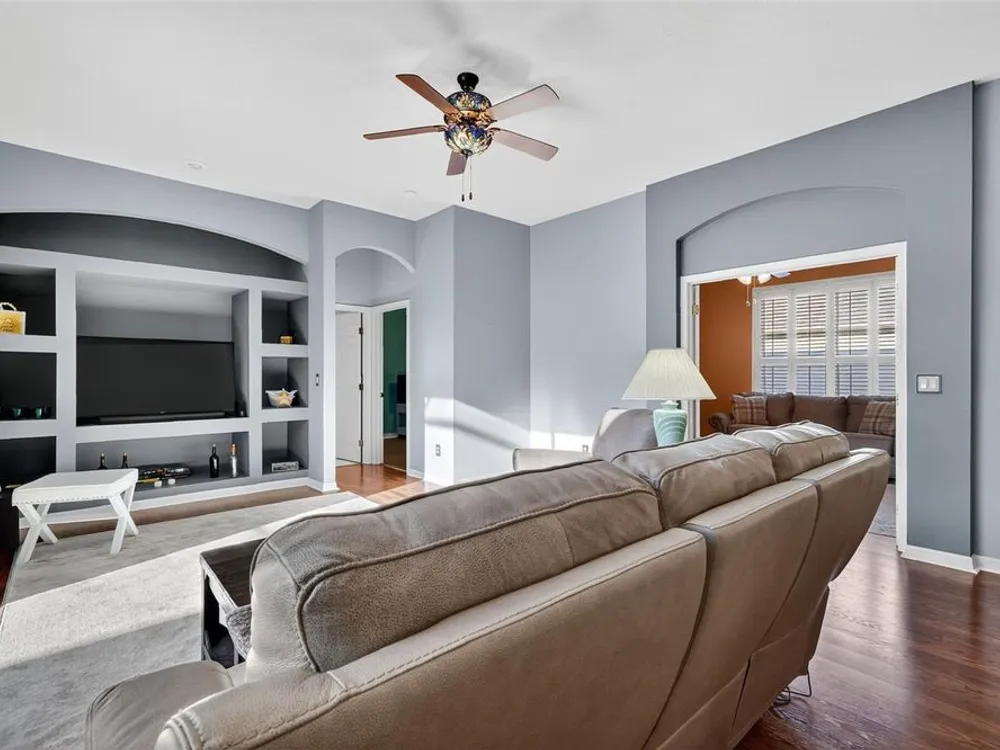 - Built-in Features, Ceiling Fan(s), High Ceilings, Living/Dining Room, Open Floorplan, Solid Surface Counters, Solid-Wood Cabinets, Split Bedrooms, Walk-In Closet(s)