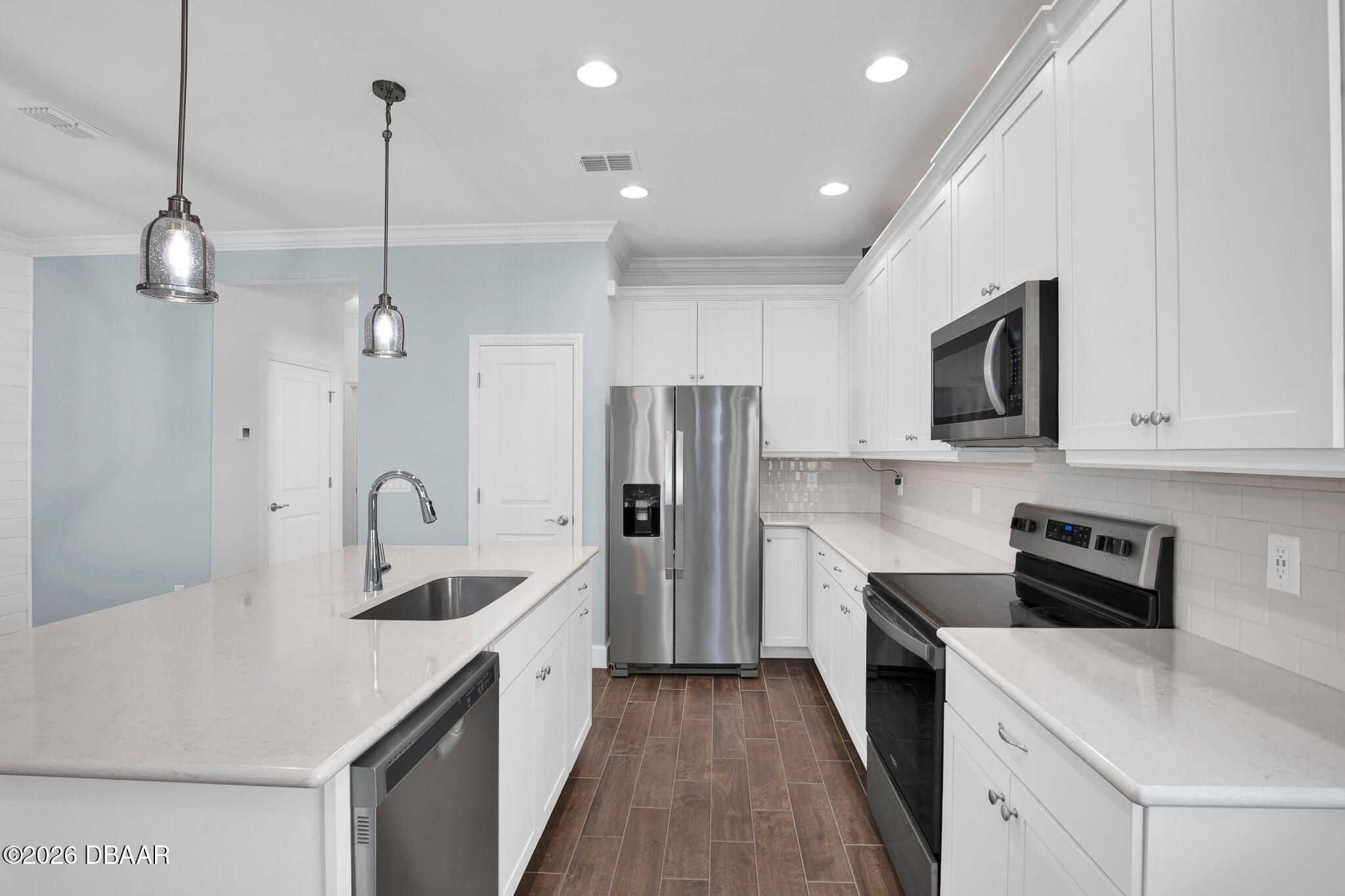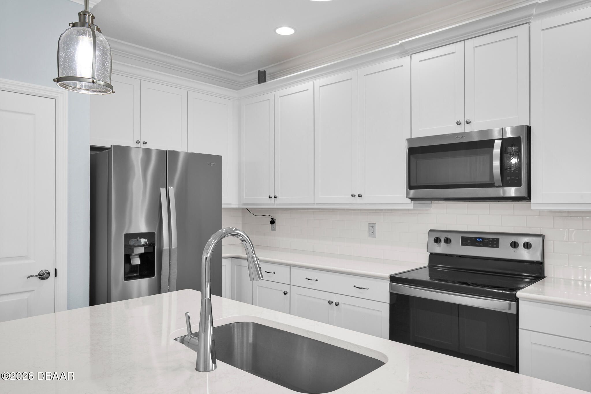 - Washer, Tankless Water Heater, Refrigerator, Microwave, Gas Water Heater, Electric Range, Dryer, Disposal, Dishwasher