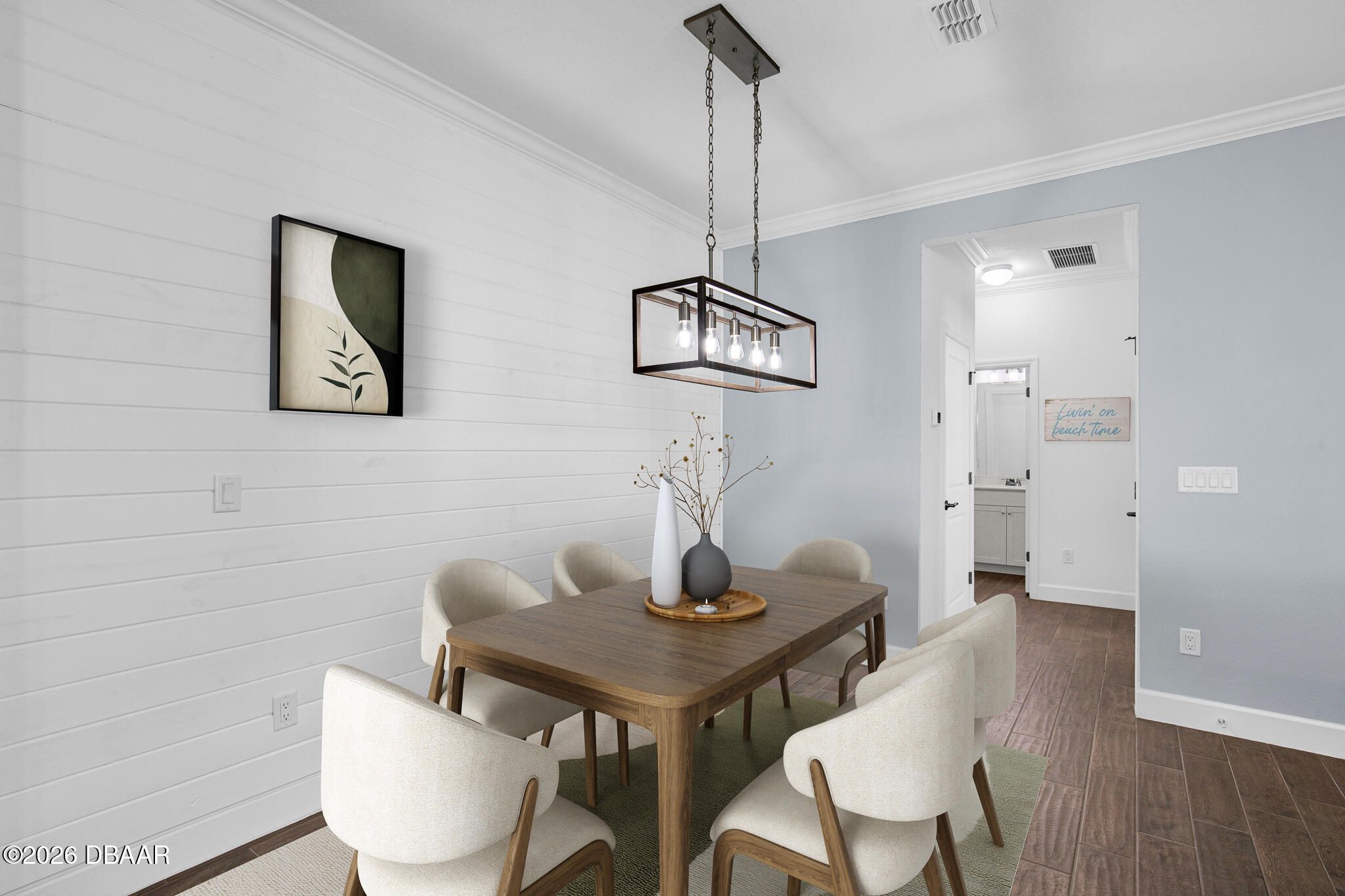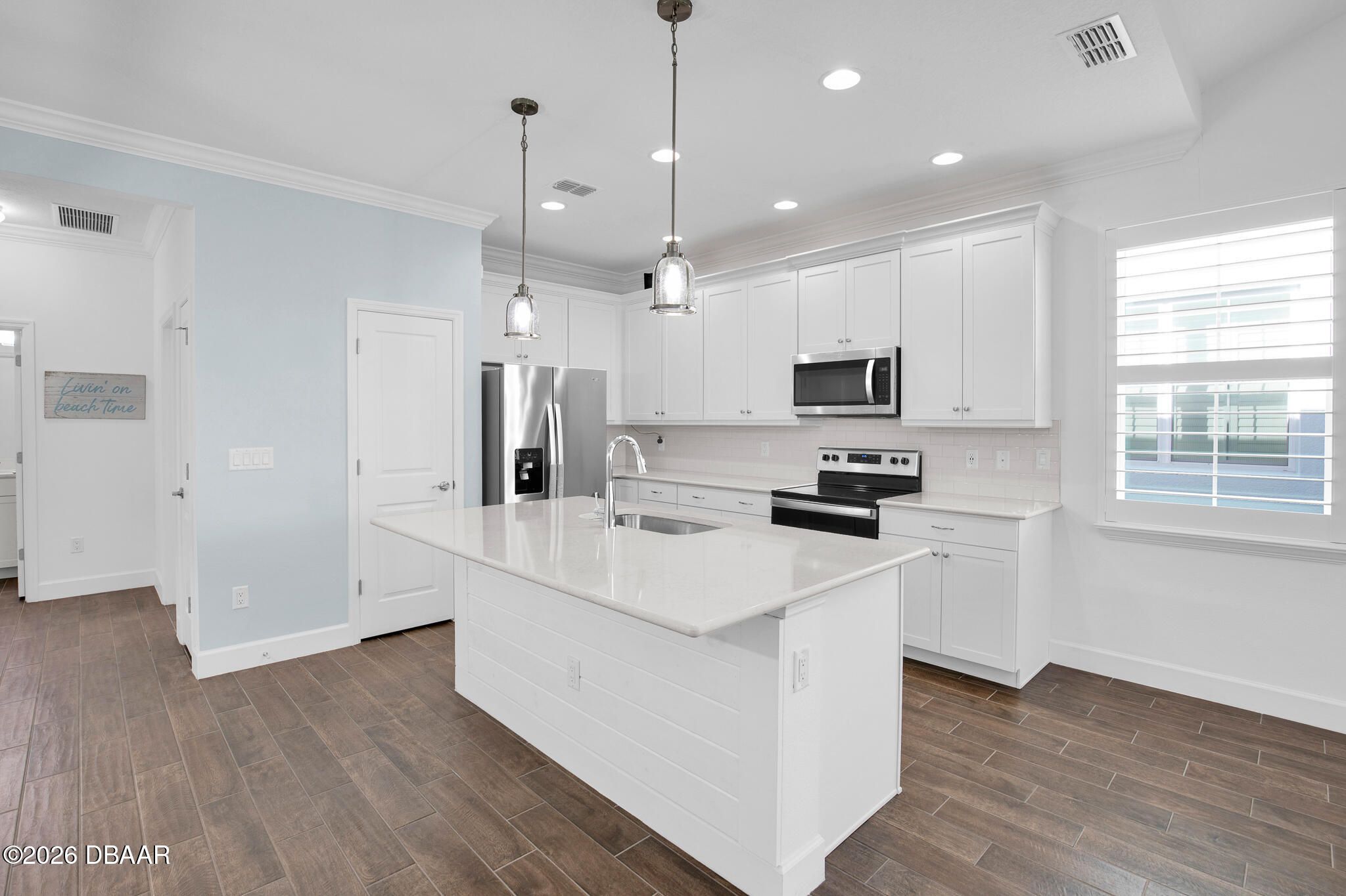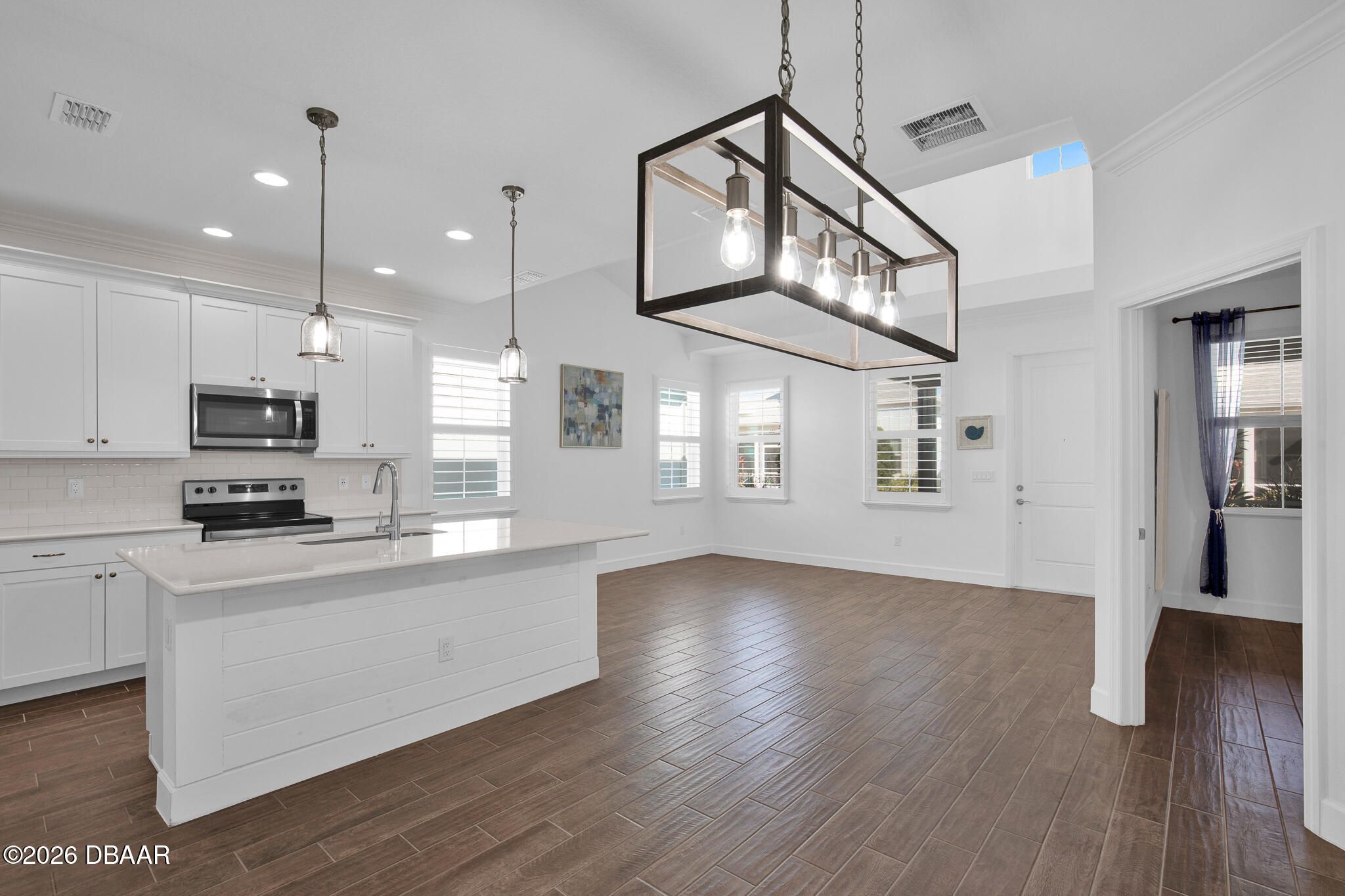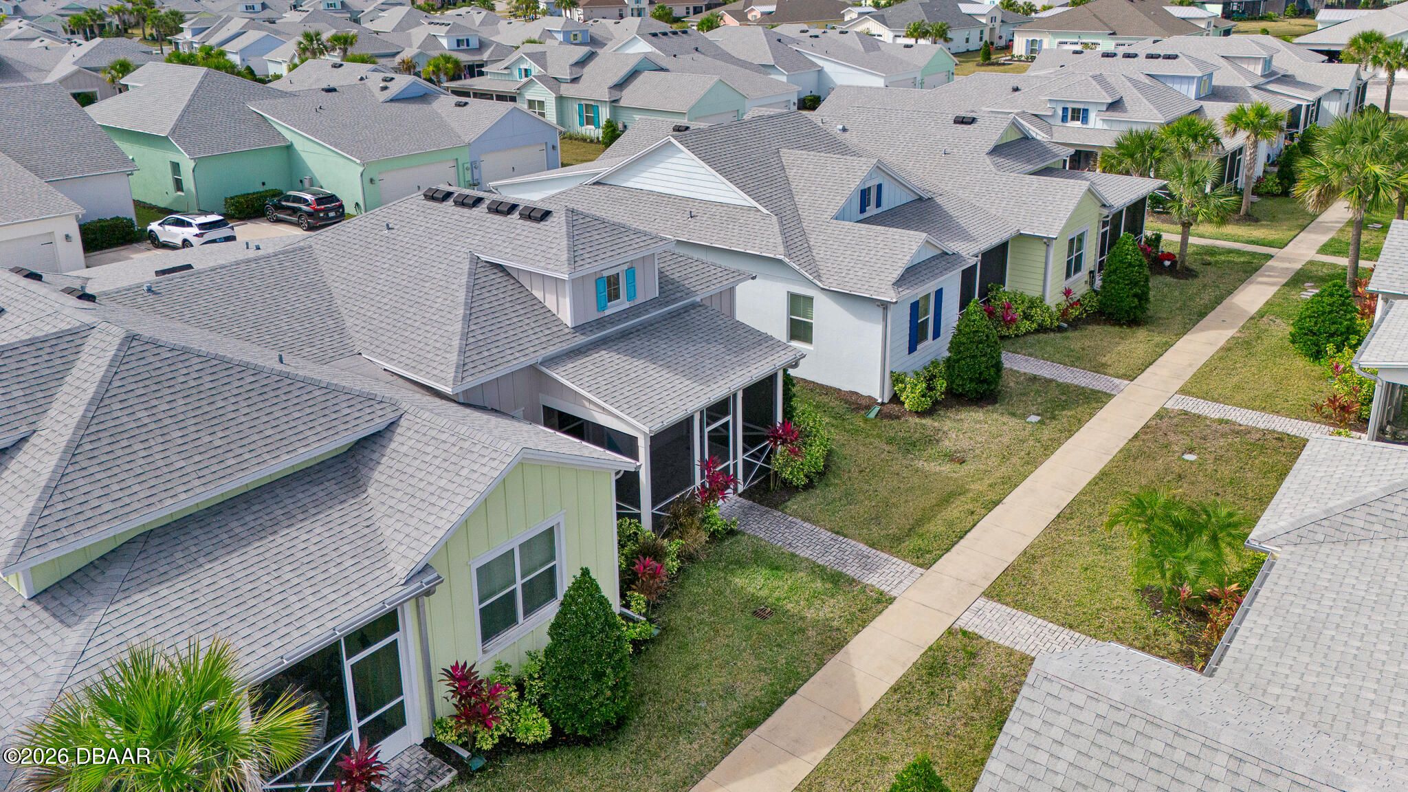 Great buy on a very nicely appointed Bamboo Cottage nestled in Phase 5 of Latitude Margaritaville on the amenities side. This home is exquisitely finished in coastal colors with white 42'' upper cabinets in the kitchen. Natural wood look tile plank floors lend an elegant flair throughout the home. The dining room has a white shiplap accent wall and the primary suite has a feature wall, too. The primary suite walk-in closet has built in shelving for extra storage. This is the perfect split bedroom open floor plan you have been looking for! Enjoy the amazing amenities that include a private Beach Club with pool in Ormond Beach with luxury coach service to and from the property. There is a Fitness Center with an indoor lap pool, a full time Restaurant and Bar, a theater, Pickleball and Tennis Courts for your enjoyment, too! Call for a tour of our amazing community and make this Bamboo Cottage your home in Paradise!
