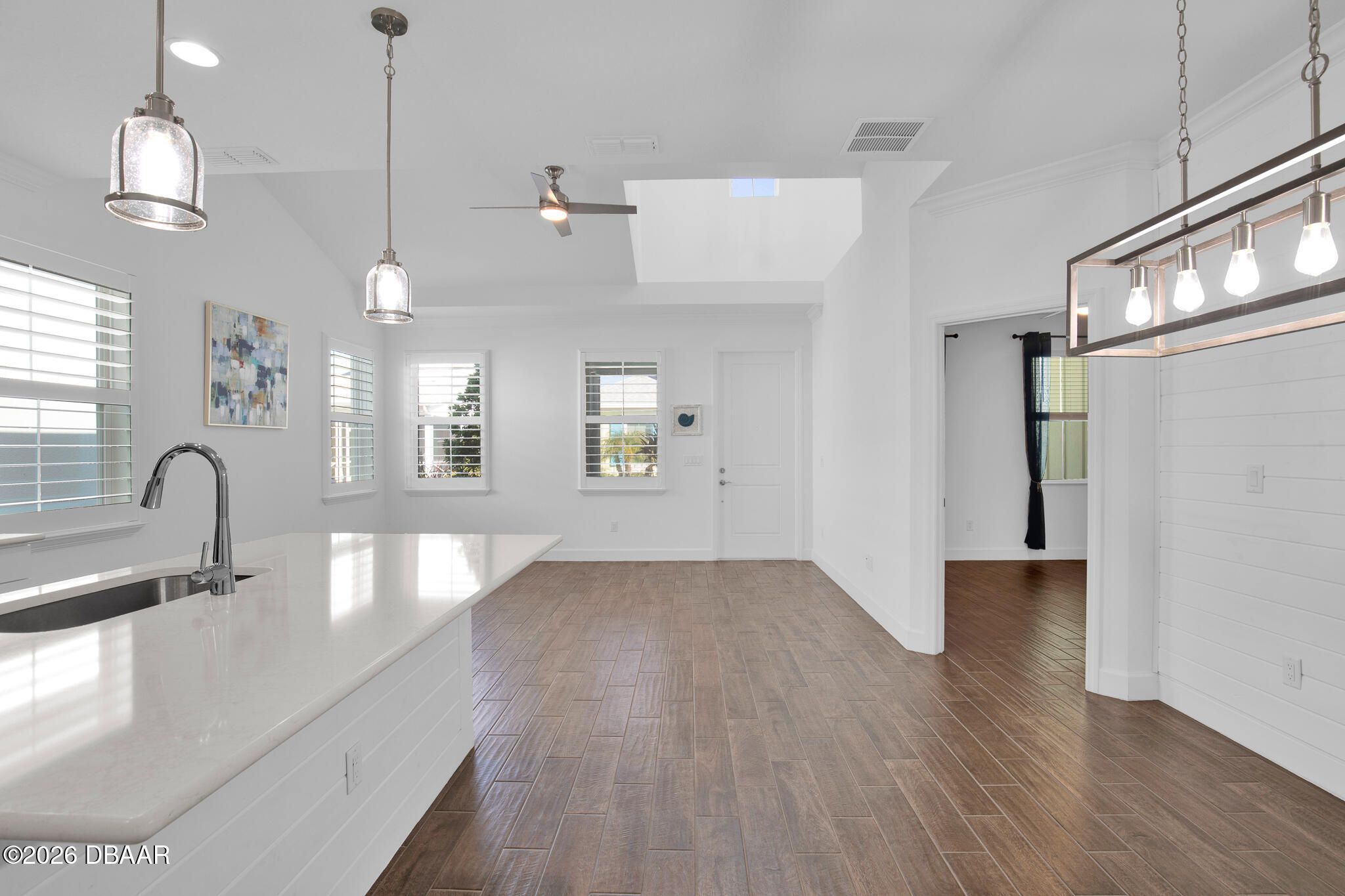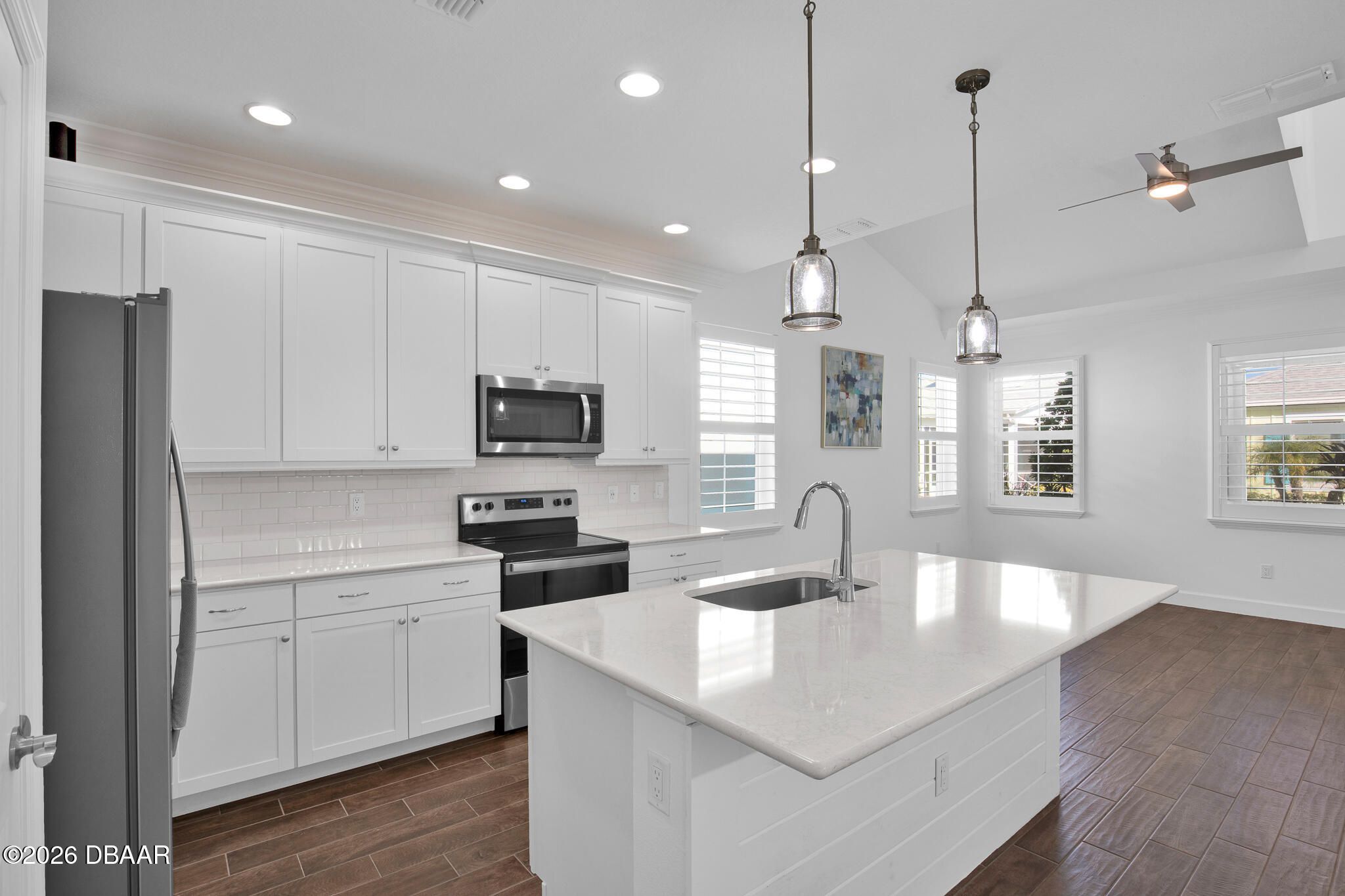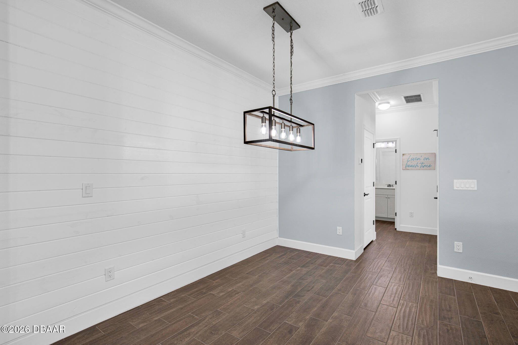 Great buy on a very nicely appointed Bamboo Cottage nestled in Phase 5 of Latitude Margaritaville on the amenities side. This home is exquisitely finished in coastal colors with white 42'' upper cabinets in the kitchen. Natural wood look tile plank floors lend an elegant flair throughout the home. The dining room has a white shiplap accent wall and the primary suite has a feature wall, too. The primary suite walk-in closet has built in shelving for extra storage. This is the perfect split bedroom open floor plan you have been looking for! Enjoy the amazing amenities that include a private Beach Club with pool in Ormond Beach with luxury coach service to and from the property. There is a Fitness Center with an indoor lap pool, a full time Restaurant and Bar, a theater, Pickleball and Tennis Courts for your enjoyment, too! Call for a tour of our amazing community and make this Bamboo Cottage your home in Paradise!