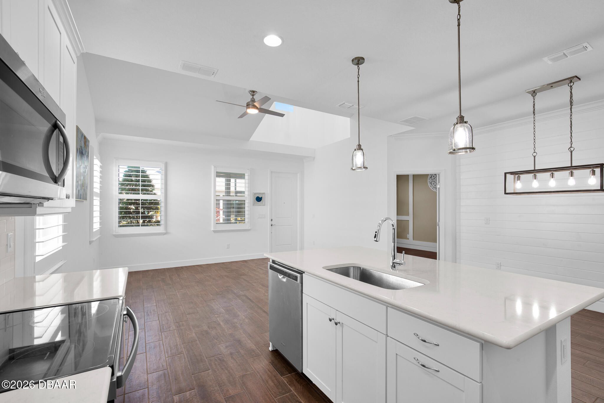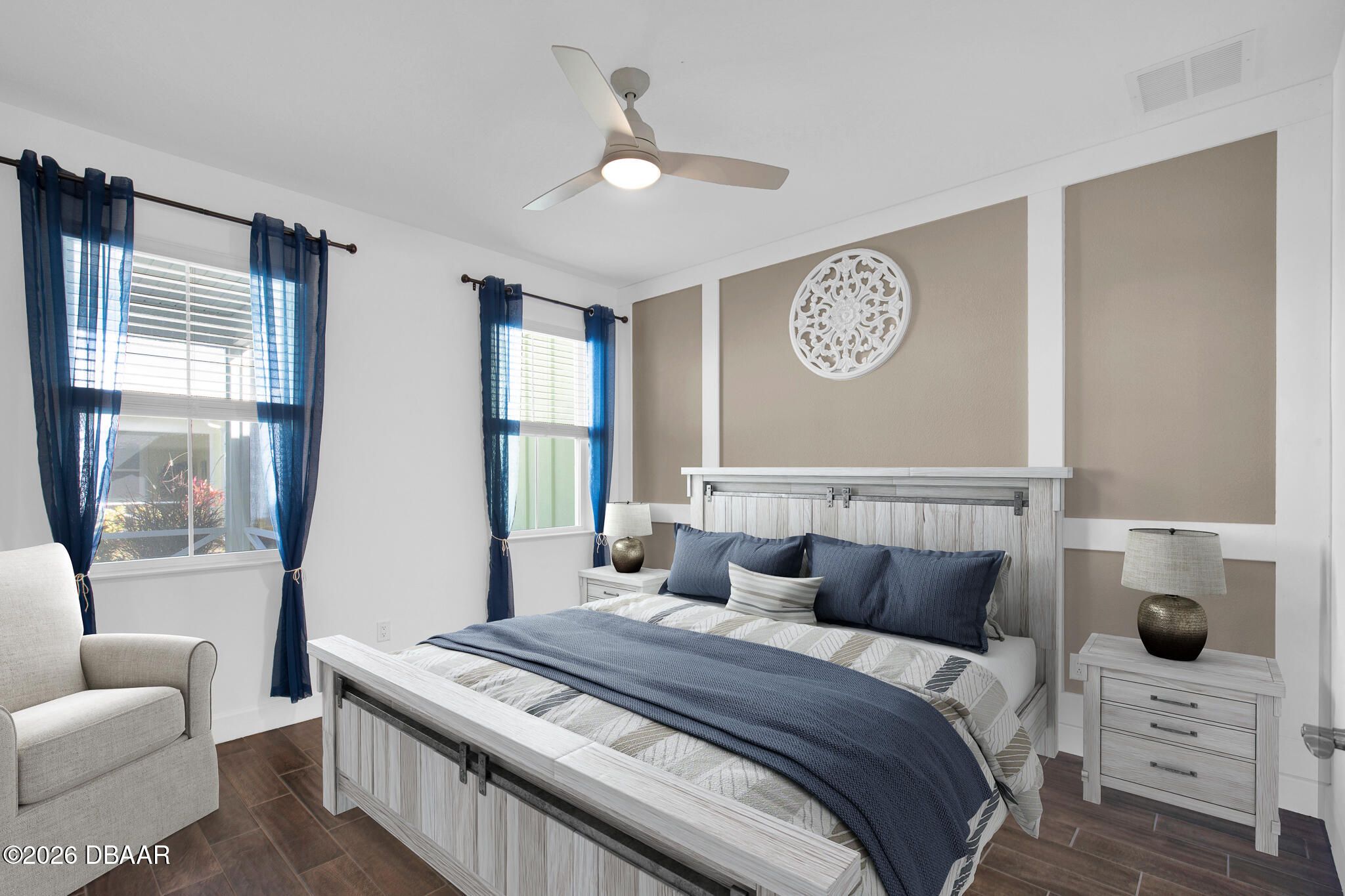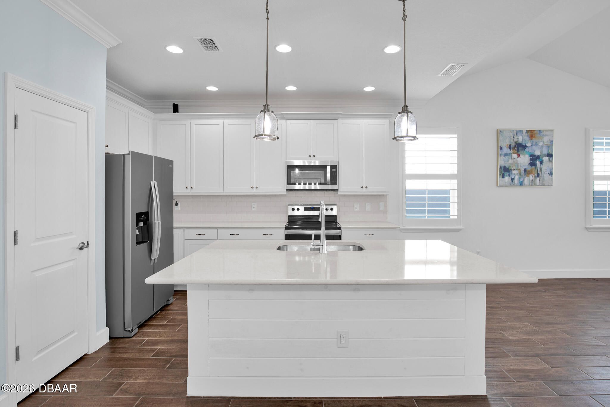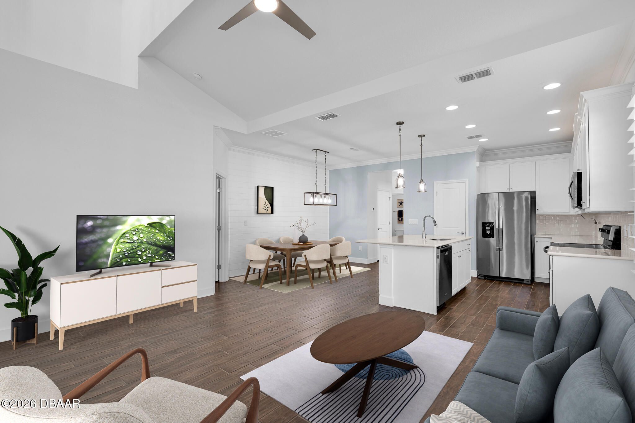 Great buy on a very nicely appointed Bamboo Cottage nestled in Phase 5 of Latitude Margaritaville on the amenities side. This home is exquisitely finished in coastal colors with white 42'' upper cabinets in the kitchen. Natural wood look tile plank floors lend an elegant flair throughout the home. The dining room has a white shiplap accent wall and the primary suite has a feature wall, too. The primary suite walk-in closet has built in shelving for extra storage. This is the perfect split bedroom open floor plan you have been looking for! Enjoy the amazing amenities that include a private Beach Club with pool in Ormond Beach with luxury coach service to and from the property. There is a Fitness Center with an indoor lap pool, a full time Restaurant and Bar, a theater, Pickleball and Tennis Courts for your enjoyment, too! Call for a tour of our amazing community and make this Bamboo Cottage your home in Paradise!