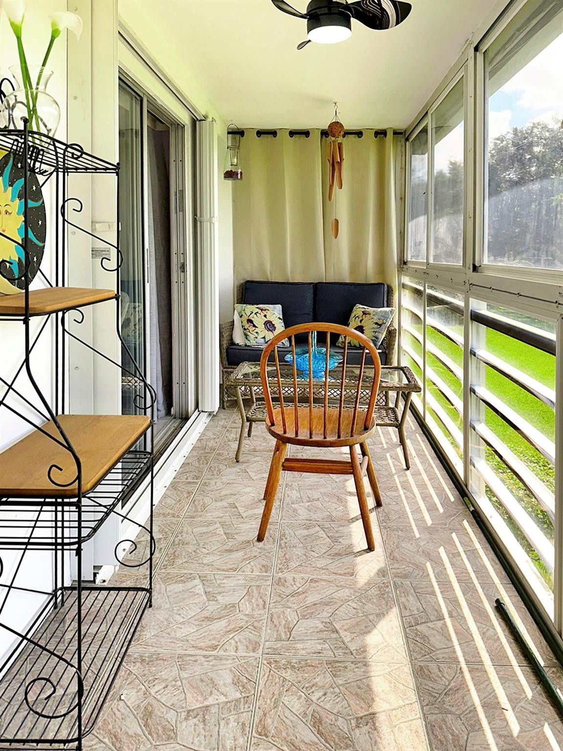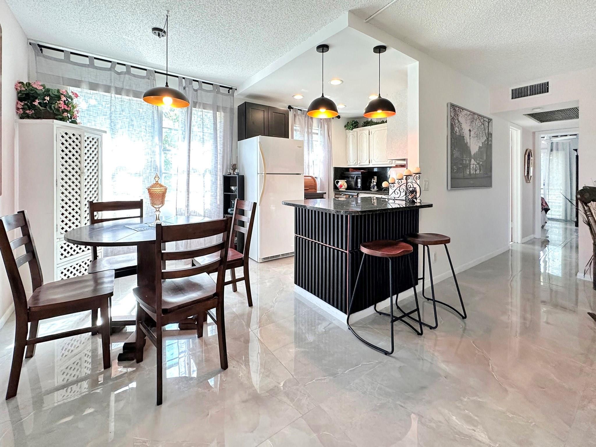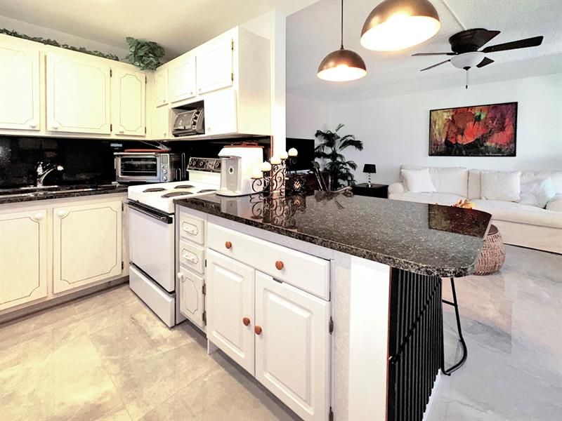 Spacious CORNER UNIT featuring 2 bedrms, 1.5 baths, furnished & move-in ready. This bright condo offers ACCORDION SHUTTERS for added security on windows & 2 sliding doors leading to an encl patio w/a beautiful garden view. Interior features incl an open kit w/granite cntrs, recessed lts, porcelain flrs thru-out & ceiling fans in every rm, The bldg offers a quiet setting & has a comm BBQ area. Perfect for comfortable year-round liv or a seasonal retreat. Located in a premier active adult comm offering exceptional resort-style amenities, incl pools, tennis, shuffleboard, pickleball & a putting green. Enjoy 24-hour gated security & a clubhouse featuring billiards, classes, clubs, dances, movies, Broadway-style shows & a fitness center. Close to shopping, dining & the beach. ASSOC. CLAIMS 55+