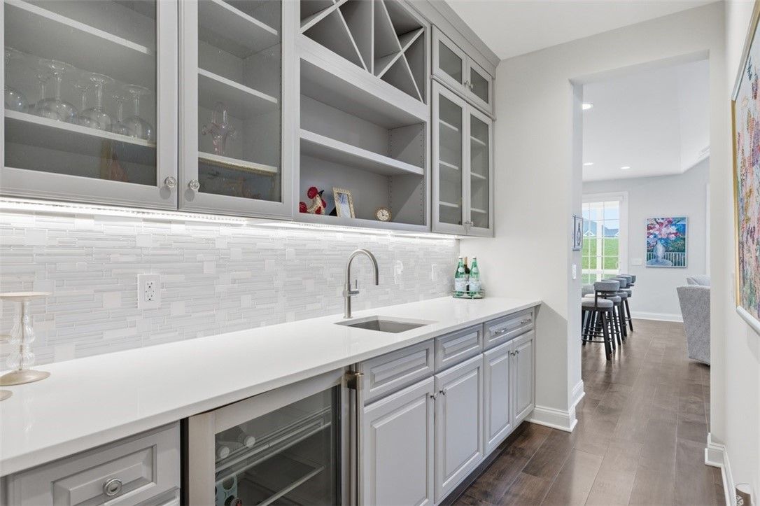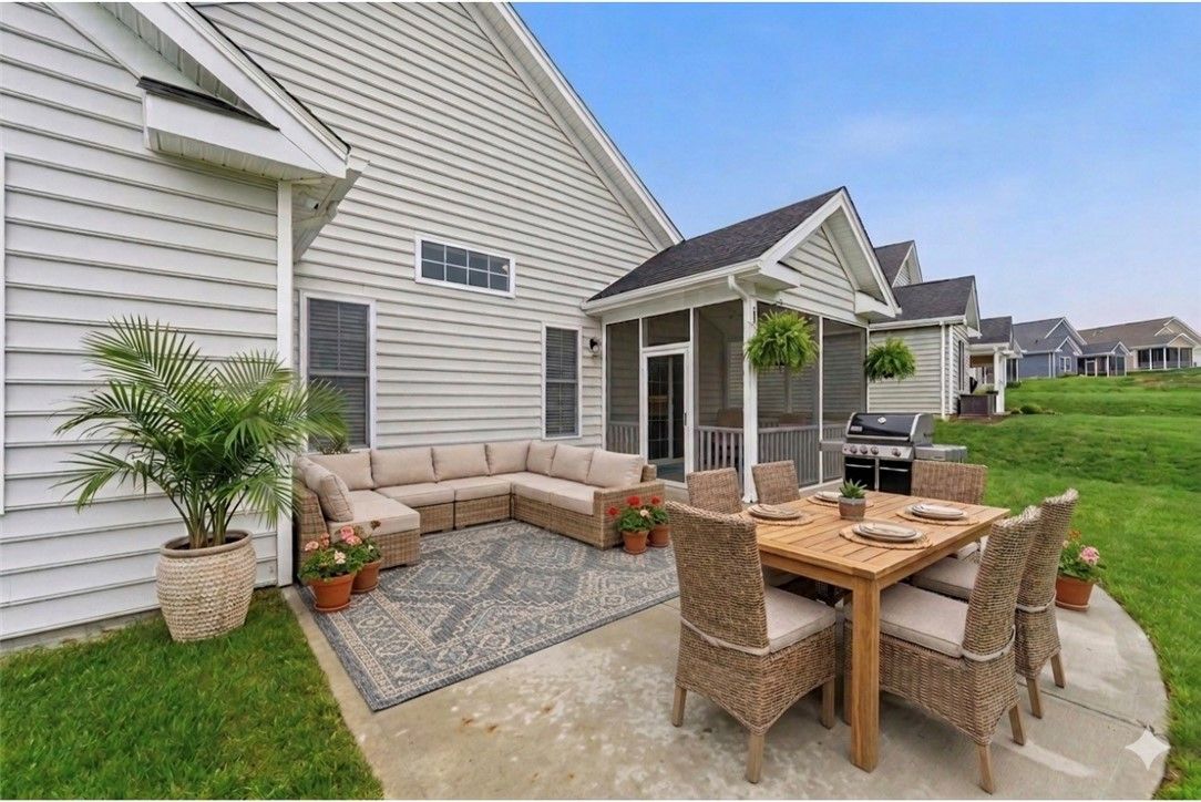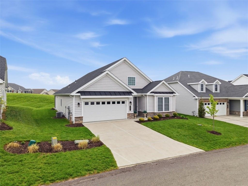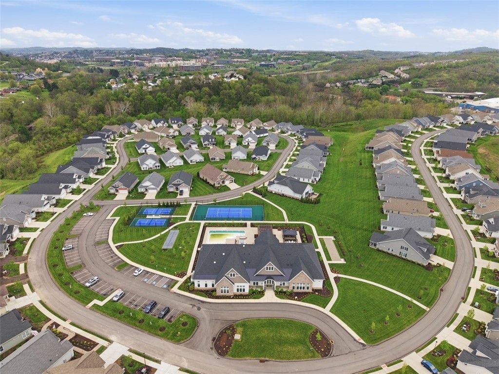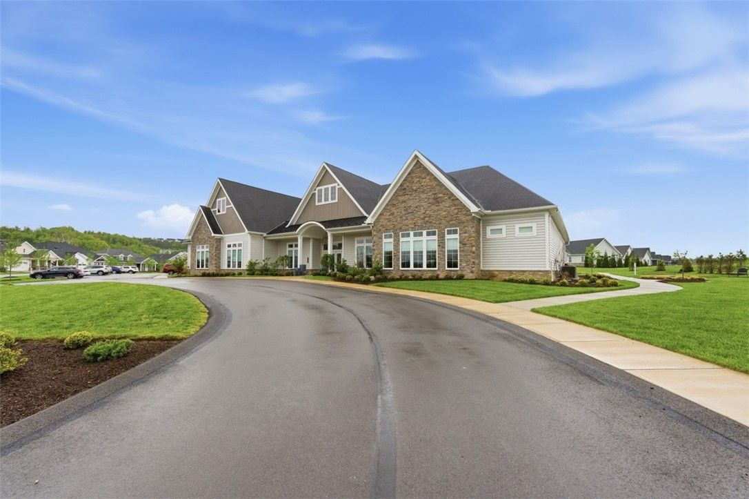 Welcome to one of Pittsburgh’s premier 55+ communities—just minutes south of the city in Cecil Township—where resort-style living meets everyday convenience. Centered around an impressive 11,000+ square foot clubhouse, Traditions of America at Southpointe offers an active adult lifestyle with exceptional amenities. This extraordinary single-family detached ranch is truly move-in ready and designed for the discerning buyer seeking low-maintenance, high-end living. From the moment you arrive, you’ll be captivated by the upgraded 8-foot entry door with sidelights, opening into a stunning foyer with a dramatic 17-foot volume ceiling. Throughout the home, you’ll find 9-foot ceilings and 8-foot interior doors, creating an open and elegant feel. A 2-foot extension across the kitchen and great room enhances the already spacious layout, making it ideal for both everyday living and entertaining. The thoughtfully designed floor plan offers true one-level living, complete with flush entries and a zero-threshold shower, while still providing generous space throughout. The home features two bedrooms, two full baths, and a beautifully appointed study with custom built-in bookcases. The luxurious owner’s suite includes two walk-in closets and a spa-like bath with double vanities and an upgraded flush-entry tile shower. At the heart of the home, the chef’s kitchen is a showstopper—featuring high-end GE Monogram stainless steel appliances, elegant Medallion cabinetry, and white/gray quartz countertops. A large center island comfortably seats five, and the adjacent butler’s pantry offers a beverage refrigerator and bar sink—perfect for entertaining. Enjoy outdoor living with a covered 11x6 screened porch and an additional wraparound concrete patio, ideal for relaxing or grilling. The well-designed mudroom leads to a fully equipped laundry area with custom cabinetry and GE front-load washer and dryer. Additional amenities include on-demand hot water and a spacious 14x14 storage room with easy stair access—perfect for seasonal items. Traditions of America at Southpointe delivers an unmatched lifestyle, featuring a stunning clubhouse with a fitness center, sauna, yoga studio, wine tasting room, and even a dog grooming station. Outdoor amenities include a community pool, pickleball, tennis, bocce, shuffleboard courts, and a golf simulator. Why wait to build when you can have it all now? This exceptional home offers luxury, convenience, and community—all in one. Low HOA includes lawn care, snow removal, and full access to amenities.