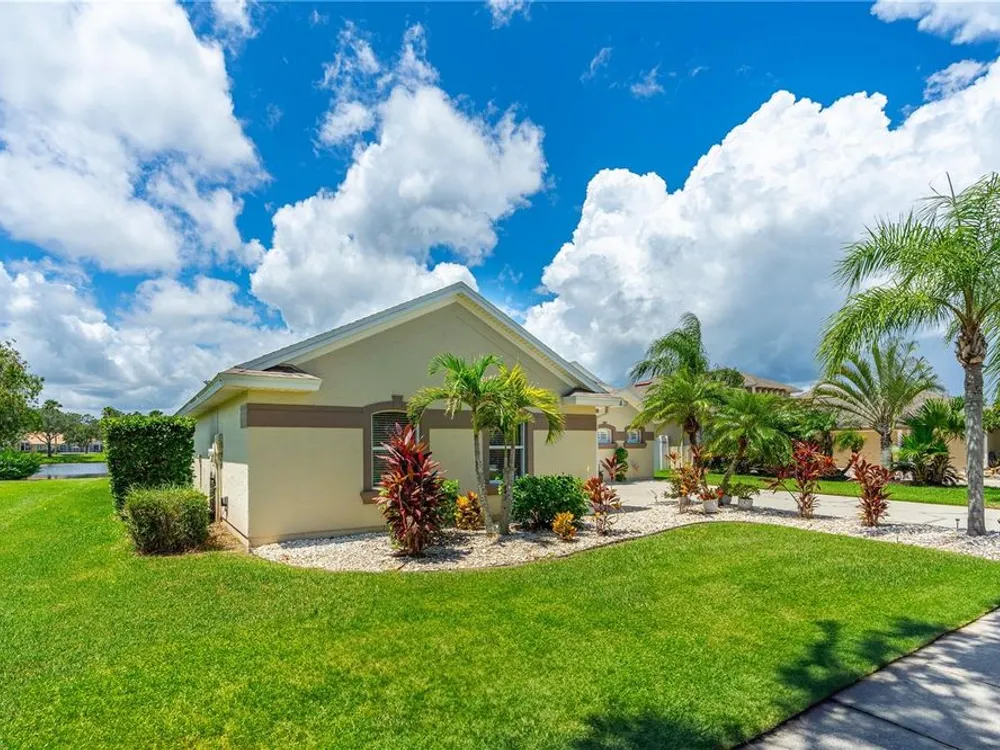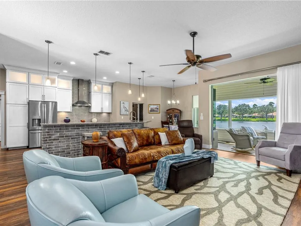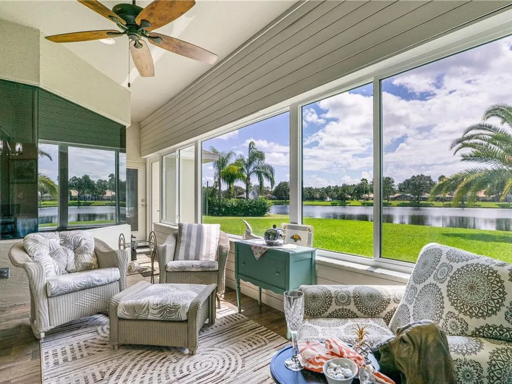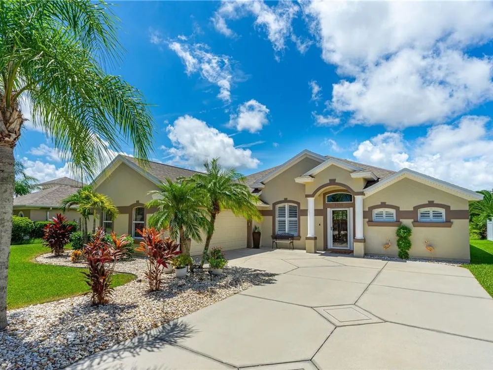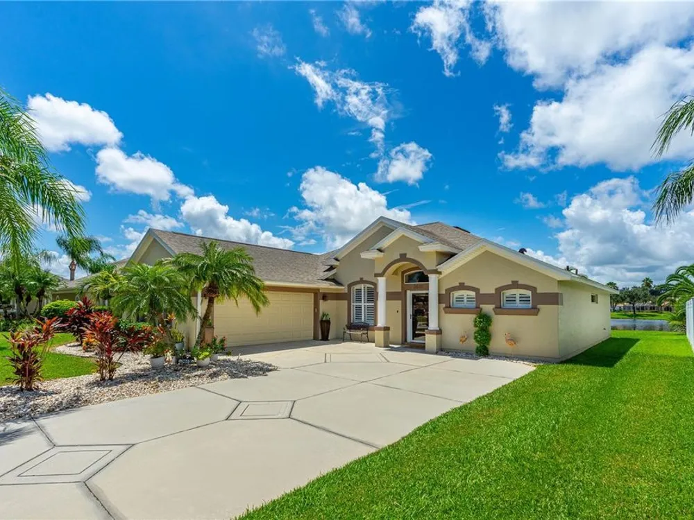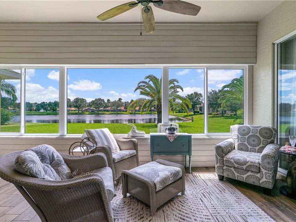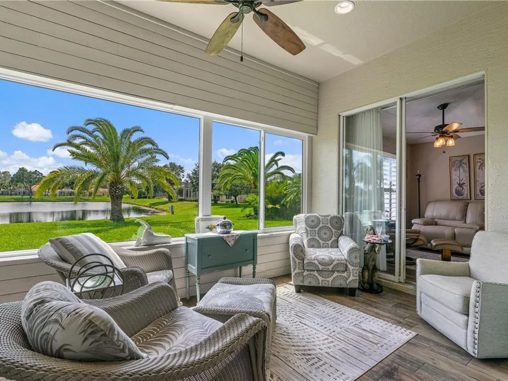 Indulge in the epitome of luxury living with this pristine waterfront residence nestled in the coveted Marisol enclave of the Venetian Bay community. Revel in the exclusivity of a serene cul-de-sac setting. As you approach the home, you are greeted by its stunning curb appeal, highlighted by a side entry two-car garage and charming plantation shutters. Upon entry, the meticulously updated interior captivates with custom drapes, modern fixtures, ceiling fans, and recessed lights that illuminate each space with a warm and inviting glow. Culinary experiences await in the gourmet kitchen, boasting rich wood cabinets with convenient pull-outs, chic tile backsplash, and gleaming stainless steel range hood and appliances. The stone counters and pendant-lit seating area set the stage for intimate meals or entertaining guests, while the infinity window adorned with Hunter Douglas shades offers a panoramic view of the tranquil water beyond. The primary suite is a sanctuary of luxury, complete with a sitting room and sliders opening to a impact glass-enclosed sunroom (updated in 2022), where the beauty of waterfront living can be savored watching different birds, ducks and beautiful sunsets. A stylish wood sliding door reveals an en-suite bathroom, featuring a jetted tub, separate shower, dual sink vanity, and a walk-in closet. Guest accommodations are equally impressive, with a remodeled bathroom showcasing a sleek tile wall, shower, brushed nickel fixtures, and sophisticated lighting. Practicality is not forgotten, with an inside laundry complete with a utility sink. This exceptional property is more than a home; it's a lifestyle. Venetian Bay offers amenities such as dining, a fitness center, a spa, and a golf course. Located conveniently close to beaches, shopping, entertainment, medical facilities, and the Daytona International Speedway, this is the ultimate luxury retreat for the discerning buyer. Most furnishings negotiable. All information is intended to be accurate but cannot be guaranteed.