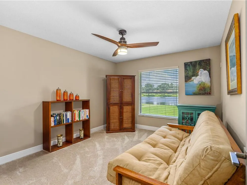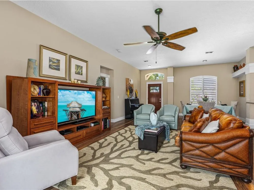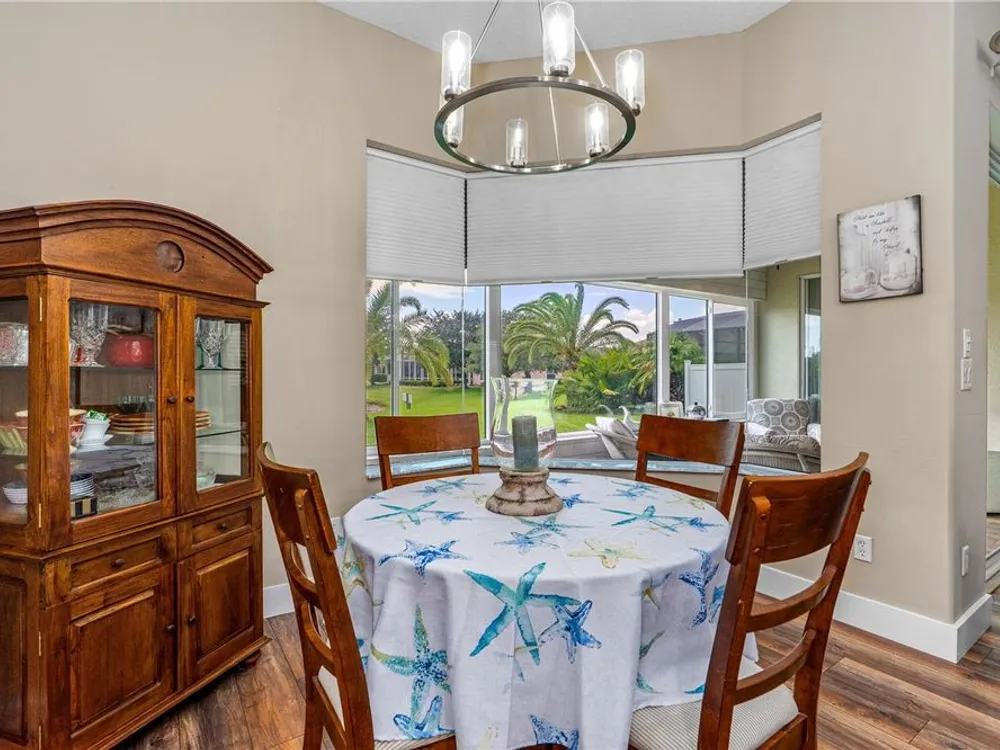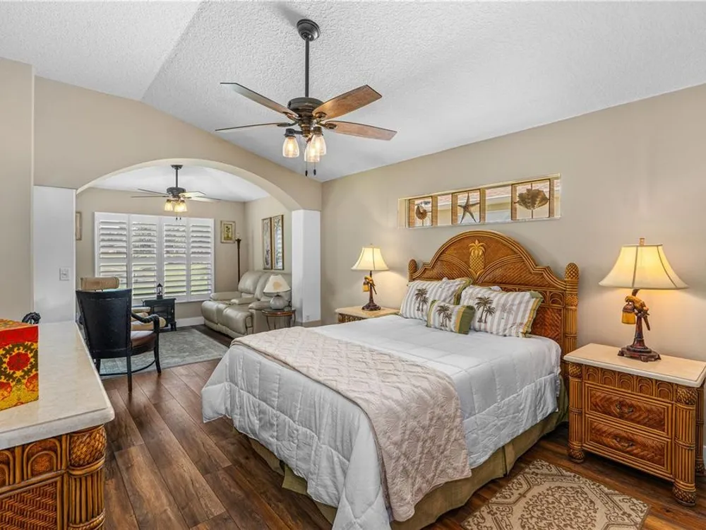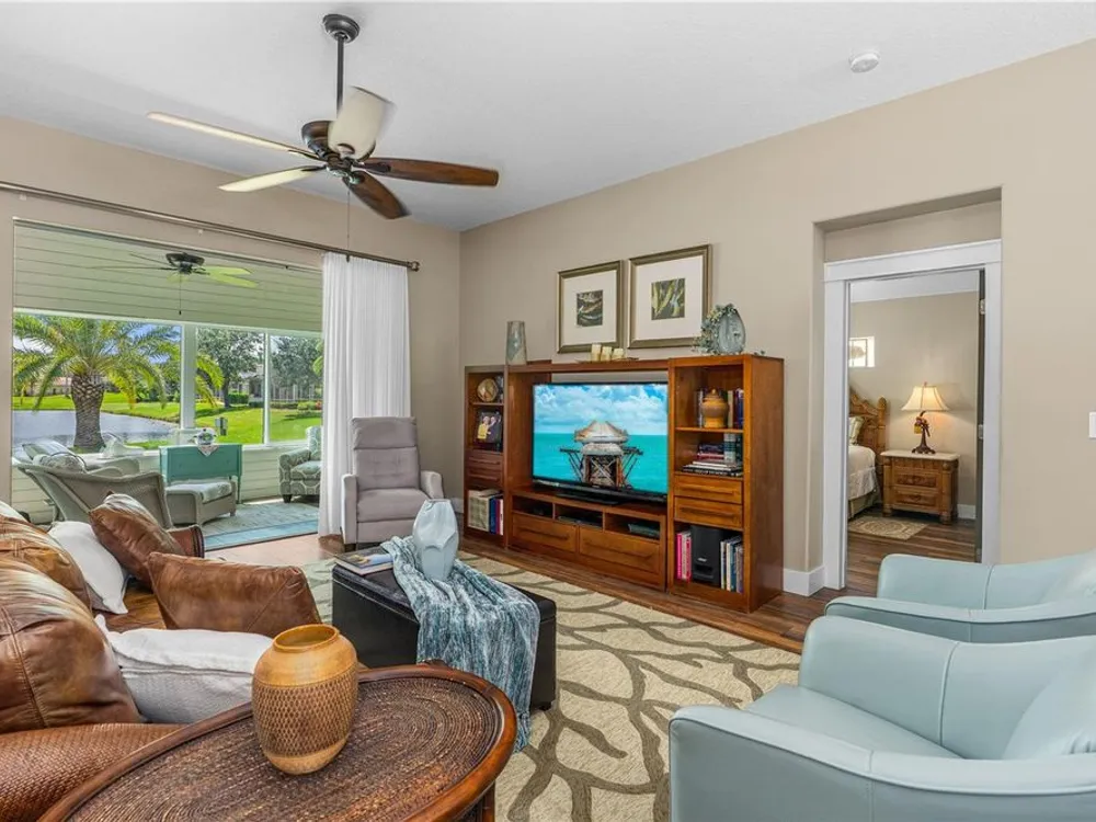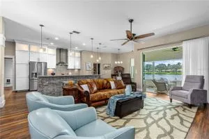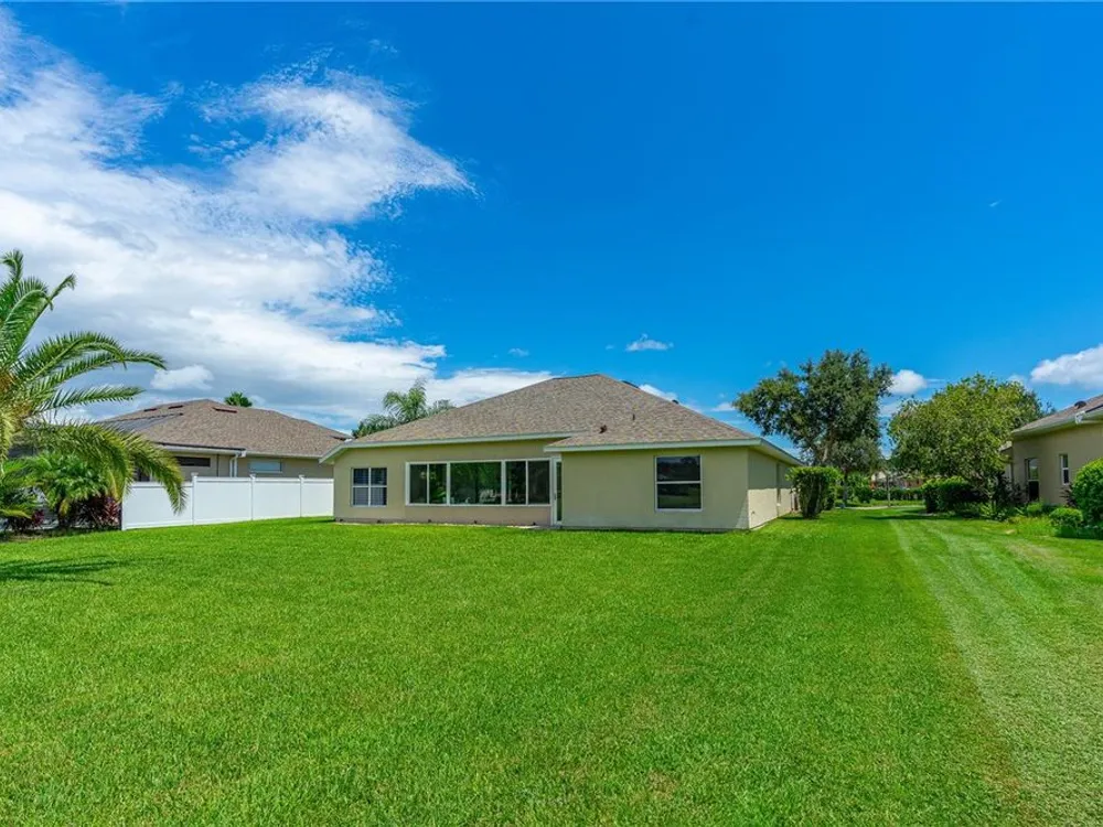 Indulge in the epitome of luxury living with this pristine waterfront residence nestled in the coveted Marisol enclave of the Venetian Bay community. Revel in the exclusivity of a serene cul-de-sac setting. As you approach the home, you are greeted by its stunning curb appeal, highlighted by a side entry two-car garage and charming plantation shutters. Upon entry, the meticulously updated interior captivates with custom drapes, modern fixtures, ceiling fans, and recessed lights that illuminate each space with a warm and inviting glow. Culinary experiences await in the gourmet kitchen, boasting rich wood cabinets with convenient pull-outs, chic tile backsplash, and gleaming stainless steel range hood and appliances. The stone counters and pendant-lit seating area set the stage for intimate meals or entertaining guests, while the infinity window adorned with Hunter Douglas shades offers a panoramic view of the tranquil water beyond. The primary suite is a sanctuary of luxury, complete with a sitting room and sliders opening to a impact glass-enclosed sunroom (updated in 2022), where the beauty of waterfront living can be savored watching different birds, ducks and beautiful sunsets. A stylish wood sliding door reveals an en-suite bathroom, featuring a jetted tub, separate shower, dual sink vanity, and a walk-in closet. Guest accommodations are equally impressive, with a remodeled bathroom showcasing a sleek tile wall, shower, brushed nickel fixtures, and sophisticated lighting. Practicality is not forgotten, with an inside laundry complete with a utility sink. This exceptional property is more than a home; it's a lifestyle. Venetian Bay offers amenities such as dining, a fitness center, a spa, and a golf course. Located conveniently close to beaches, shopping, entertainment, medical facilities, and the Daytona International Speedway, this is the ultimate luxury retreat for the discerning buyer. Most furnishings negotiable. All information is intended to be accurate but cannot be guaranteed.