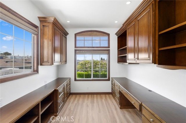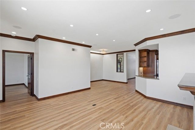 One of the most exquisitely reimagined residences to grace the coveted “55 and better” Terraces, all single level, with no steps in the home, and ideally situated in the heart of Corona del Mar. This sophisticated two-bedroom, two-bath home with a dedicated office has been thoughtfully curated with elevated finishes throughout—every detail meticulously completed for effortless living. The gourmet kitchen is a statement of timeless elegance, featuring custom cabinetry, granite countertops, a charming built-in breakfast nook, integrated refrigerator, and a bespoke range hood. A beautifully opened pass-through seamlessly connects the kitchen to the living space, enhancing both flow and natural light while creating an inviting, open-concept ambiance. Underfoot, luxury linoleum flooring extends throughout, complemented by refined baseboards and crown molding. Both bathrooms have been impeccably redesigned with elevated custom vanities, stone surfaces, and sleek frameless walk-in showers, evoking a spa-like experience. Our Primary enjoys a full walk-in closet. The secondary suite has been thoughtfully enhanced with the addition of a private door, creating a true ensuite retreat and offering exceptional privacy for guests. This room also features a built-in Murphy bed for room use flexibility. Additional highlights include an attached laundry area with newer LG washer and dryer, as well as an epoxied garage floor—just a few of the many upgrades that define this elegant home. Enjoy enchanting views in the distance of the ocean and Catalina Island, along with shimmering city lights and breathtaking sunsets. The Terraces boasts a sparkling ocean-view pool and spa, along with charming Clubhouse and other amenities. Ideally located adjacent to the Oasis Senior Center and just moments from all that Corona del Mar has to offer—beautiful beaches, world-class dining, chic boutiques, and upscale markets—this residence embodies refined coastal living at its finest.