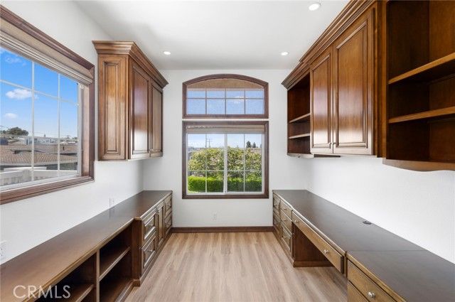 One of the most exquisitely reimagined residences to grace the coveted “55 and better†Terraces, all single level, with no steps in the home, and ideally situated in the heart of Corona del Mar. This sophisticated two-bedroom, two-bath home with a dedicated office has been thoughtfully curated with elevated finishes throughout-every detail meticulously completed for effortless living. The gourmet kitchen is a statement of timeless elegance, featuring custom cabinetry, granite countertops, a charming built-in breakfast nook, integrated refrigerator, and a bespoke range hood. A beautifully opened pass-through seamlessly connects the kitchen to the living space, enhancing both flow and natural light while creating an inviting, open-concept ambiance. Underfoot, luxury linoleum flooring extends throughout, complemented by refined baseboards and crown molding. Both bathrooms have been impeccably redesigned with elevated custom vanities, stone surfaces, and sleek frameless walk-in showers, evoking a spa-like experience. Our Primary enjoys a full walk-in closet. The secondary suite has been thoughtfully enhanced with the addition of a private door, creating a true ensuite retreat and offering exceptional privacy for guests. This room also features a built-in Murphy bed for room use f