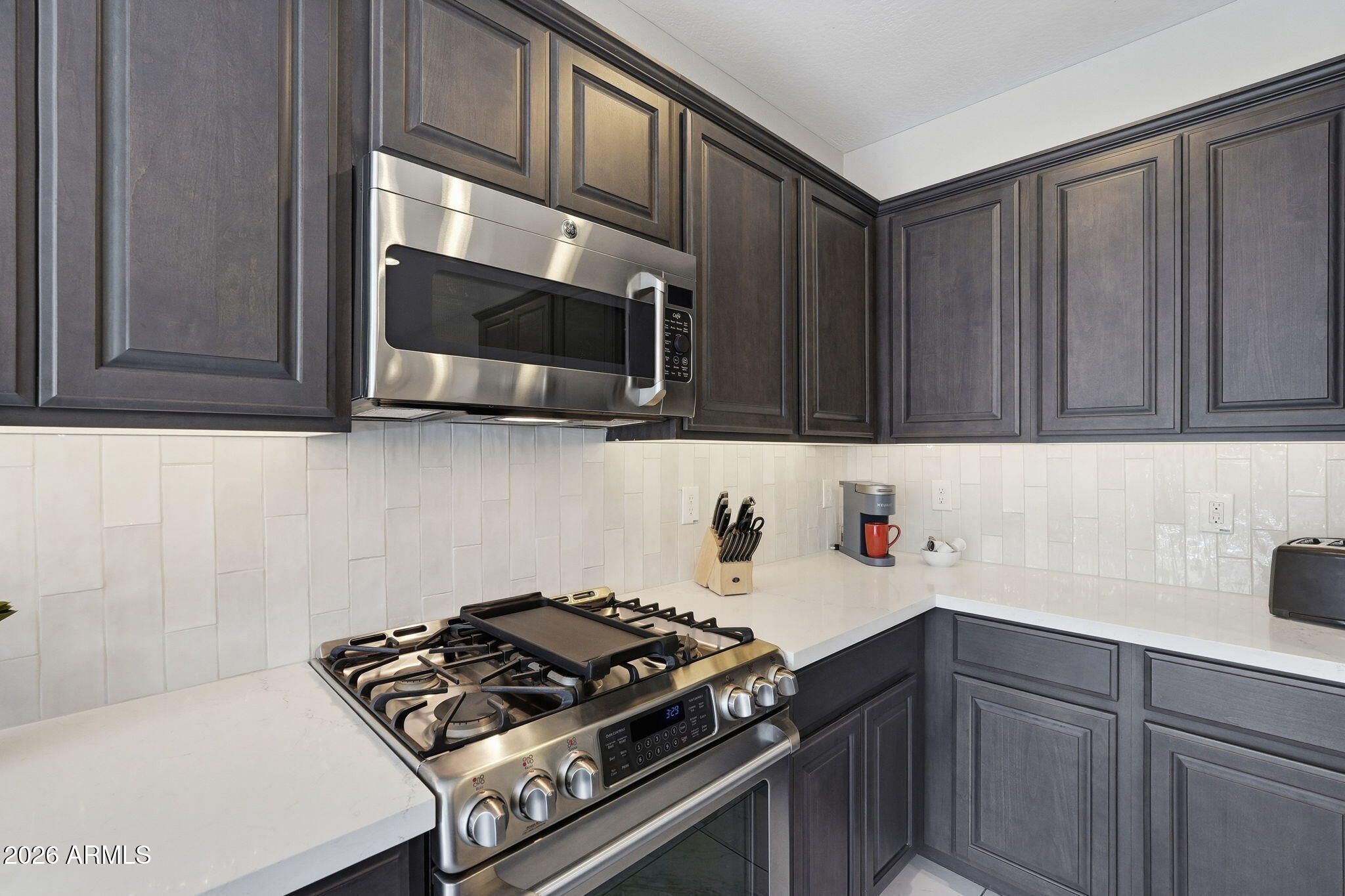 - Stacked Washer/Dryer, Dryer, Washer, Water Softener Owned, Reverse Osmosis, Refrigerator, Built-in Microwave, Dishwasher, Disposal, Gas Range, Gas Oven