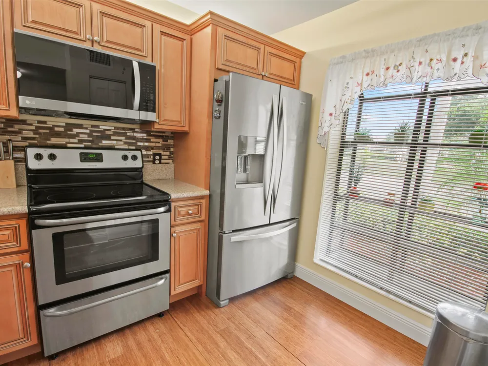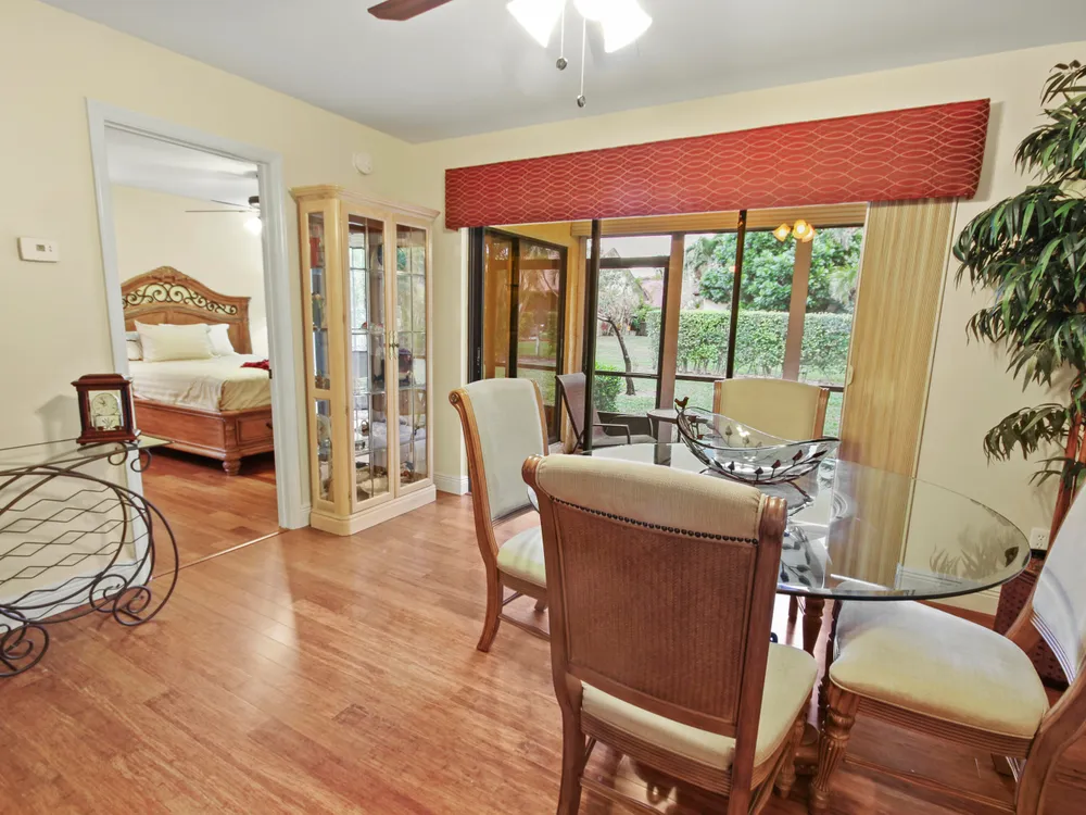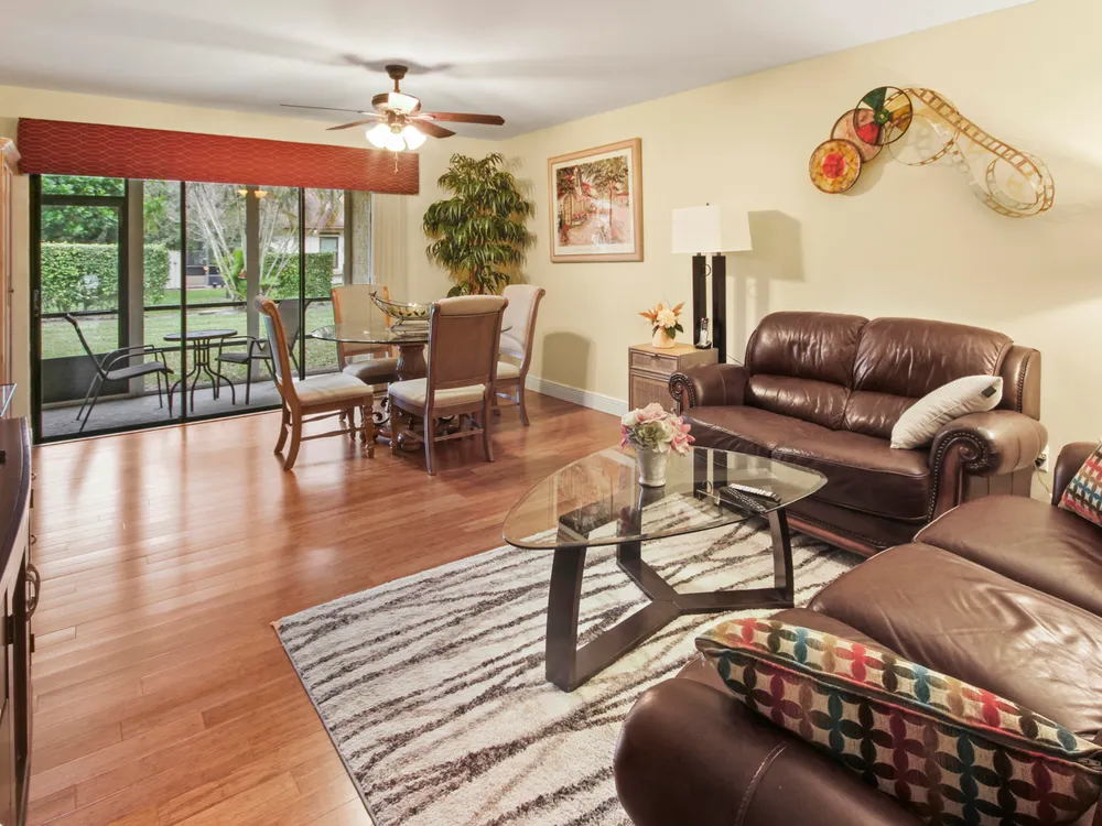 This immaculate, well taken care of 2 Bedroom Villa, end unit, in a 55+ community, is near all shopping and entertainment.Kitchen has all newer appliances. Wood flooring throughout the home gives it a modern touch. Unit has a washer and dryer in the villa. Screened in patio get lots of sunshine in the morning and has an additional storage closet. Willow Bend has two clubhouses. Amenities: Swimming Pool, Tennis, Pickleball, Bocce, Gym