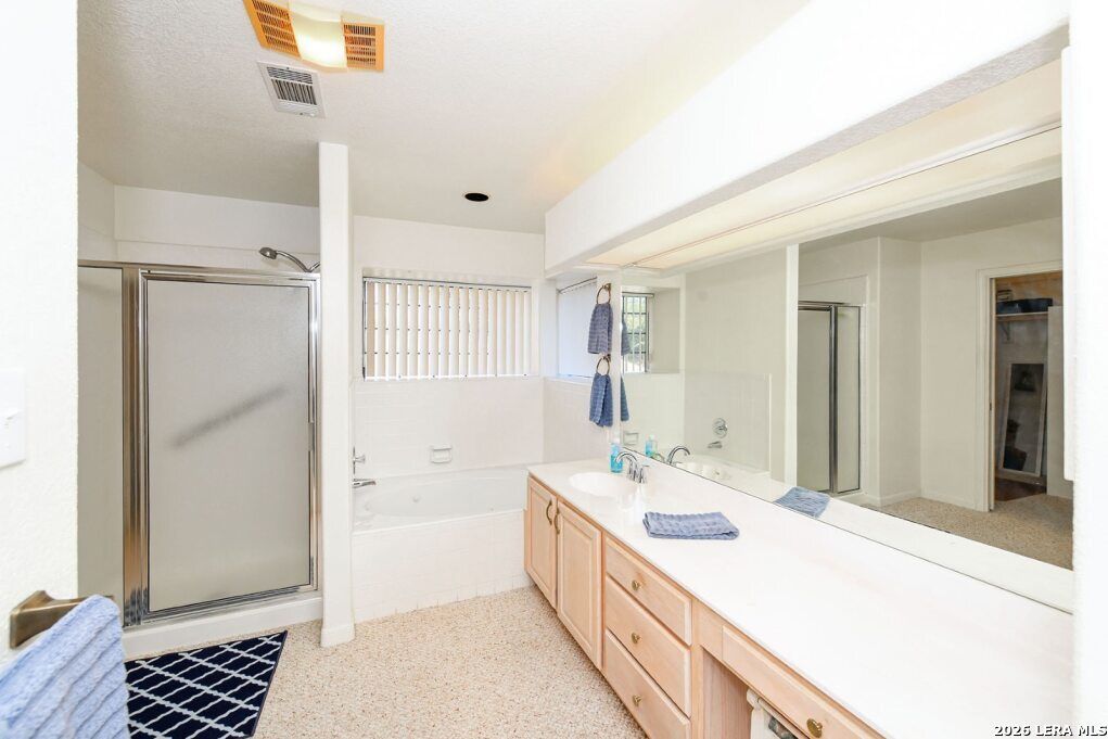 55+ active Senior Community with a full activity calendar of events. 24/7 guarded gate. Home 4 houses down from secured entrance gate. Minutes from Randolph AFB. Charming home has "lock it and leave" convenience. Home has huge luxury dream master suite to include built in bookcase & Jacuzi garden tub. Master Bath includes a Bidet toilet. Florida Room off living area, that is ac/heated for living square footage. Off Florida Room backyard has a grandfathered pet friendly fence. Utility Room includes a sink & toilet like RV. Garage includes extra space for Golf cart with separate garage door. HOA covers lawn care to include mowing, blowing & weed eating, also sprinkler system maintained & water usage paid for by HOA. At the heart of the community is the impressive 13,000 sq ft Lodge. Amenities to include: Ball room, kitchen for events, art/craft room, billiards room, card room, exercise/gym, library, poker room & outdoor pool & hot tub.