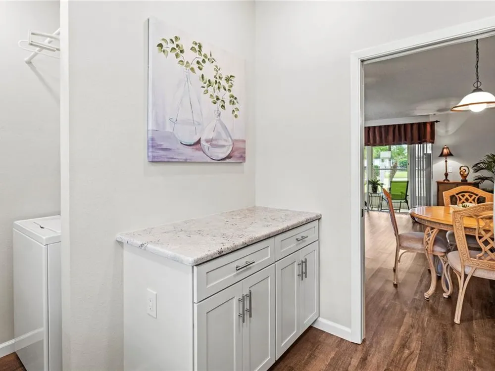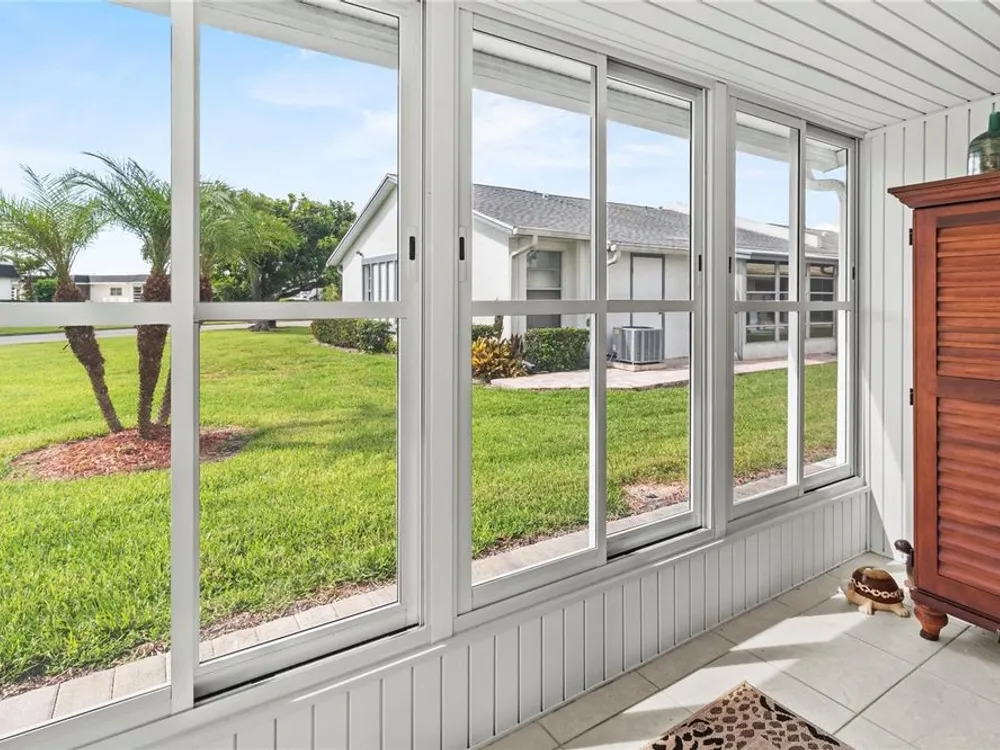 Immaculate Turnkey Condo in Sought-After Cortez Villas (55+ Community) Have your checkbook ready — this one is move-in perfect! From the moment you arrive, this beautifully updated condo will impress. A welcoming entry with fresh paint, stylish décor, a new front door, and a private patio sets the tone. Step inside and be greeted by soaring vaulted ceilings that flood the space with natural light, highlighting the rich wood floors throughout. The fully furnished, Florida-inspired décor — including televisions, furniture, and more — all stays, making this a truly turnkey opportunity. Through the sliding glass doors, you’ll discover a stunning brand-new lanai with new walls, ceiling, floors, doors, and windows, plus an adjoining patio with new pavers, perfect for outdoor dining and barbecues. The included storage shed is stocked with tools and essentials for your convenience. Back inside, the renovated kitchen boasts an extra cabinet, stylish countertops, new blinds, hurricane-rated windows, and an in-unit washer/dryer with storage cabinetry. Every ceiling fan is new with remote control operation. Both bathrooms are tastefully updated, with the master bath featuring a luxurious walk-in shower and a hurricane-rated, frosted privacy window. The spacious master bedroom offers room for a desk and a walk-in closet. Best of all, everything you see stays — saving you thousands and letting you simply bring your clothes! This unit offers one of the best layouts in Cortez Villas, a well-respected, beautifully maintained 55+ community with replaced roofs, fresh paint, and gutters. The HOA fee is a low $437 and includes two assigned parking spaces right at your door. The clubhouse and heated pool are directly across the street for easy access to fitness and fun. You’ll be just 20 minutes from island beaches and the scenic Riverwalk, and minutes to parks, hospitals, doctors, shopping, and dining. Location, condition, and value — this one has it all. Don’t wait… bring that checkbook!